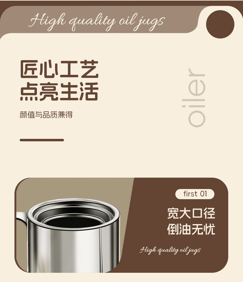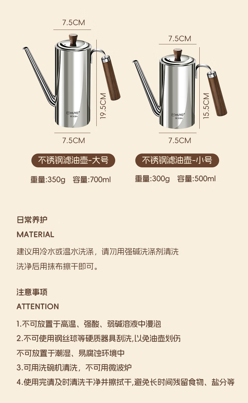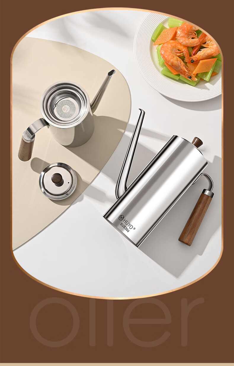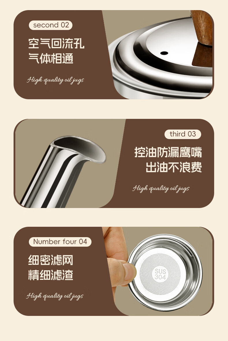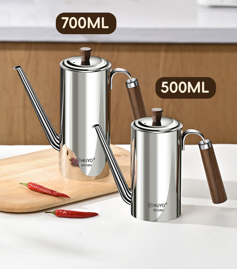 HUYO oil kettle kitchen 304 stainless steel oil filter kettle household with filter pouring oil bottle food grade thickened oil storage container walnut oil filter kettle large + free cleaning brush
