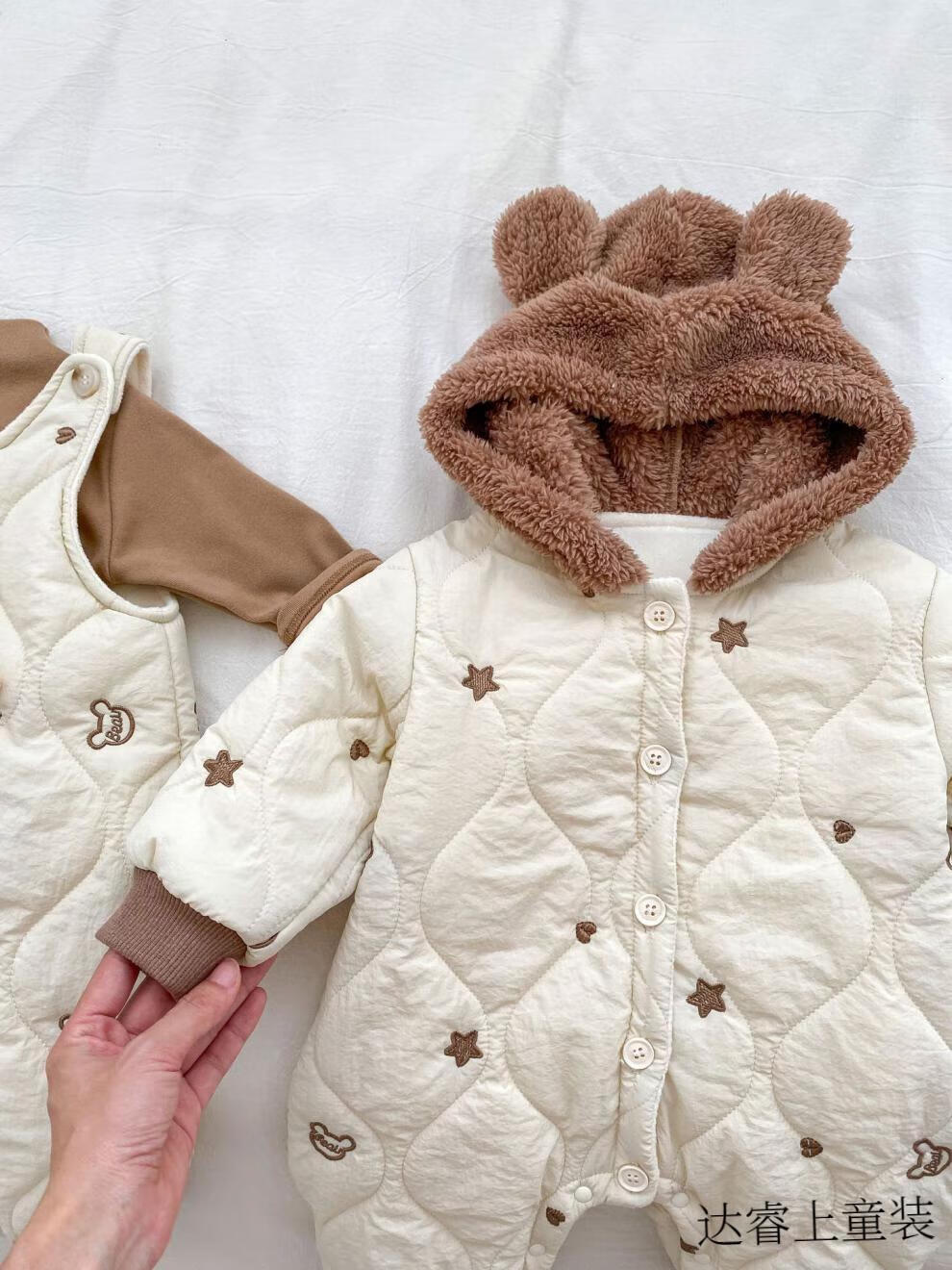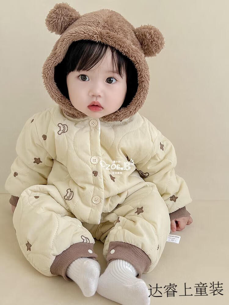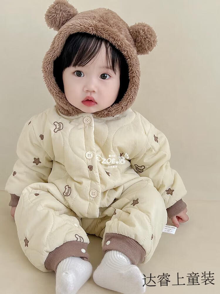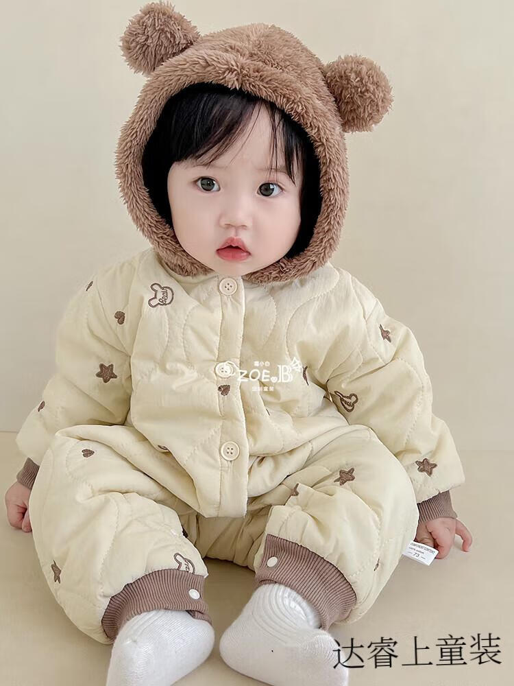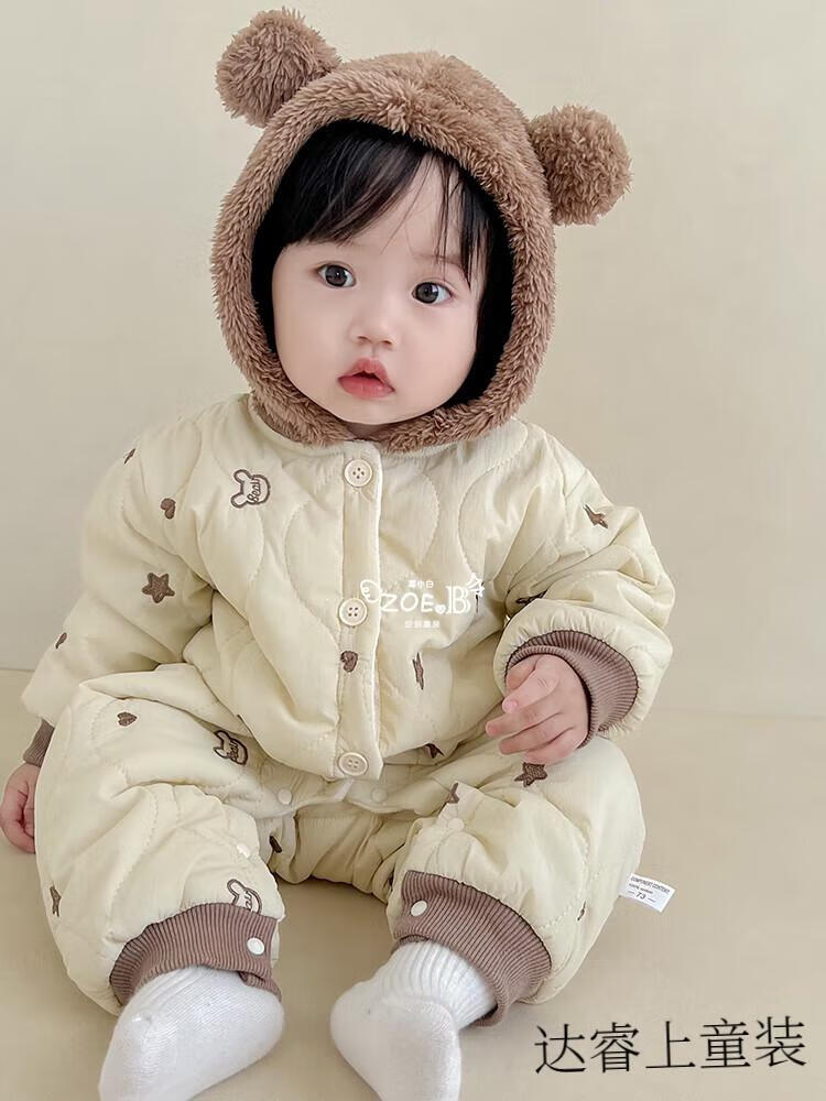G.duck baby clothes, winter quilted onesies, newborn babies, super cute bear warm cotton clothes, winter huggies, bear clothes (padded style) 66cm