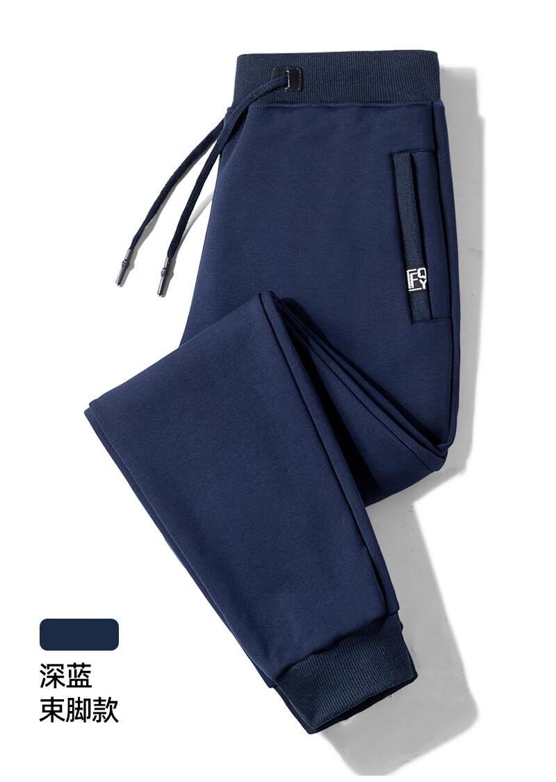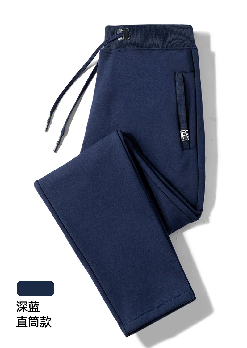 ROMON pure cotton sweatpants men's spring and autumn casual pants straight-leg loose sweatpants winter velvet thickened running trousers dark blue (legged) spring and autumn 3XL 140-160Jin Jin equals 0.5 kg