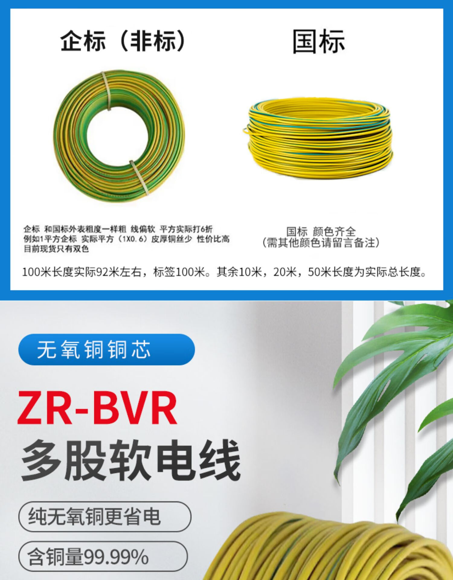National standard pure copper photovoltaic panel grounding wire yellow-green two-color BVR2.5/4/6/10/16 square multi-stranded soft copper ground wire Enterprise standard multi-stranded soft wire yellow-green BVR 2.5 square millimeters 100m