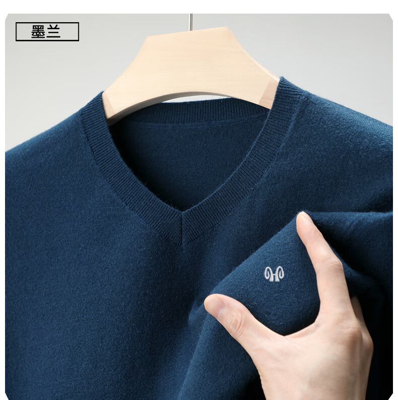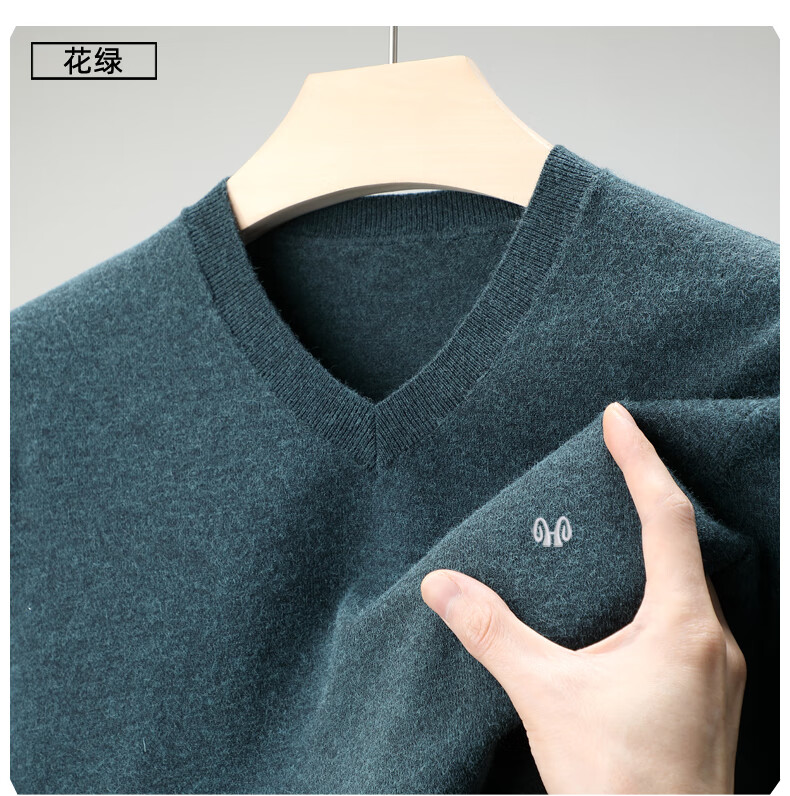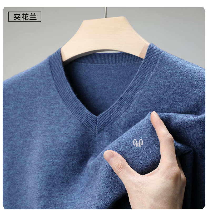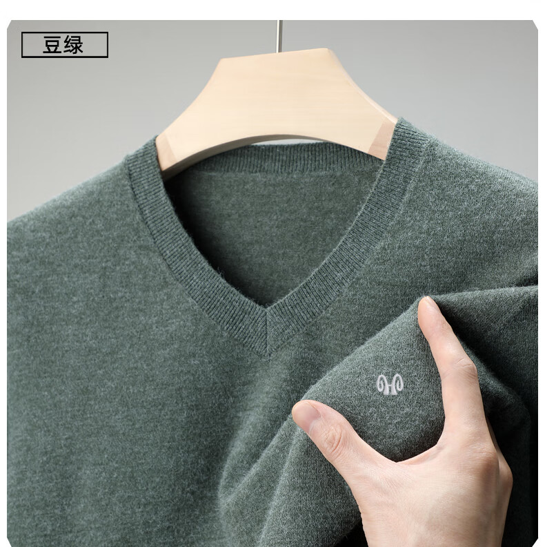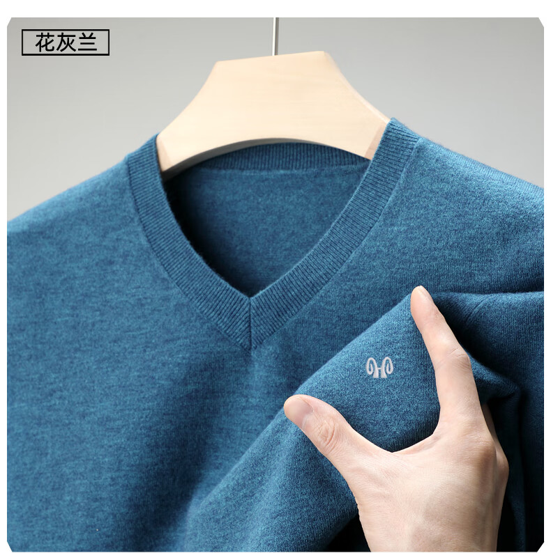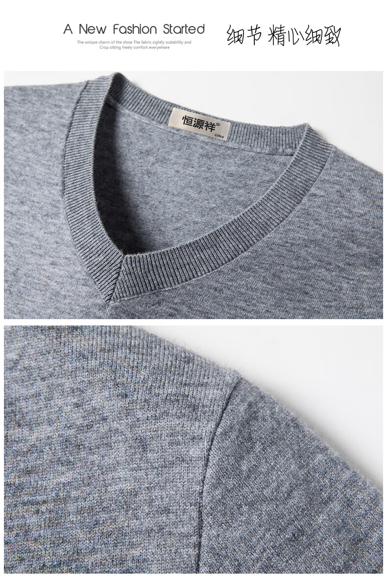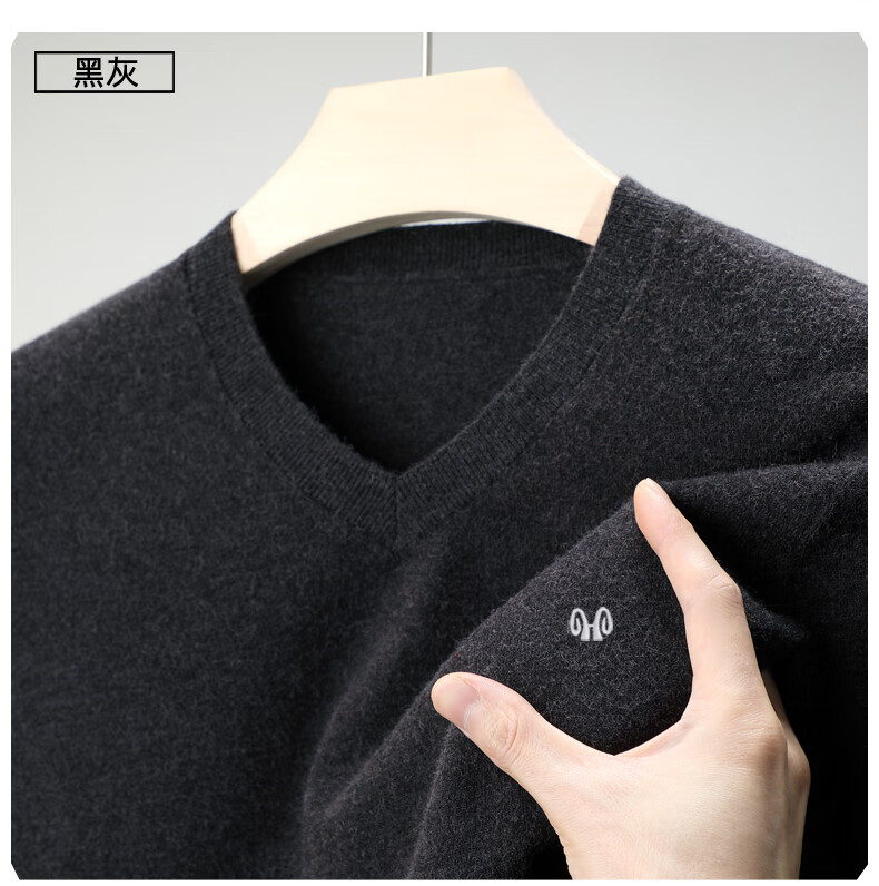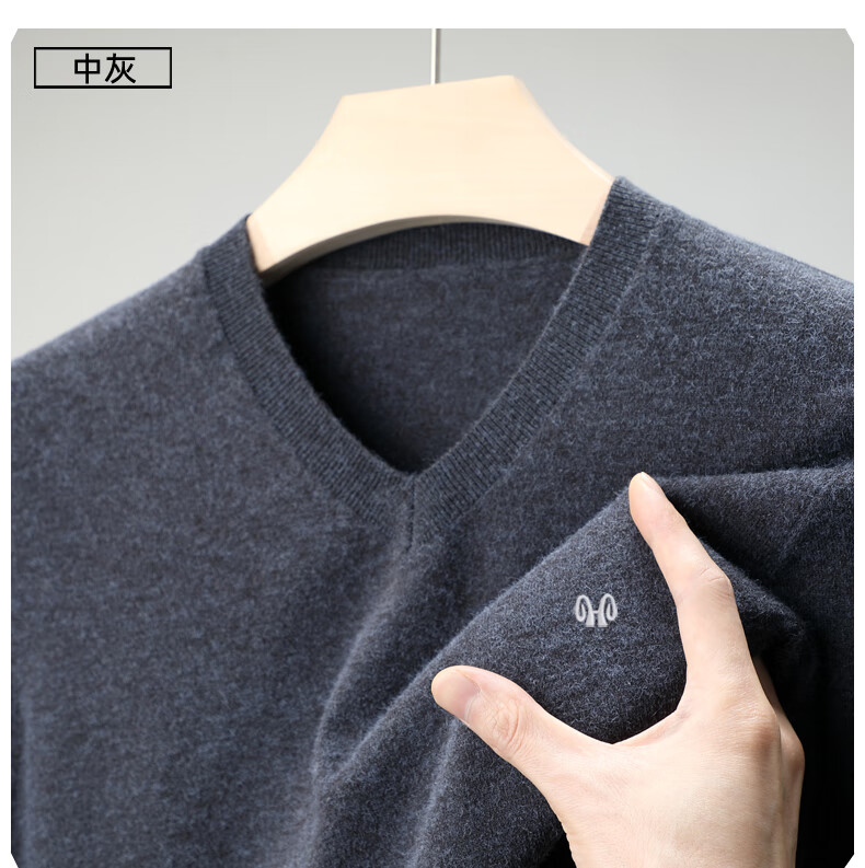 Hengyuanxiang brand thin section 100 sheep. Cashmere sweater men's v-neck spring and autumn solid color bottoming sweater sweetheart collar men's sheep. sweater light gray 175 yards recommended 140-150 Jin Jin equals 0.5 kg to wear
