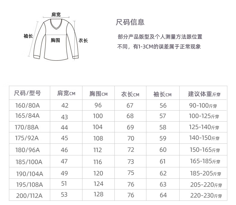 China (cm) 160-165/84-86 165-170 / 88-90 167-172 / 92-96 168-173 / 98-102 170-176 / 106-110