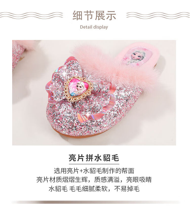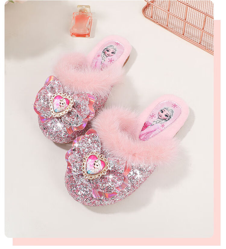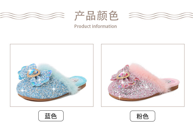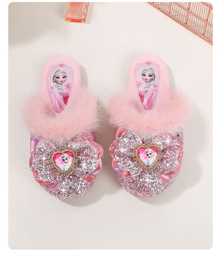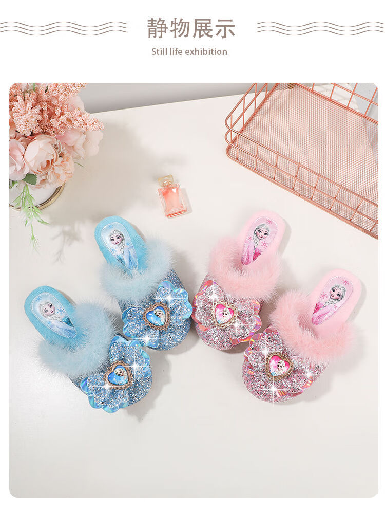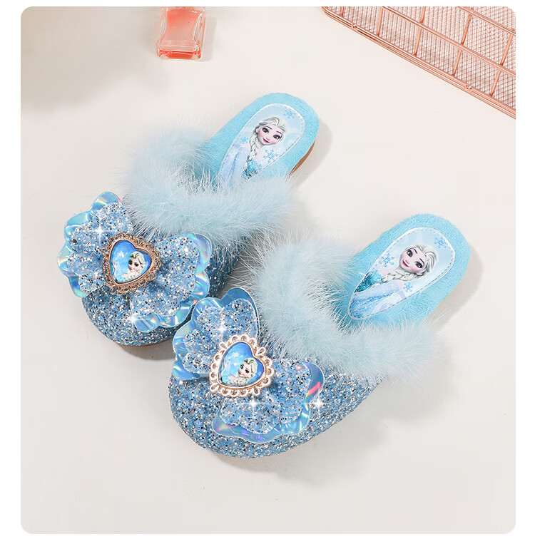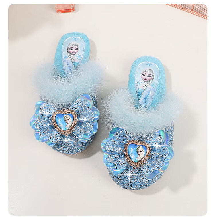 G.duck Children's Cotton Slippers Autumn and Winter Home Indoor Warm, Deodorant and Anti-Slip Elsa Little Girl Elsa Princess Princess Shoes Blue Size 30 / Inner Length 19.0cm