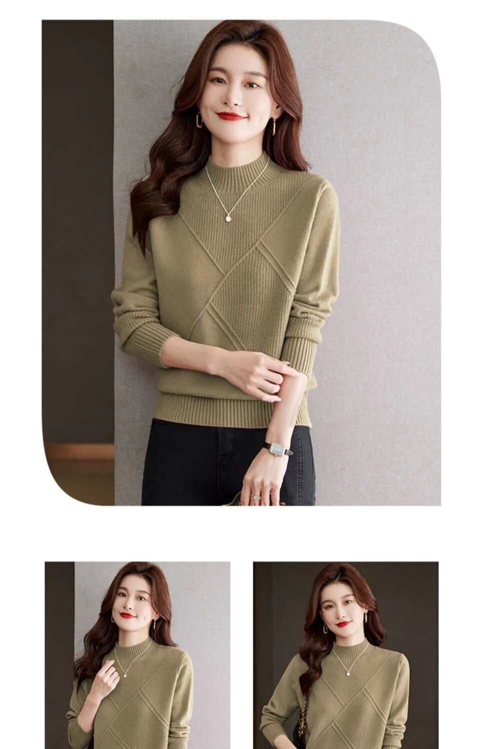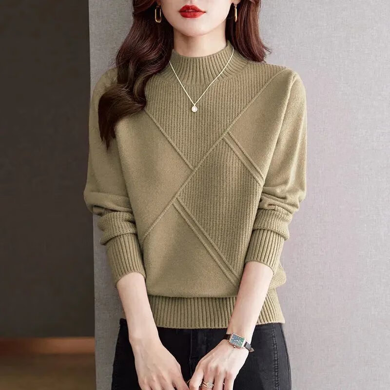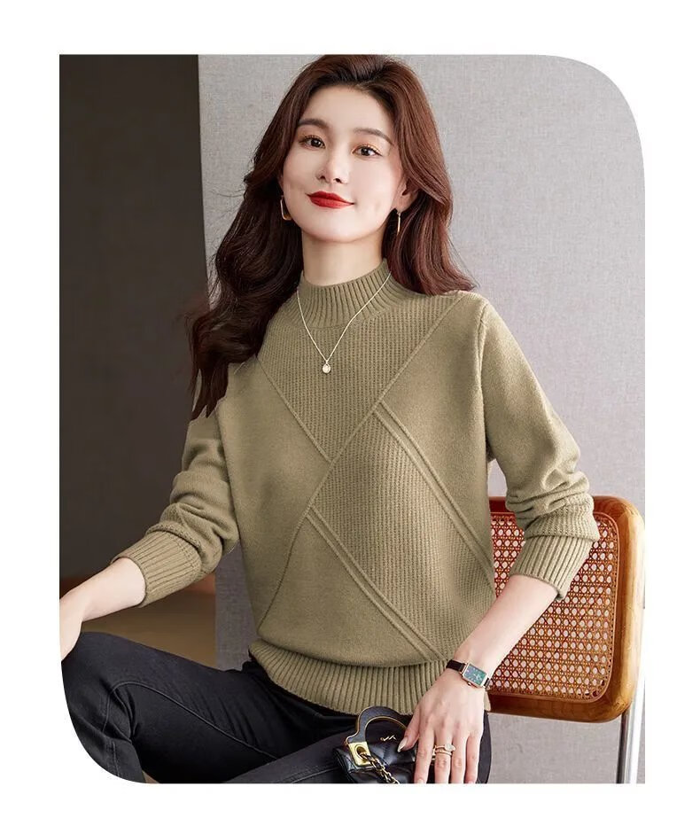ROMON high-end half-turtle collar fashionable sweater for women autumn and winter 2024 new loose and fashionable inner knitted bottoming shirt camel XL recommended 120-130Jin Jin equals 0.5 kg