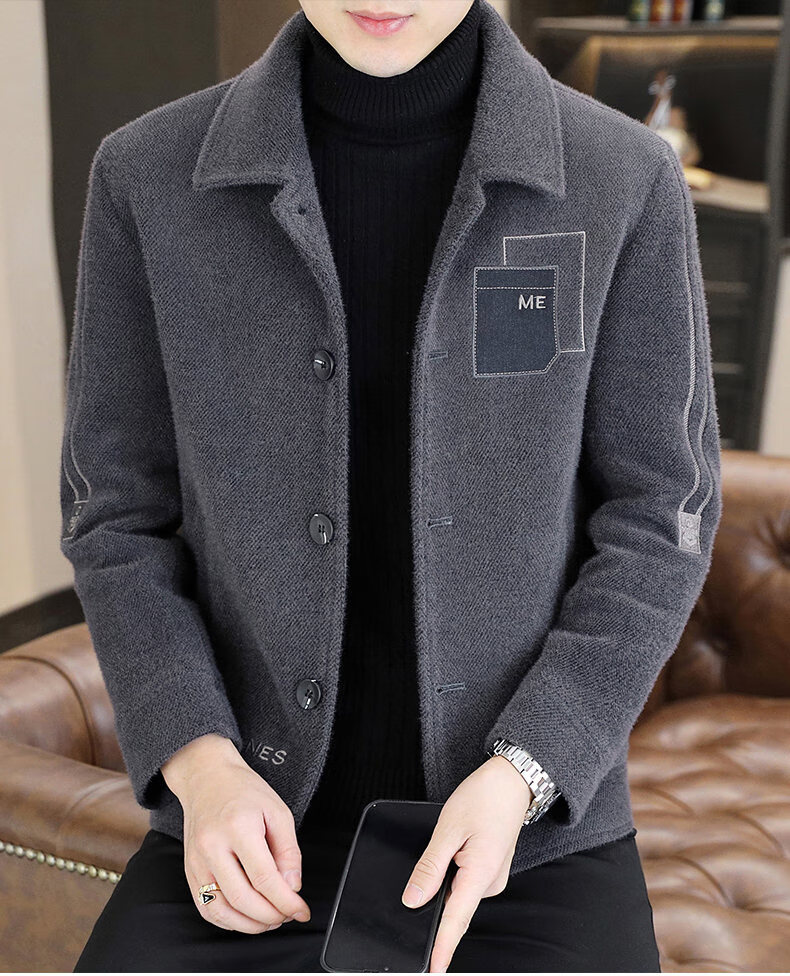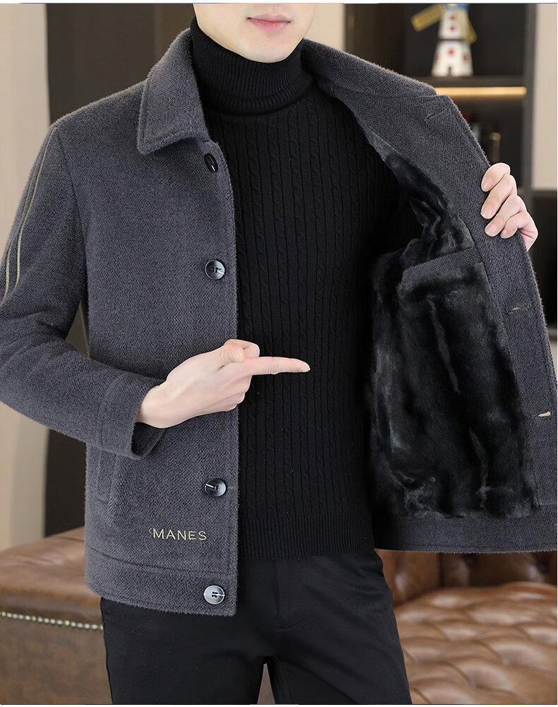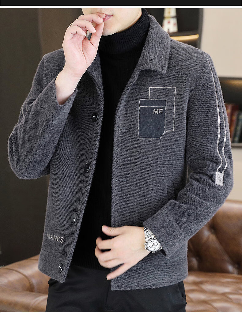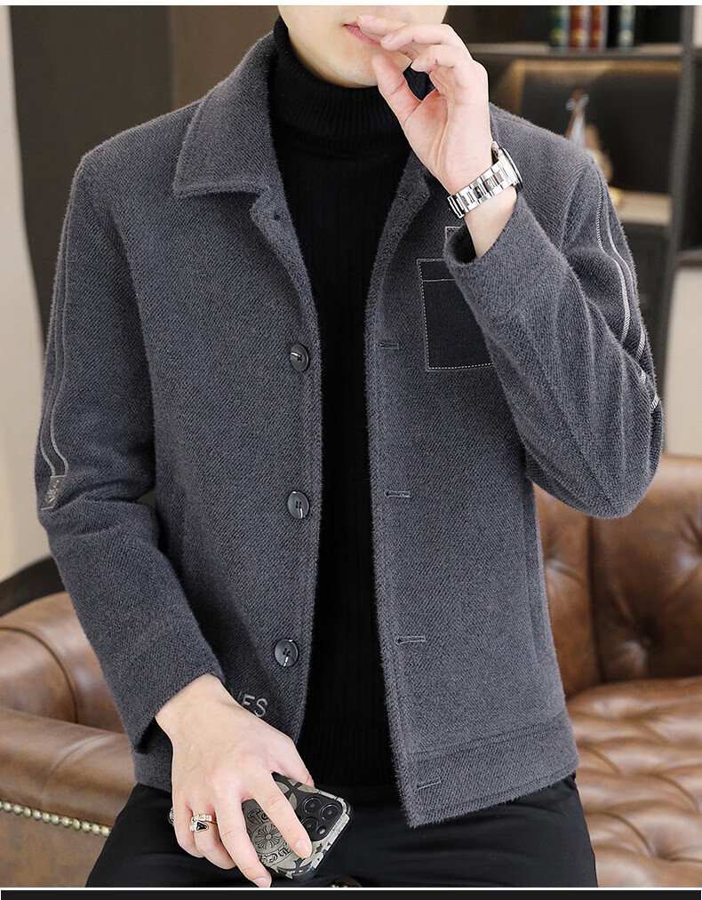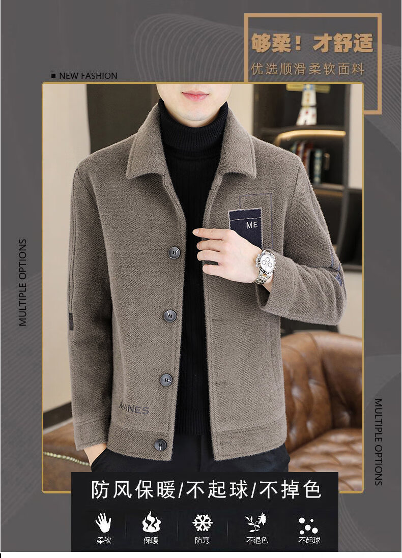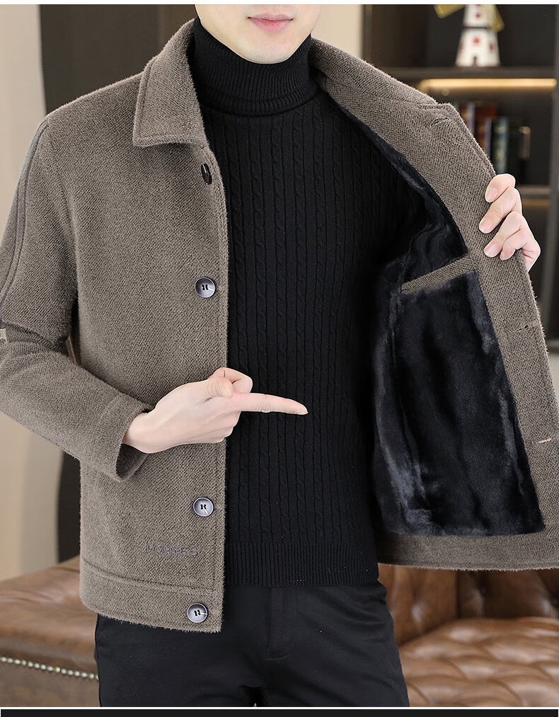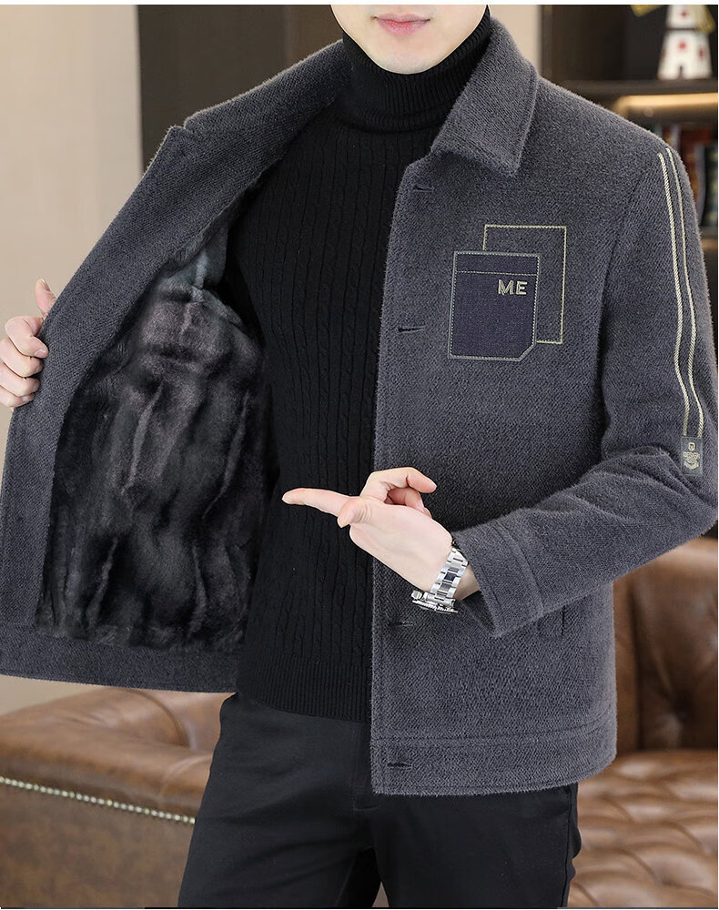 ROMON men's woolen jacket 2025 autumn and winter new tops high-end velvet thickened dad short woolen jacket gray cotton XL