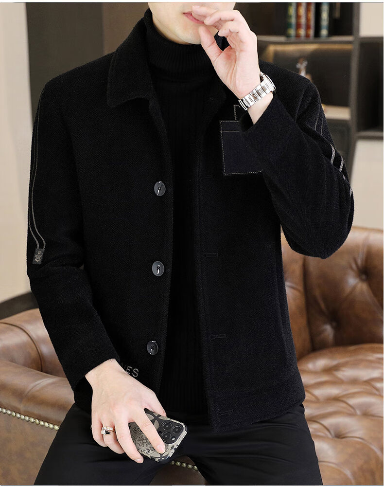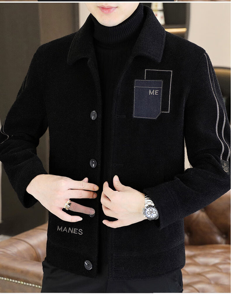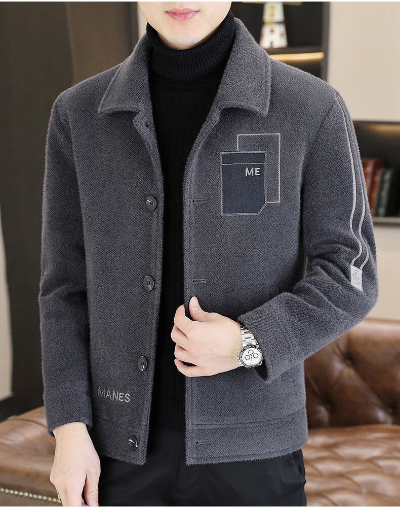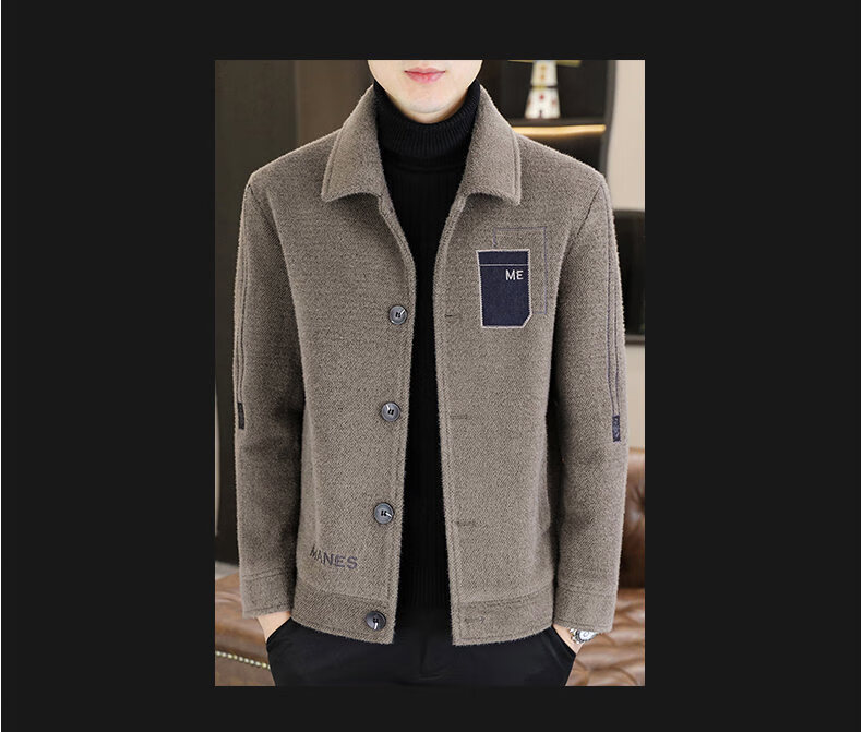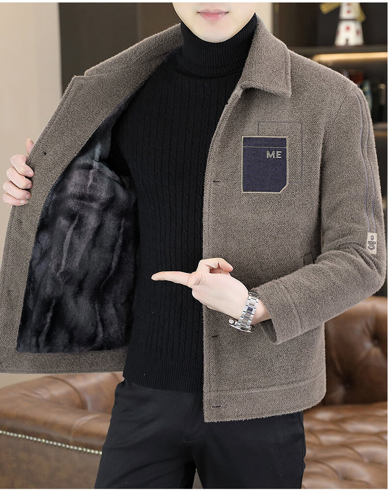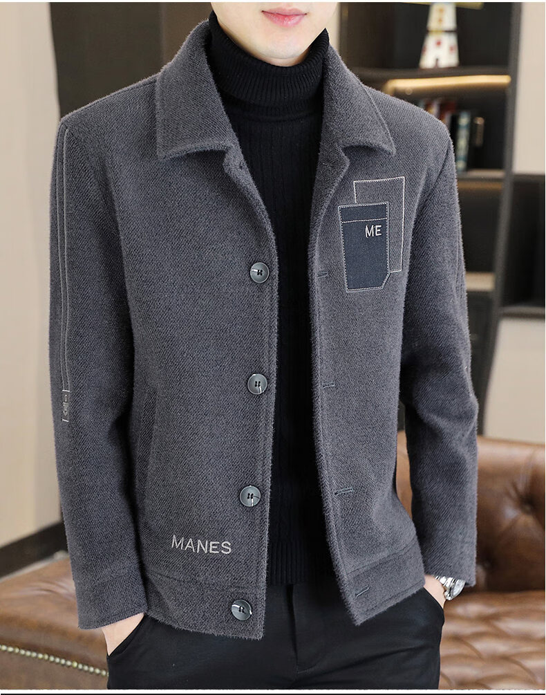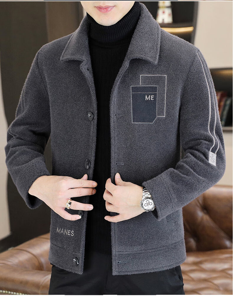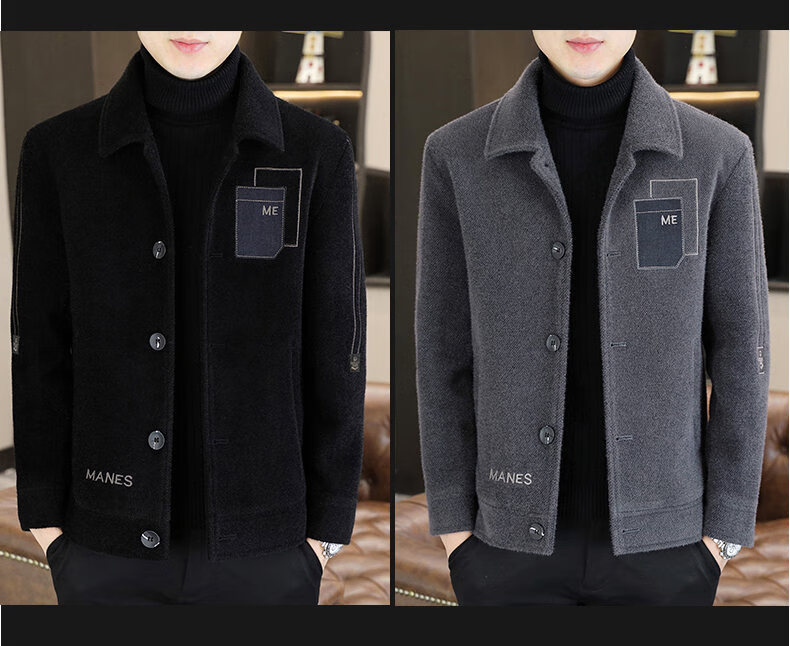 ROMON men's woolen jacket 2025 autumn and winter new tops high-end velvet thickened dad short woolen jacket gray cotton XL