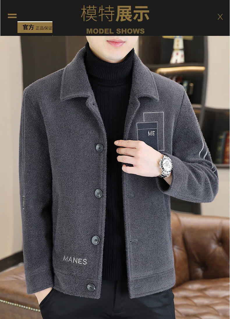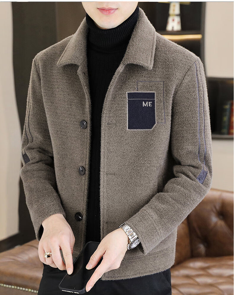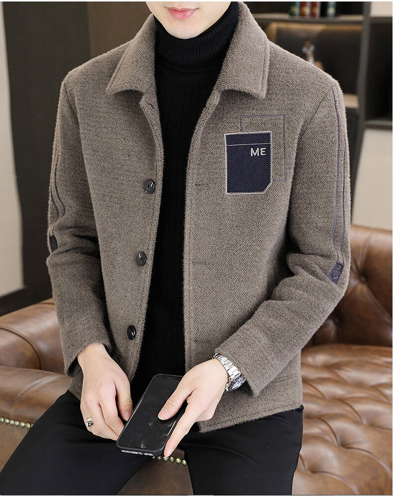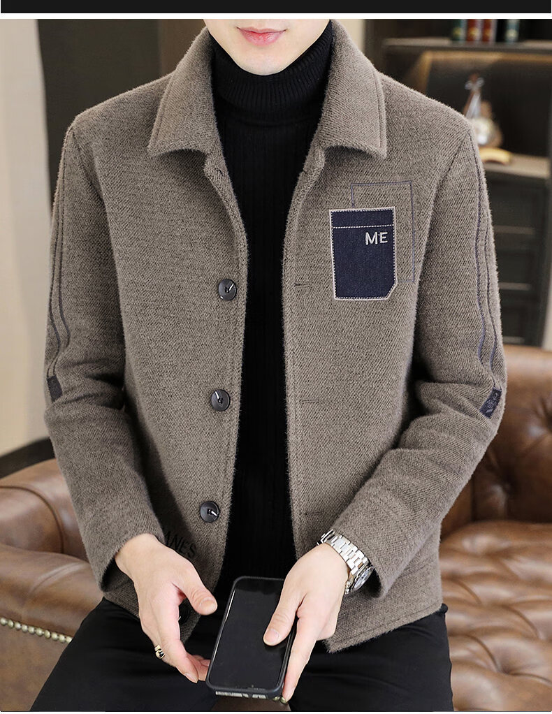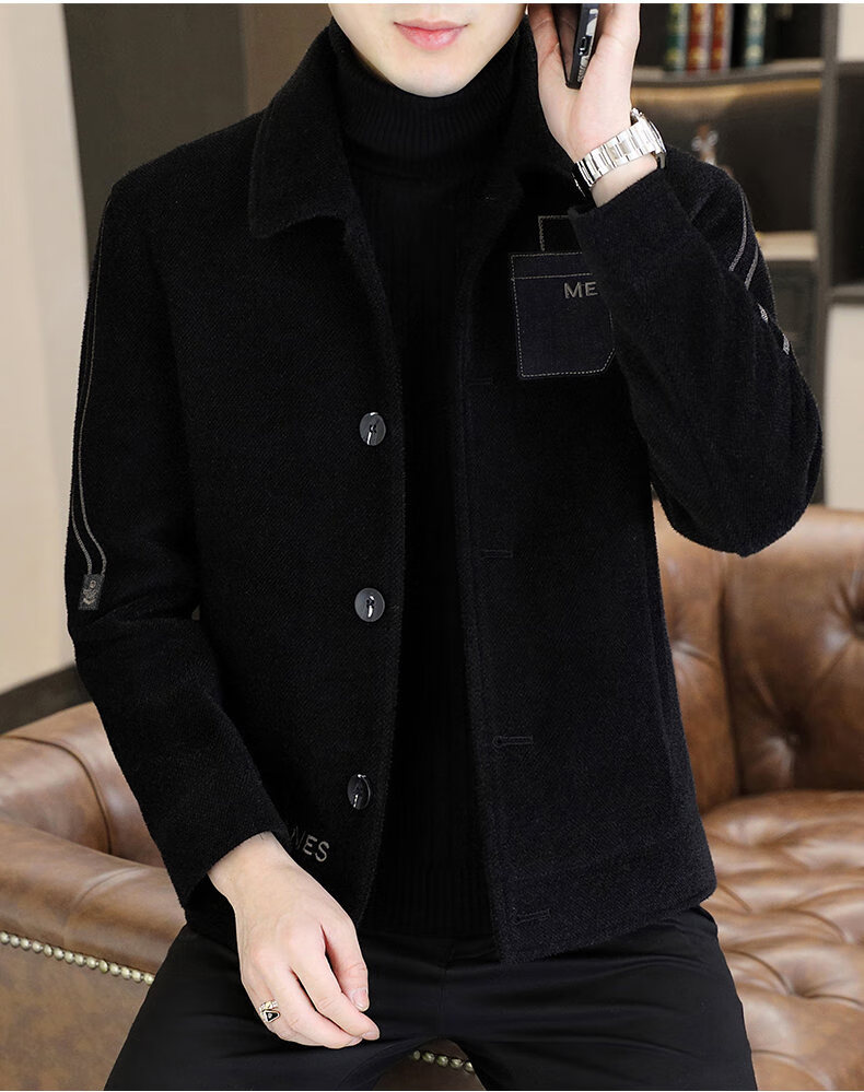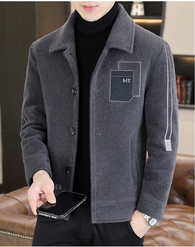 ROMON men's woolen jacket 2025 autumn and winter new tops high-end velvet thickened dad short woolen jacket gray cotton XL