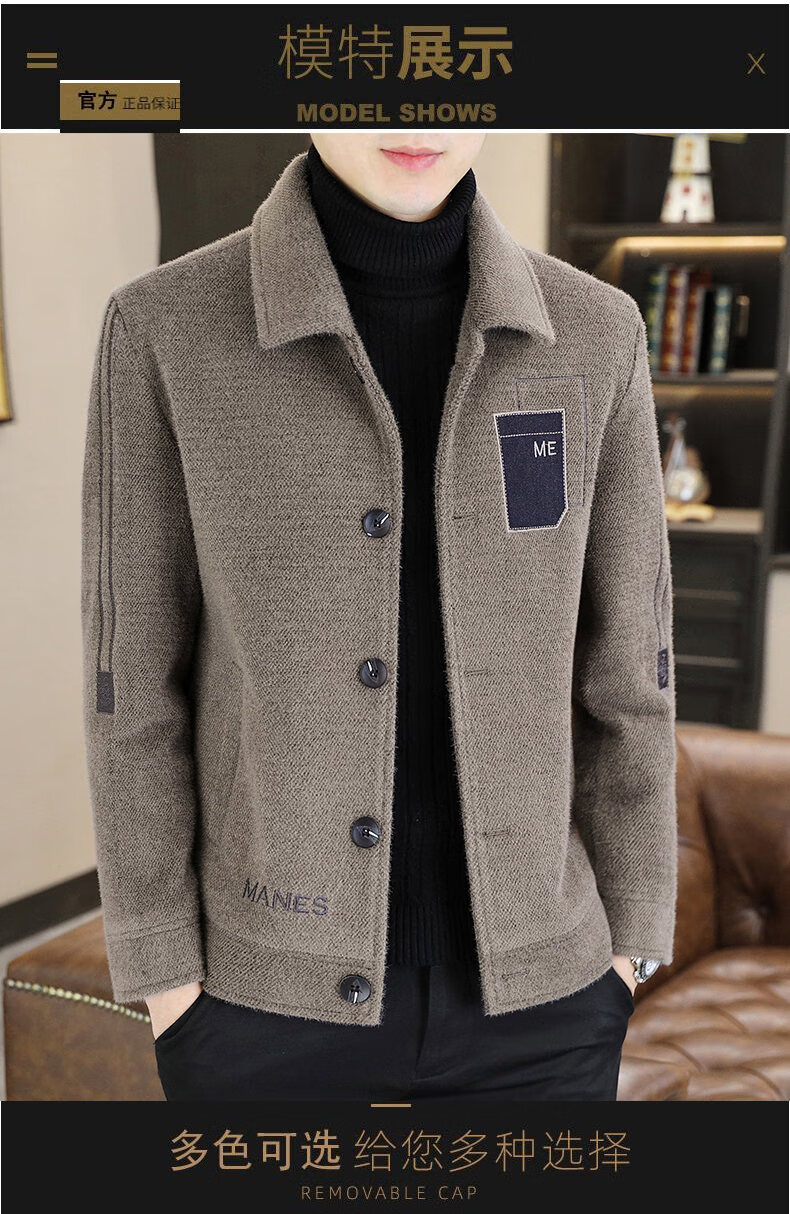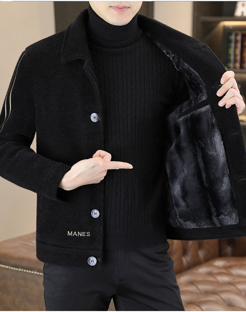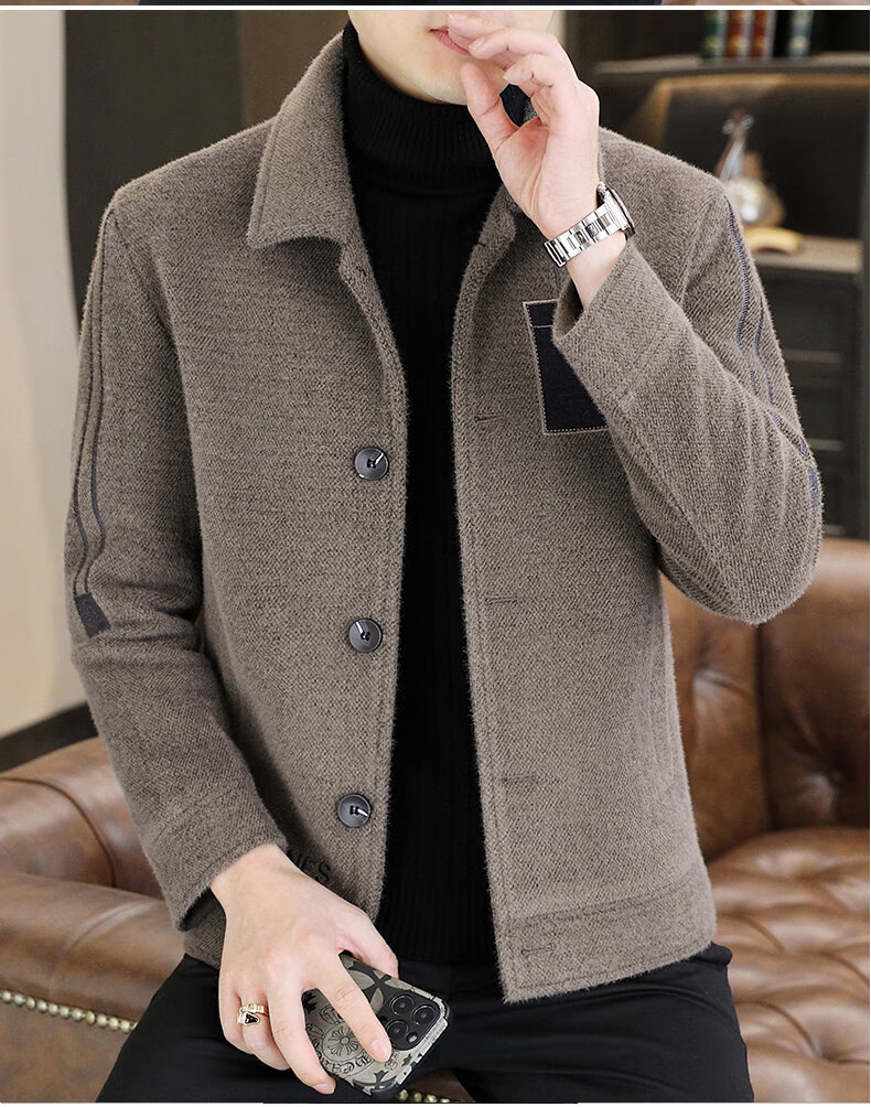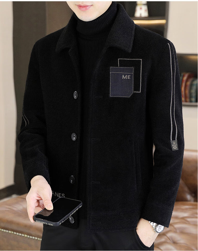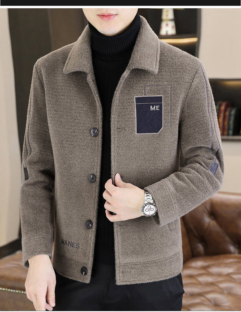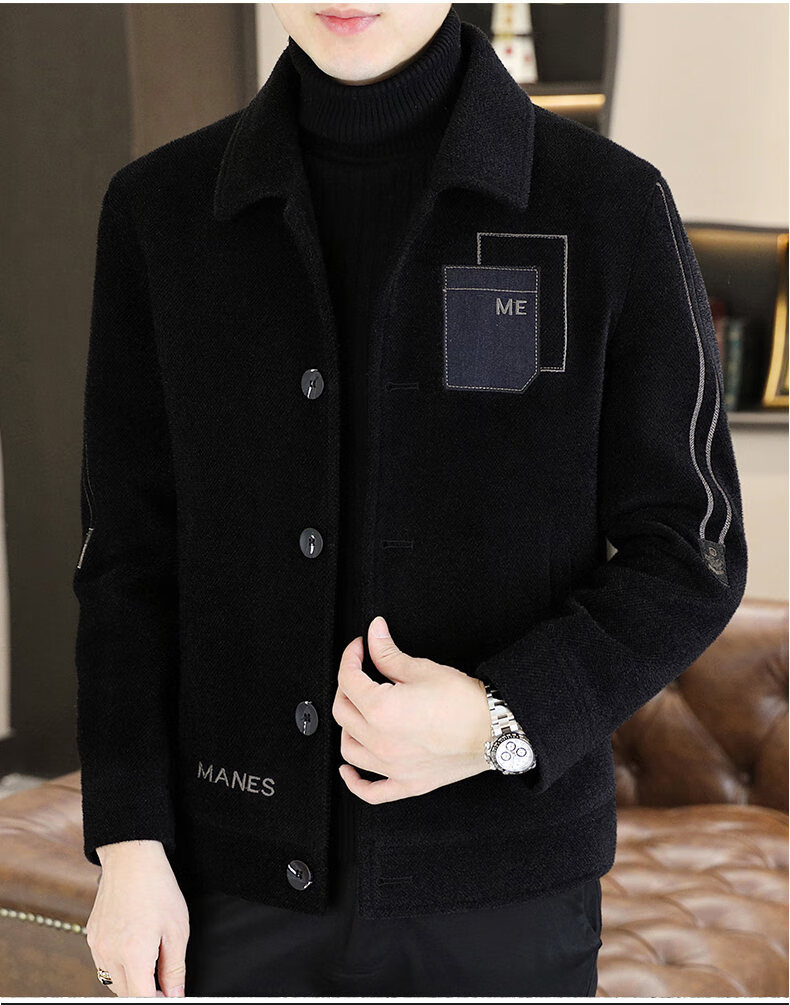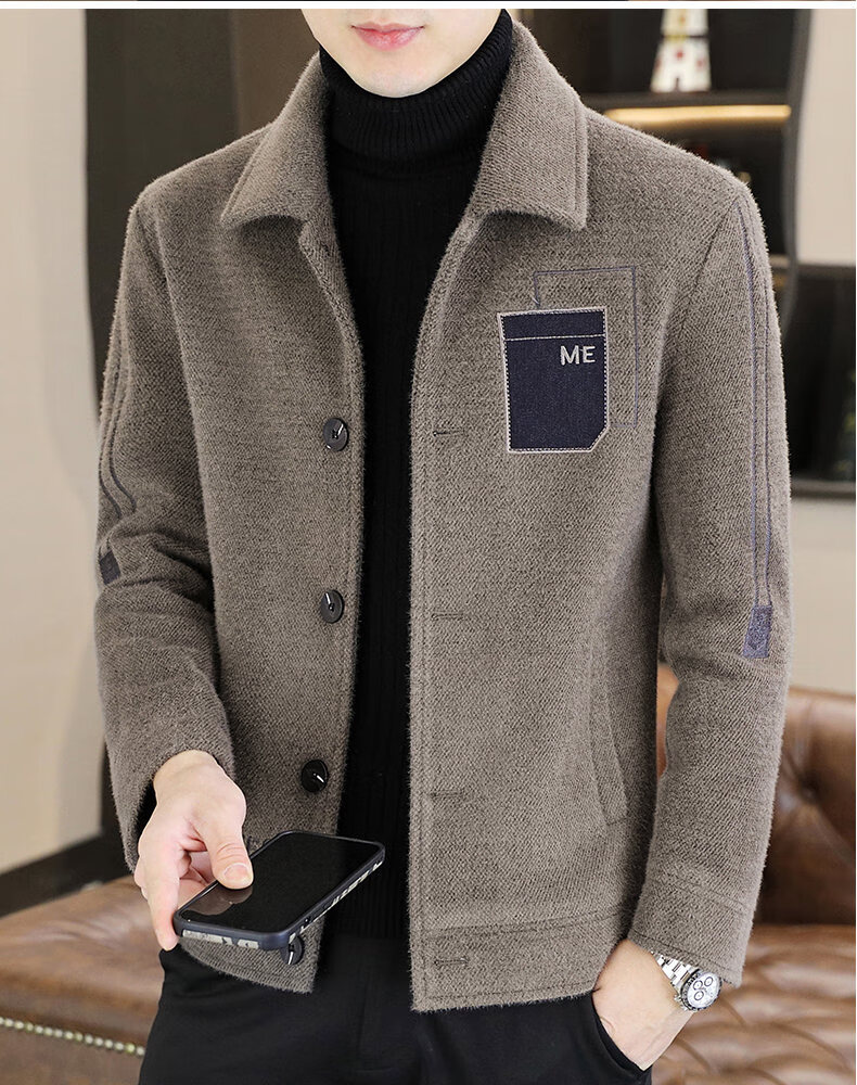 ROMON men's woolen jacket 2025 autumn and winter new tops high-end velvet thickened dad short woolen jacket gray cotton XL