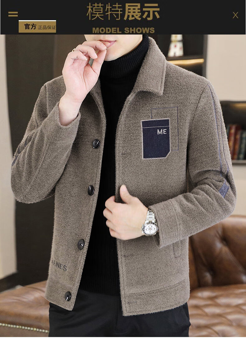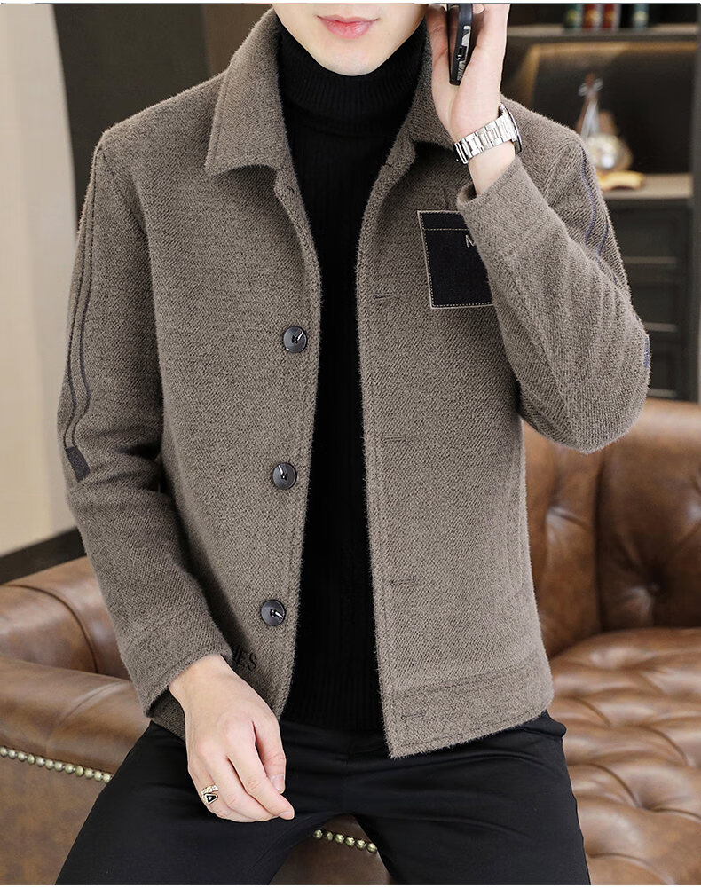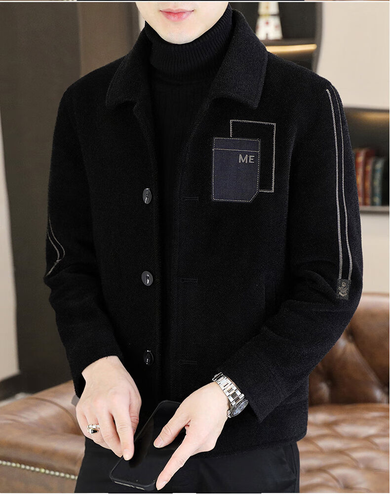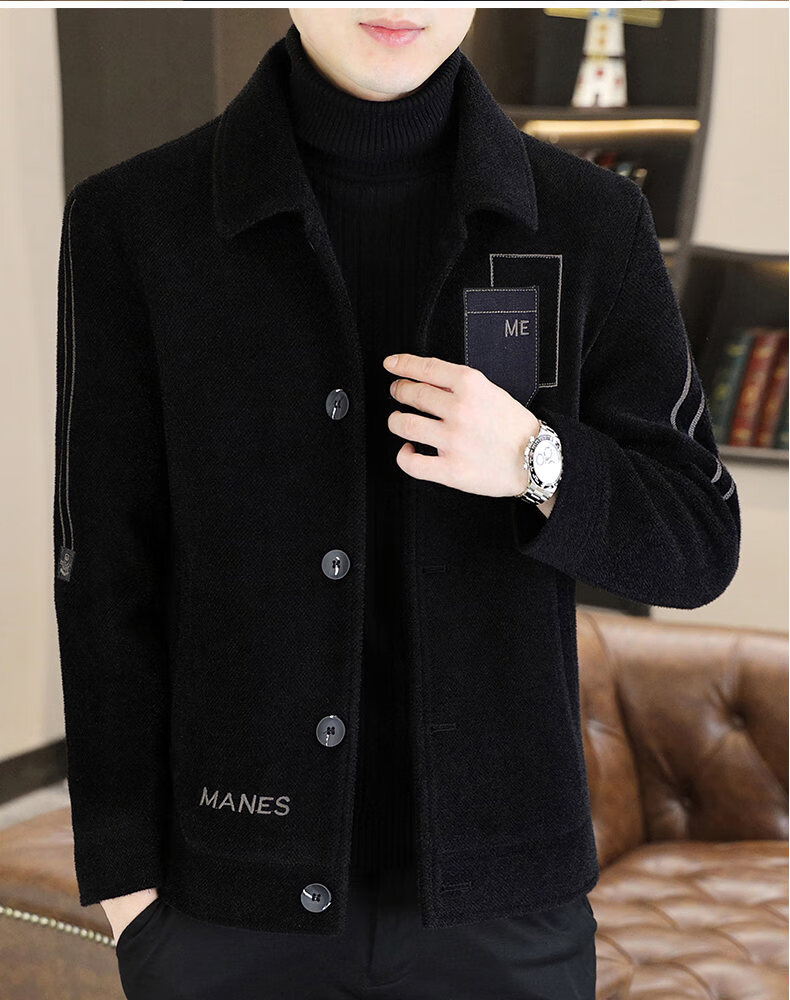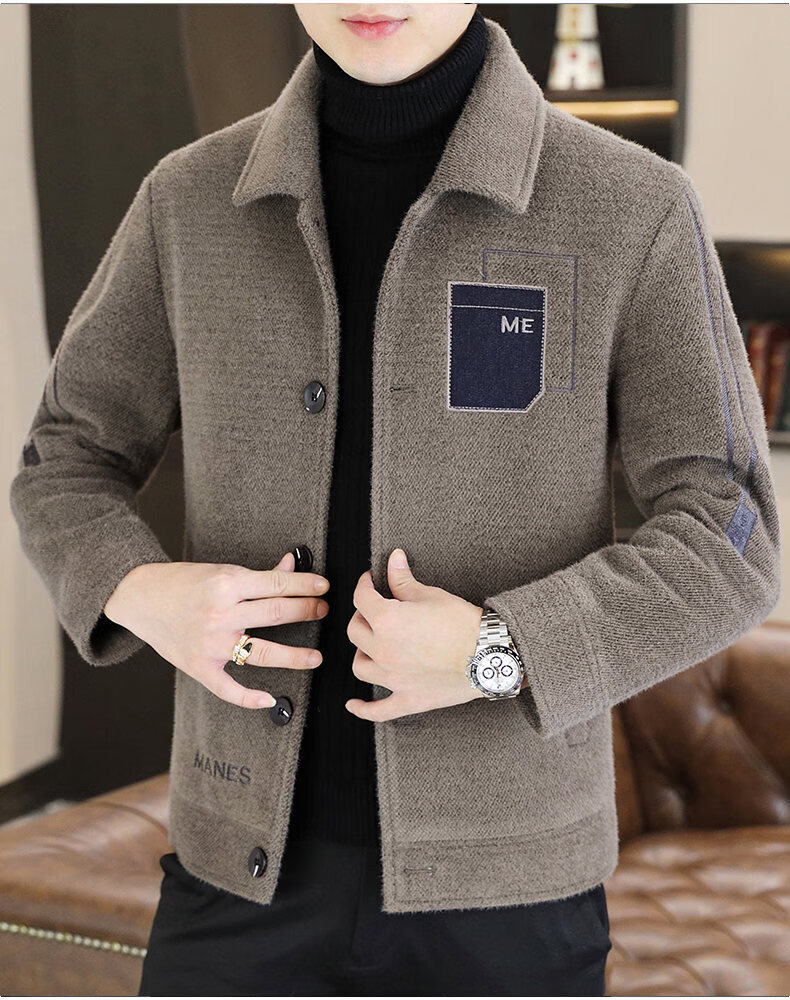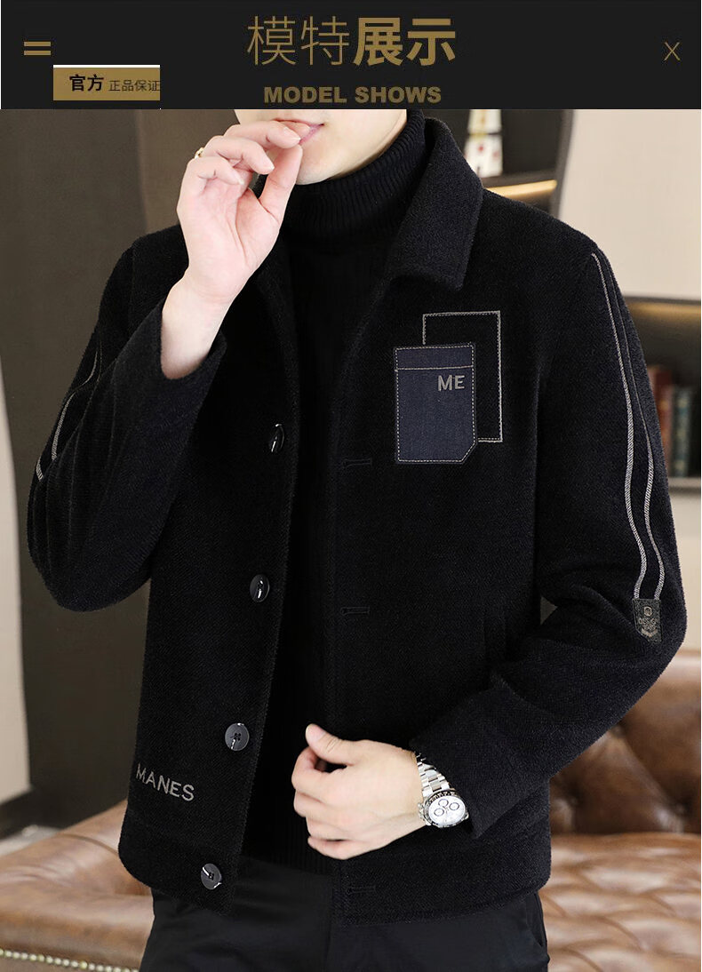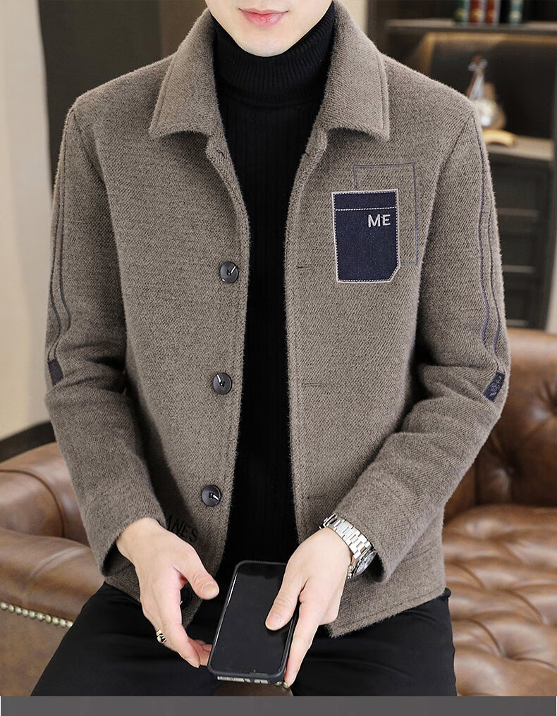 ROMON men's woolen jacket 2025 autumn and winter new tops high-end velvet thickened dad short woolen jacket gray cotton XL