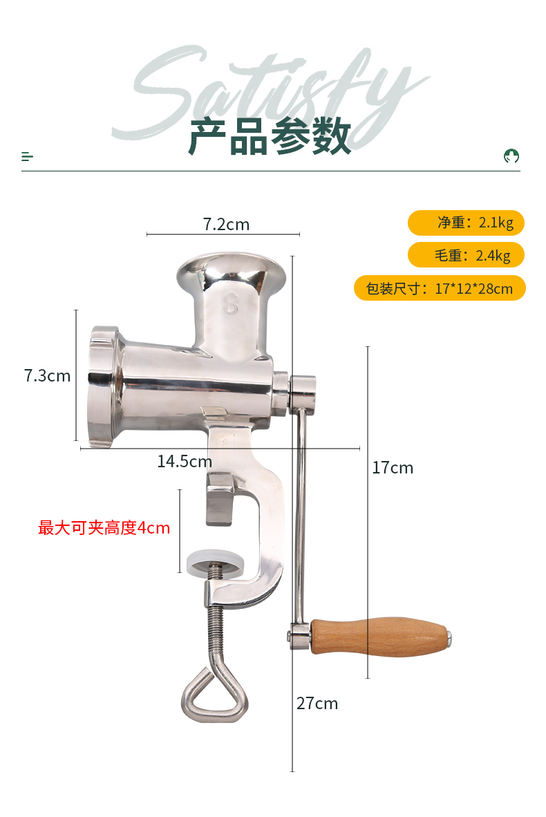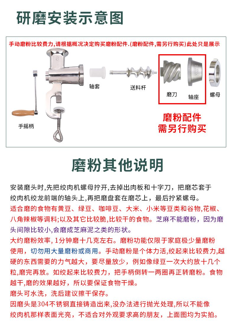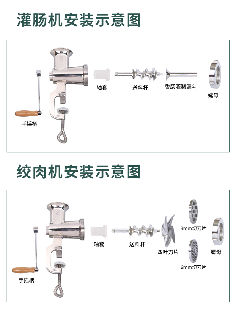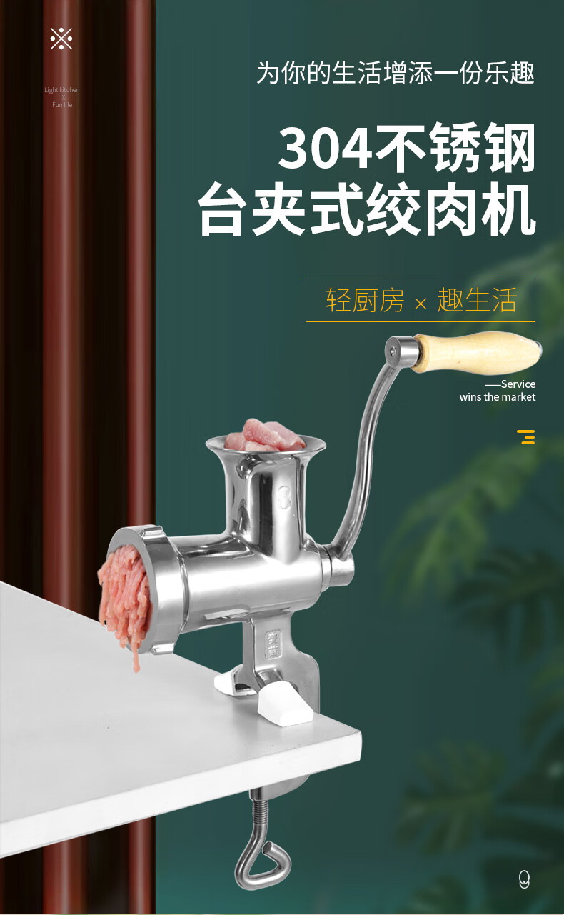 Mai Miao Household Meat Mincer Stainless Steel Manual Meat Grinder No. 8 Household Hand-cranked Minced Meat Stuffing Enema Machine