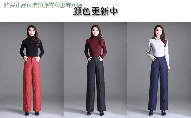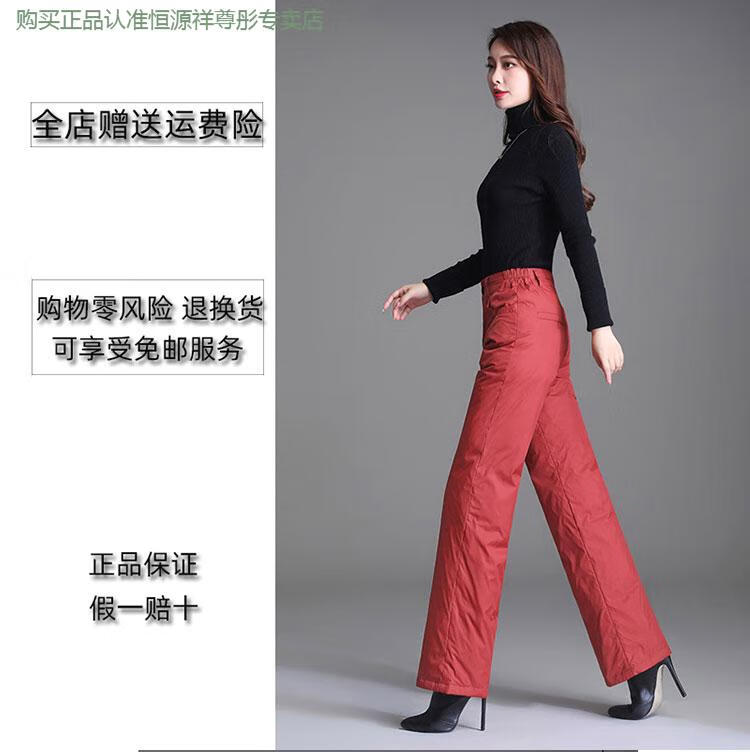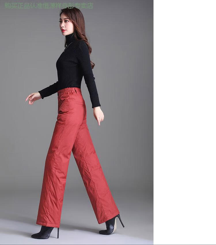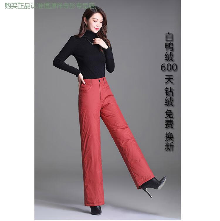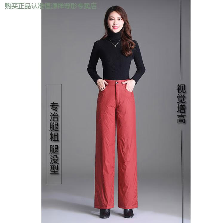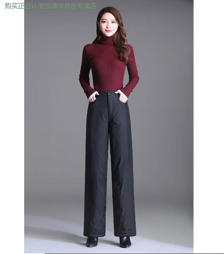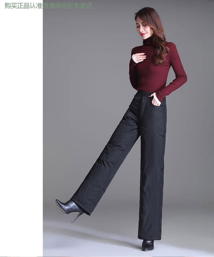 Hengyuanxiang Down Pants Women's Outerwear High Waisted Wide Leg Pants Thickened Double-sided White Duck Down Cotton Pants Winter Warm Loose Straight Pants Black 2XL