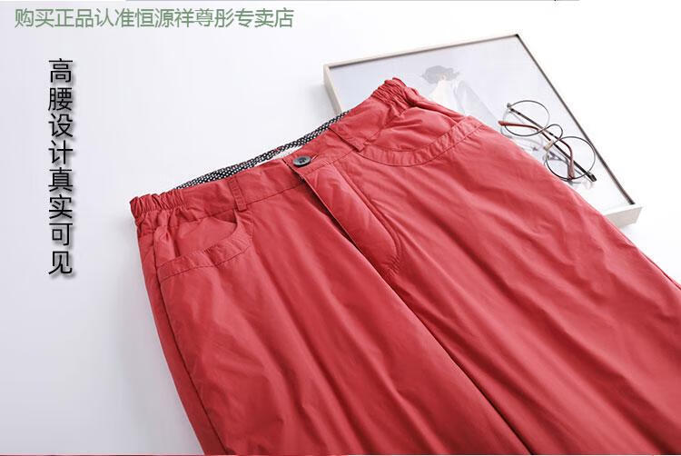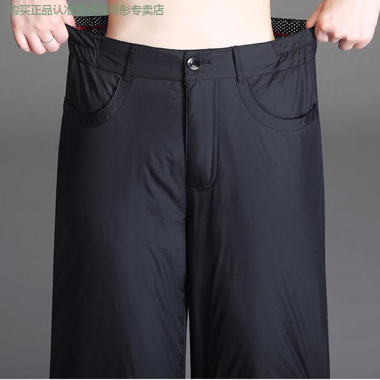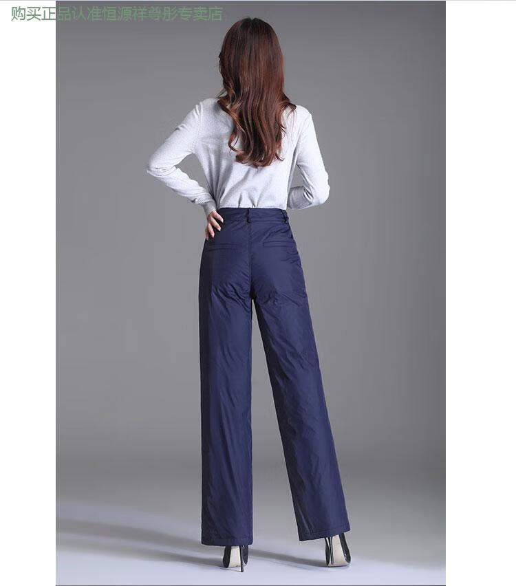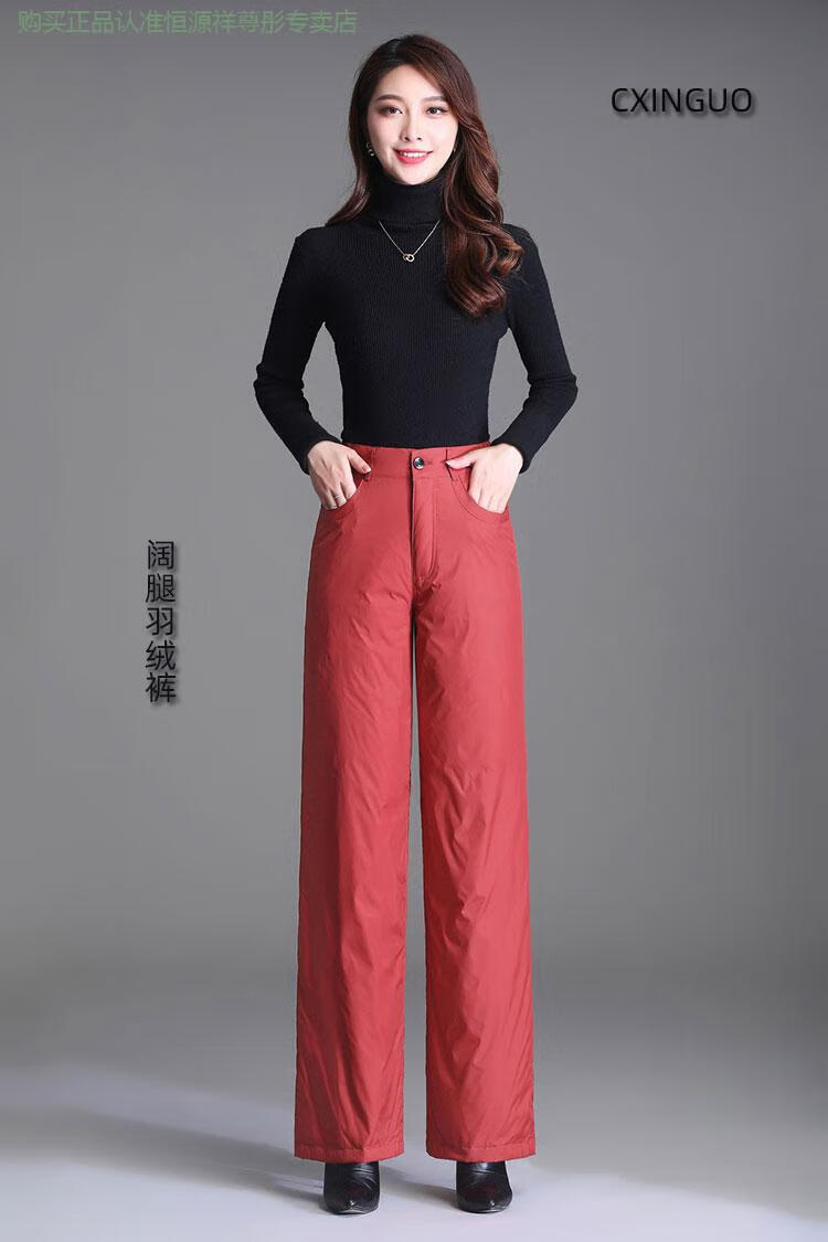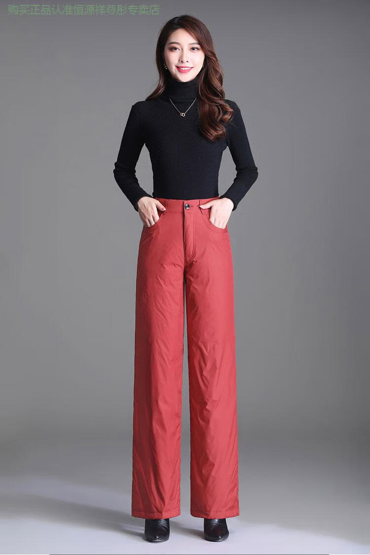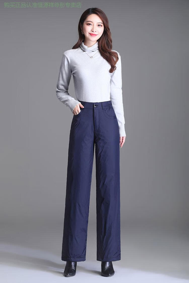 Hengyuanxiang Down Pants Women's Outerwear High Waisted Wide Leg Pants Thickened Double-sided White Duck Down Cotton Pants Winter Warm Loose Straight Pants Black 2XL