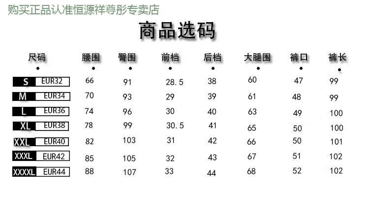 Outseam (cm) 99 cm 101.5 cm 104 cm 106.5 cm 109 cm