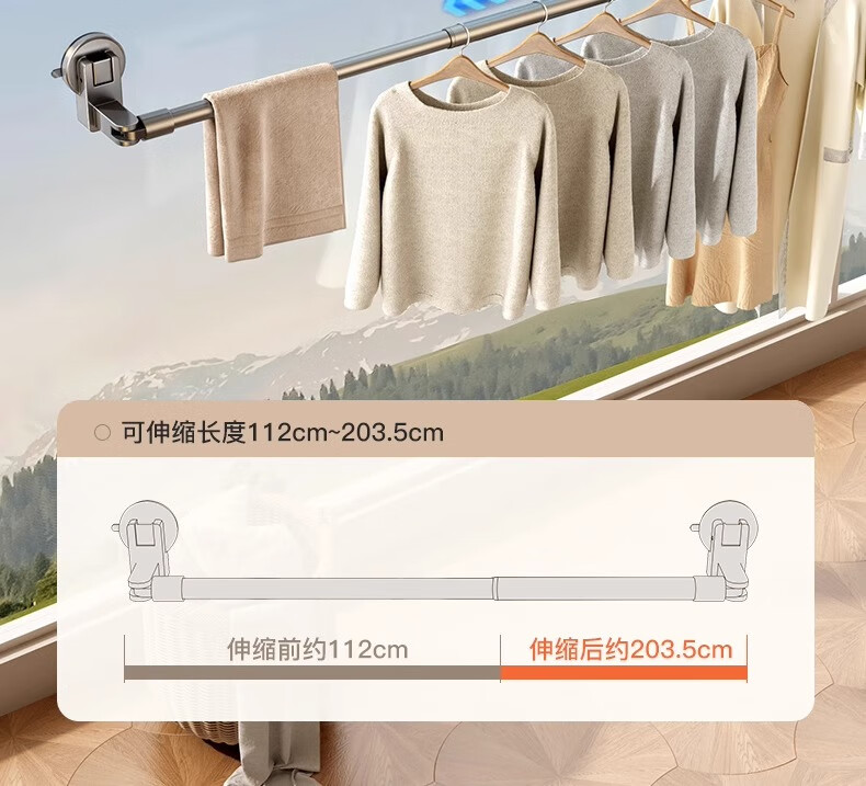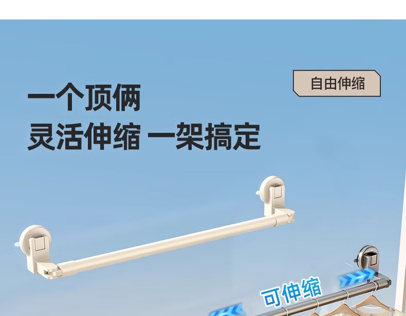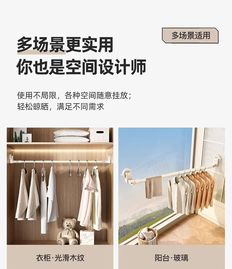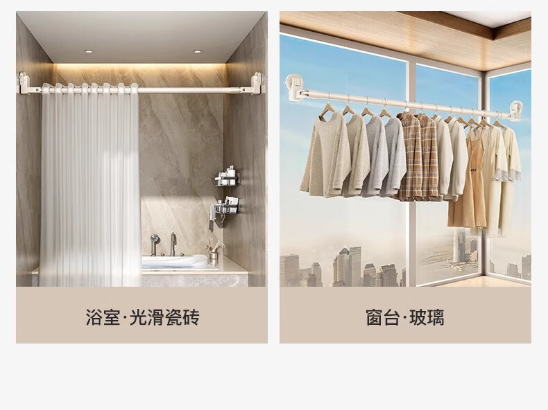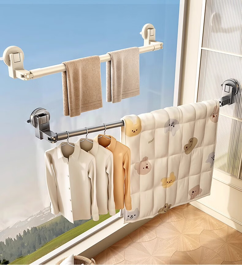 Tiandiyu (TDYU) suction cup clothes drying rack, retractable clothes drying rod, home punch-free balcony space, using quilts to dry clothes, gun ash, retractable corner clothes drying rod, large size