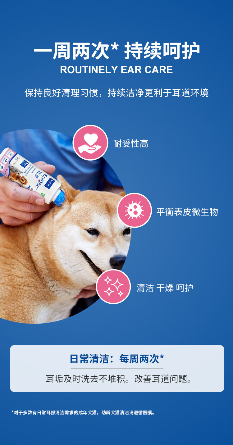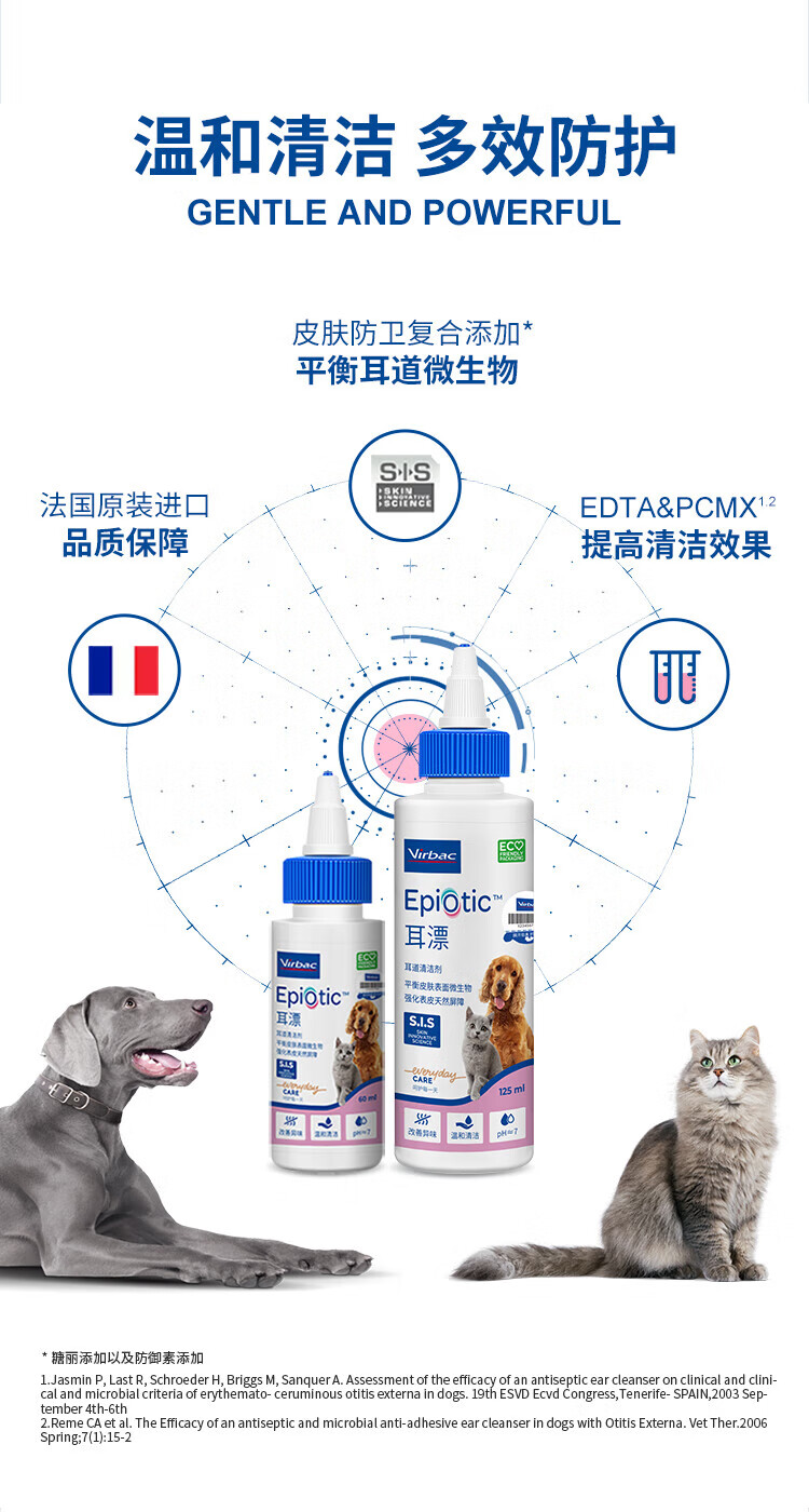 Virbac ear bleaching ear drops for dogs and cats to prevent ear mites, relieve itching, ear cleaning, pet ear cleaning liquid, Virbac eye cleansing solution 60ml