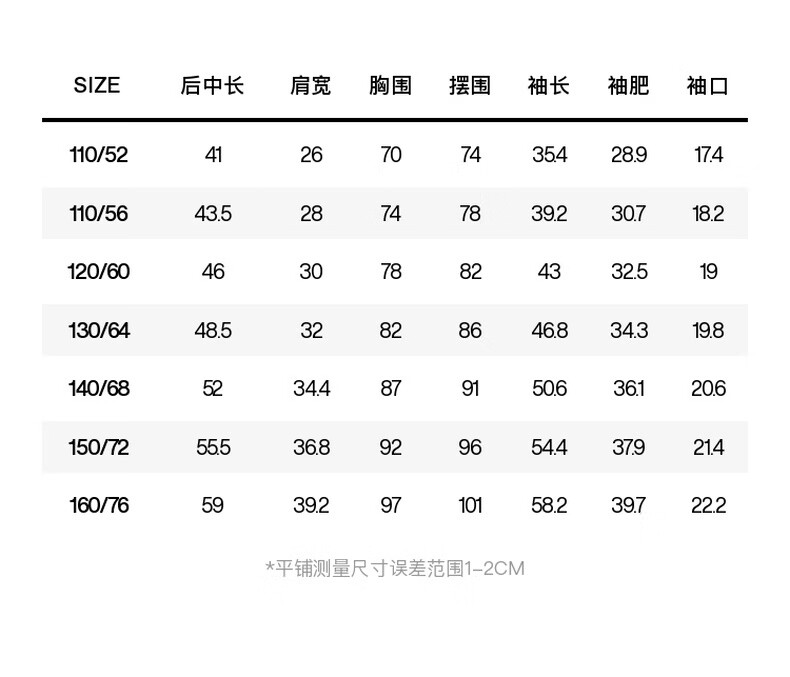 China (cm) 160-165/84-86 165-170 / 88-90 167-172 / 92-96 168-173 / 98-102 170-176 / 106-110