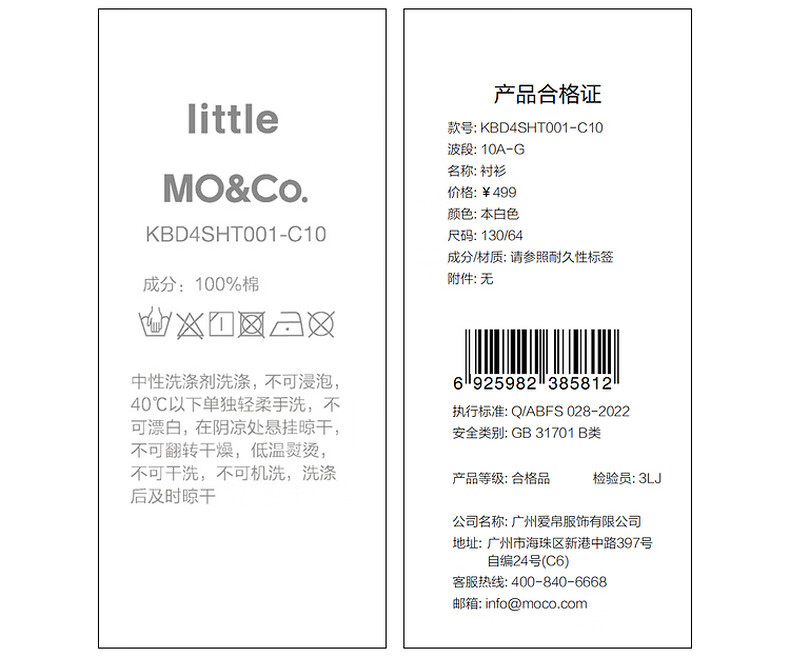 Little MO&Co. Children's clothing winter new style girls pure cotton white shirt princess sleeve shirt KBD4SHT001 white 150 150/72