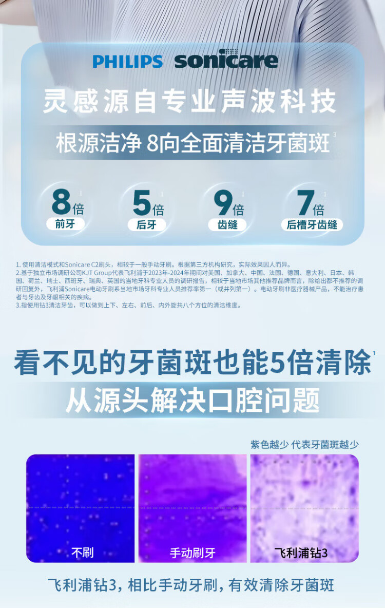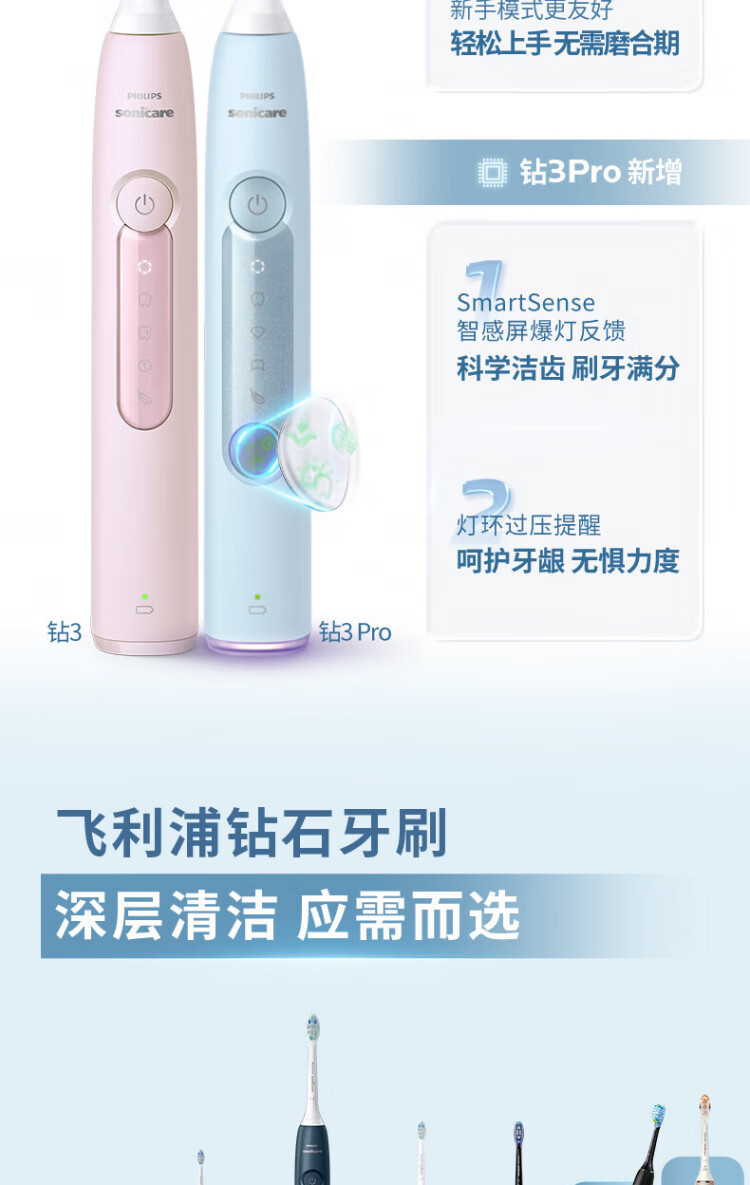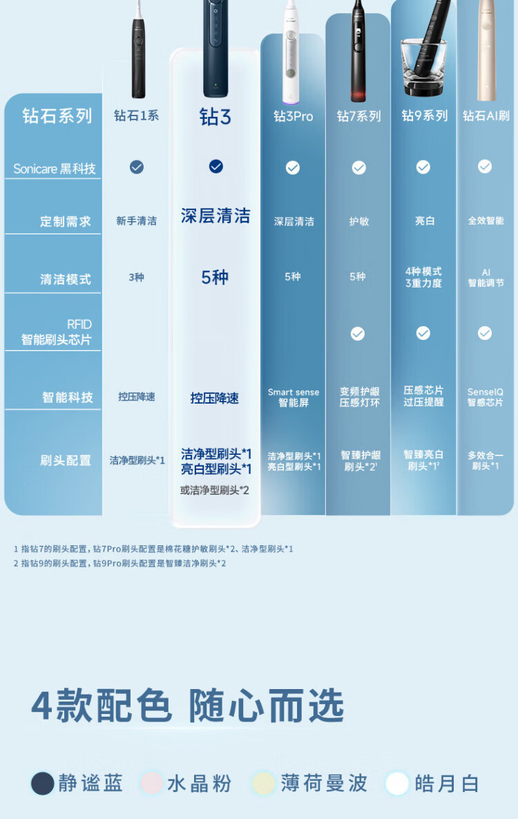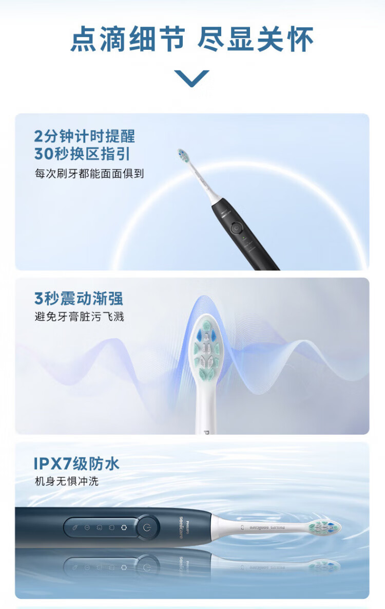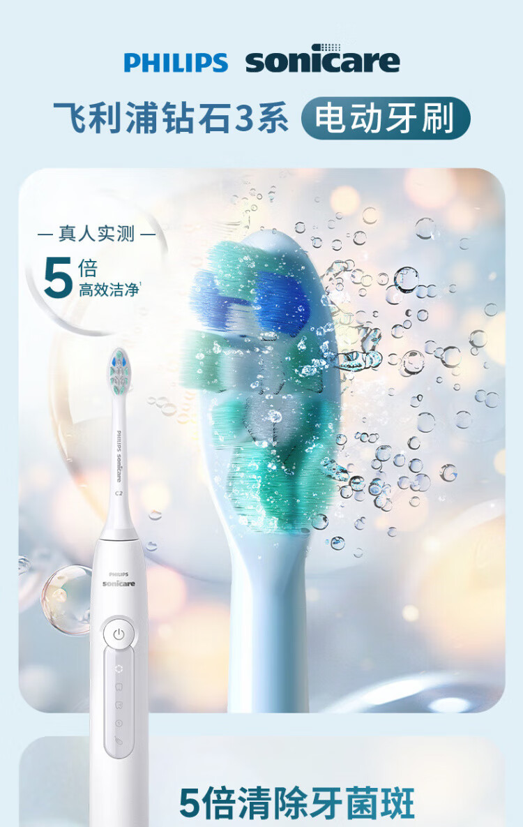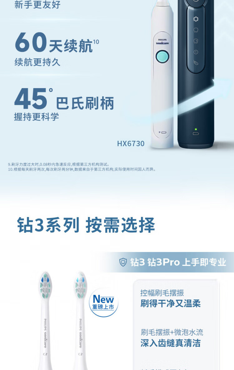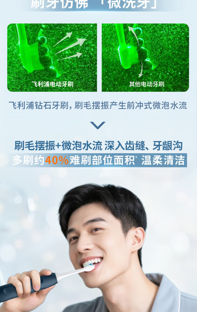 Philips (PHILIPS) Xiao Zhan recommends electric toothbrush Diamond series HX6730 upgraded micro-bubble water flow technology oscillating brush as a birthday gift for parents, boyfriend and girlfriend Diamond 3 Nebula Blue-comes with 2 brush heads