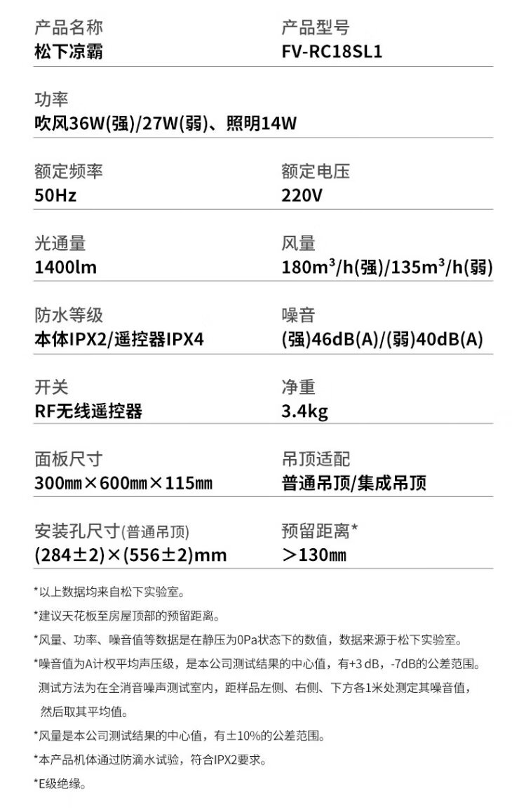 Panasonic Liangba Kitchen Lighting 2-in-1 300x600 Wireless Remote Control Cooling Fan Hair Dryer Kitchen Fan Light FV-RC18SL1/Thin Body/With Lighting