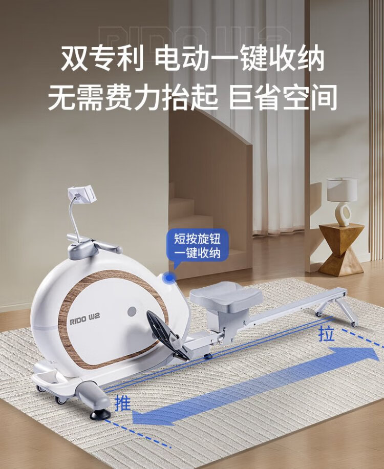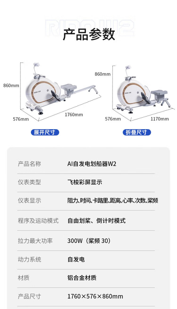 RIDO rowing machine self-generating household rowing machine magnetically controlled intelligently adjusted resistance indoor aerobic and anaerobic fitness equipment W2 fully intelligent self-generating-electric storage