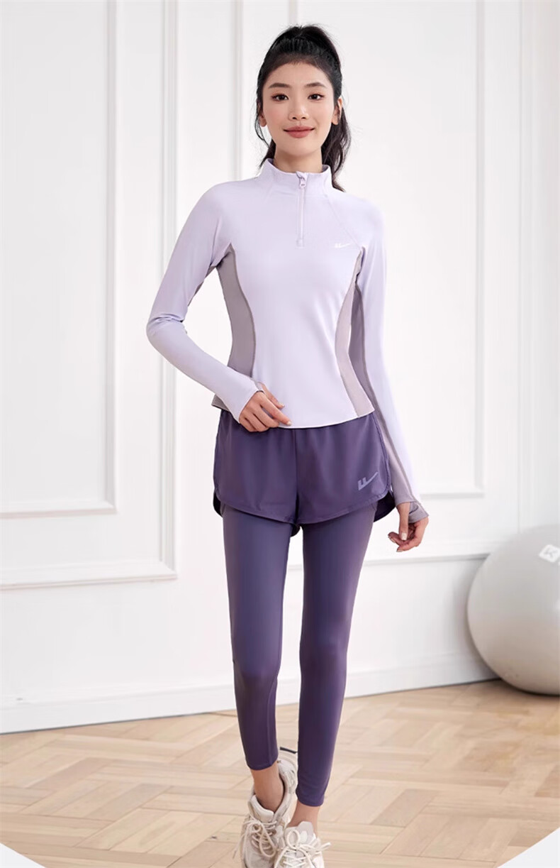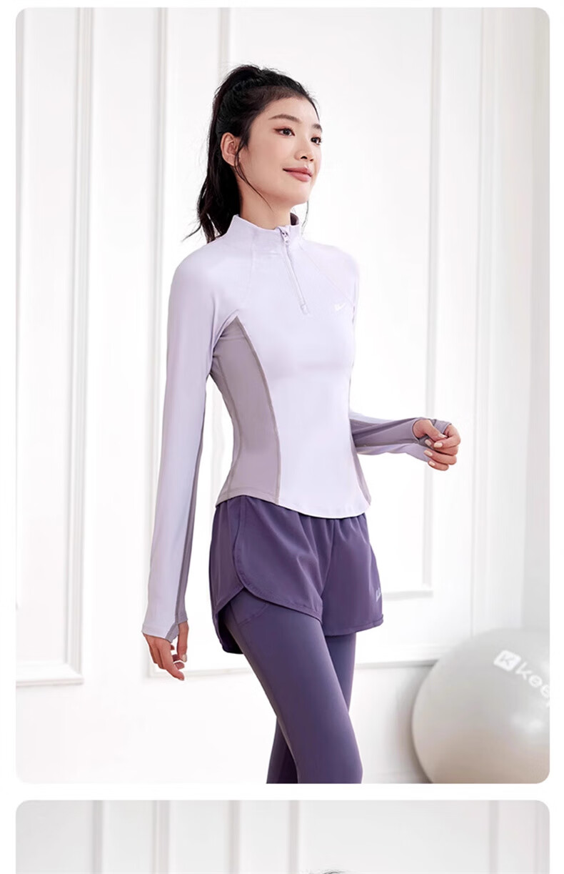 Pull back sports fitness clothing women's new long-sleeved Pilates training clothing slim breathable running yoga clothing J34990H off-white top gray yoga pants S recommended weight 85-100Jin Jin equals 0.5 kg