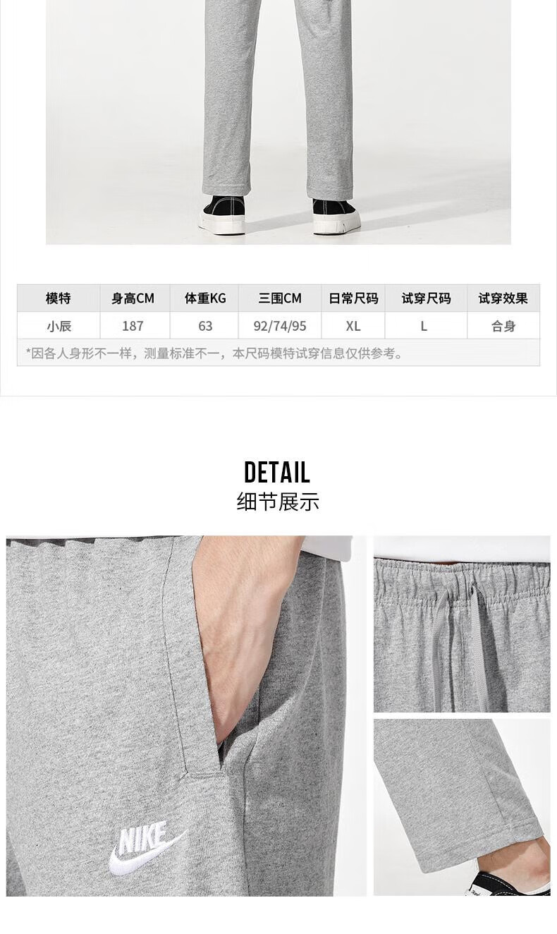 Nike (NIKE) gray sweatpants sweatpants men's autumn thin breathable casual men's long pants men's BV2767 BV2767-063 S size/100-120Jin Jin equals 0.5kg/165