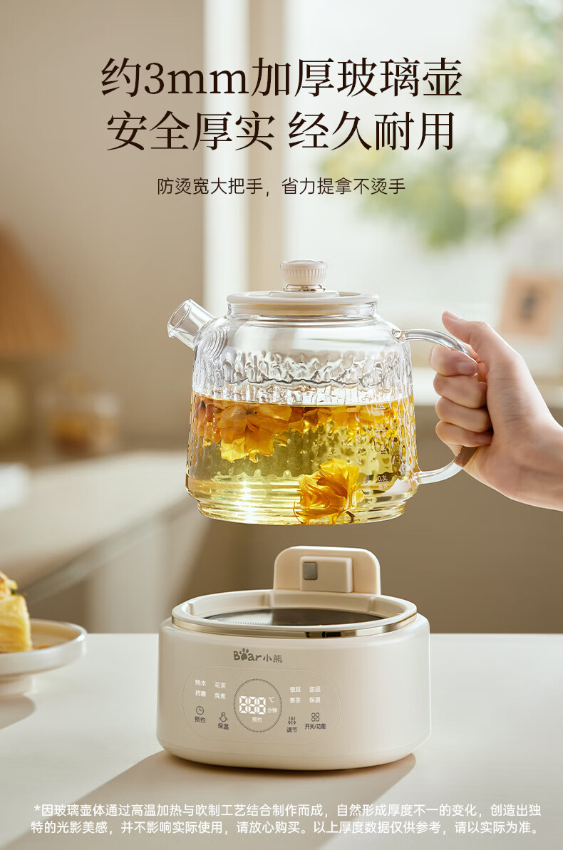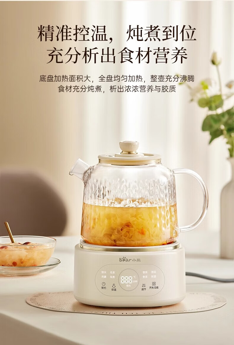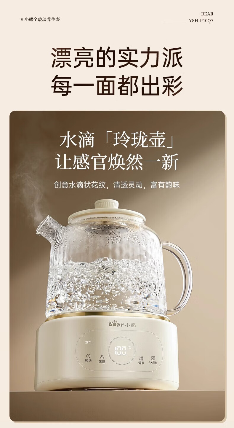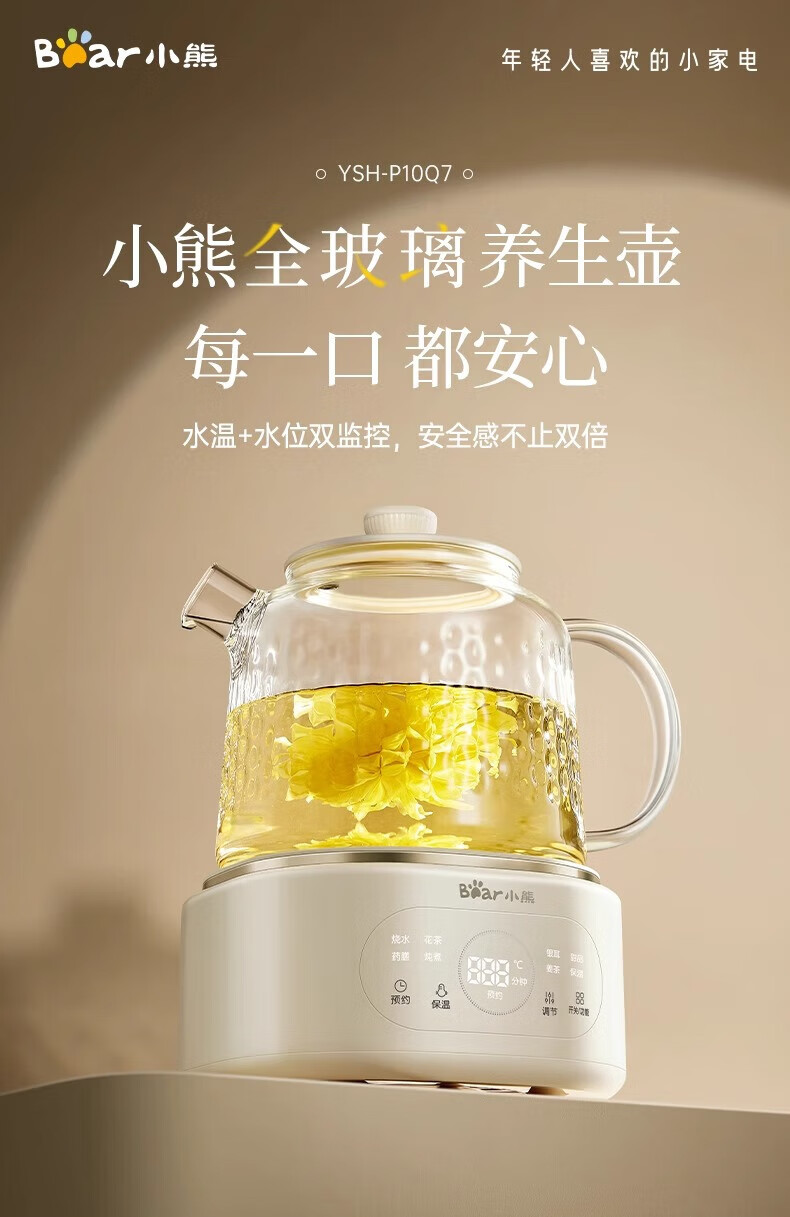 Bear all-glass health pot health cup office multi-function teapot flower teapot 0 metal constant temperature kettle official direct sales YSH-P10Q7 all-glass pot without filter 1L