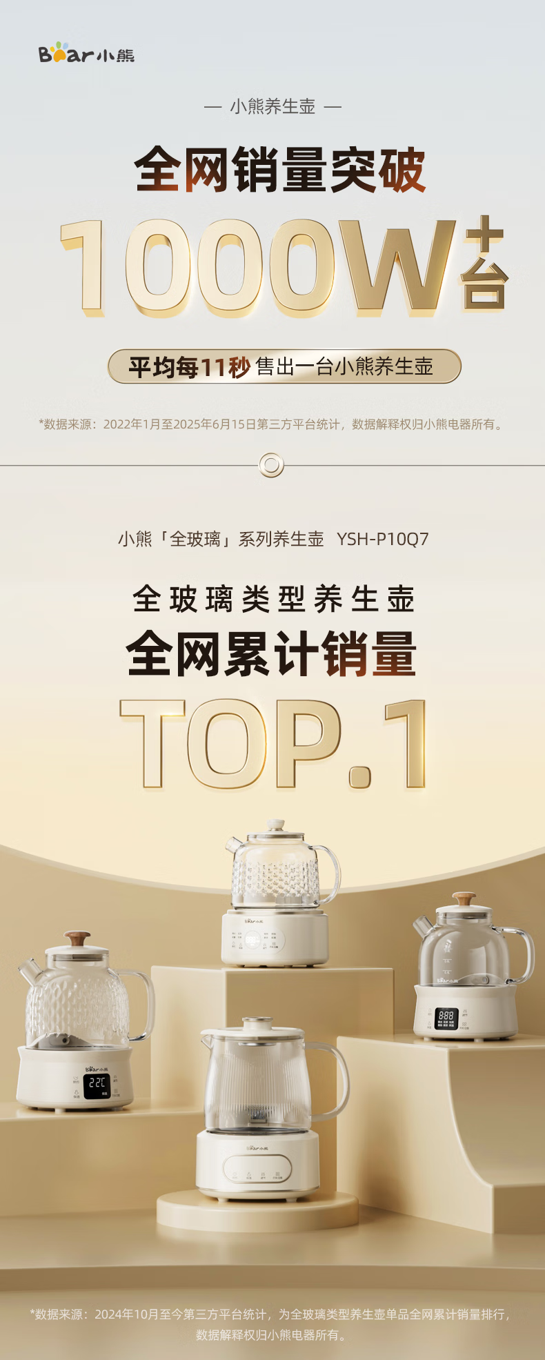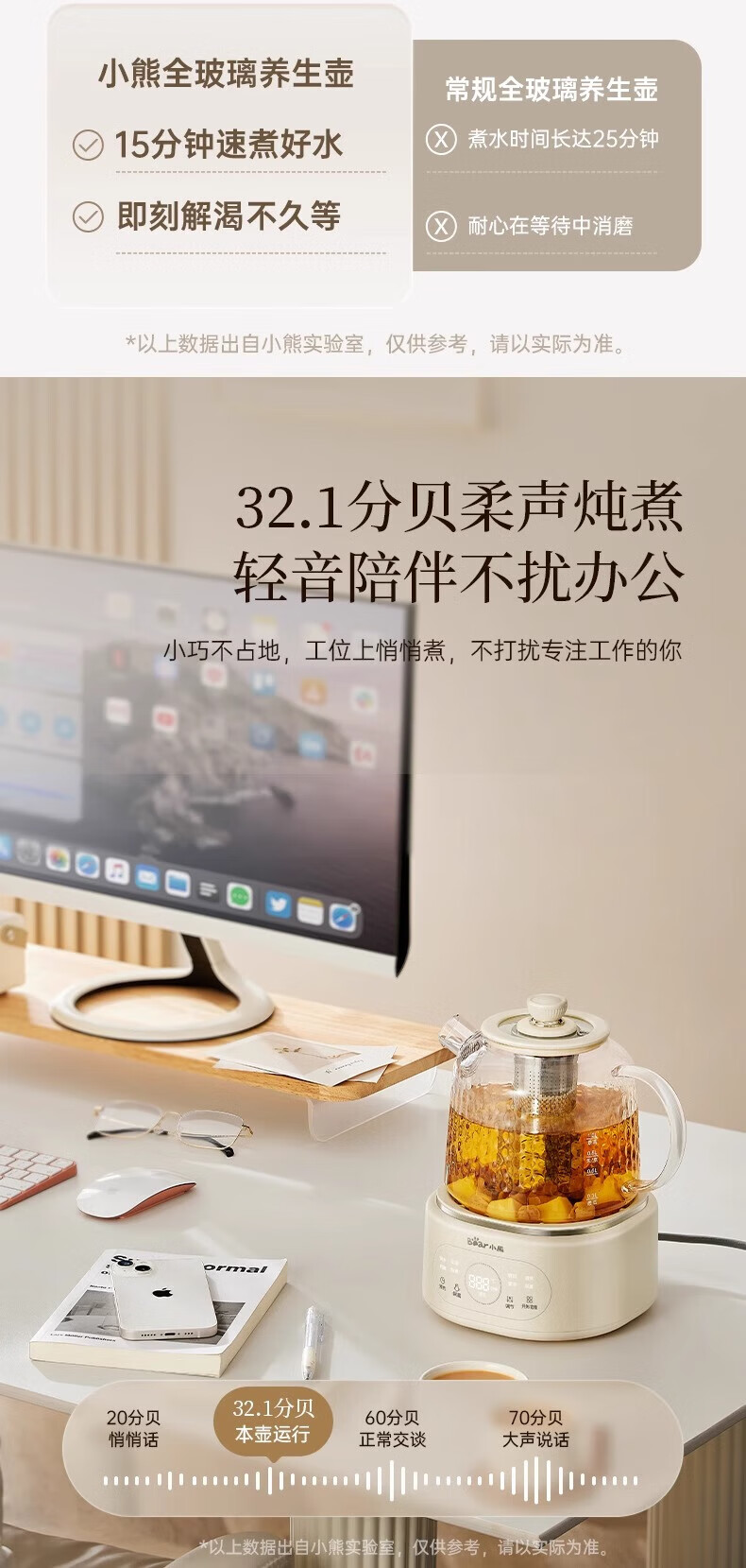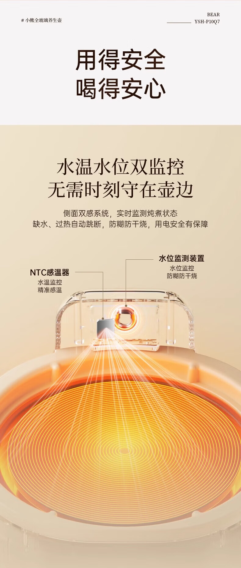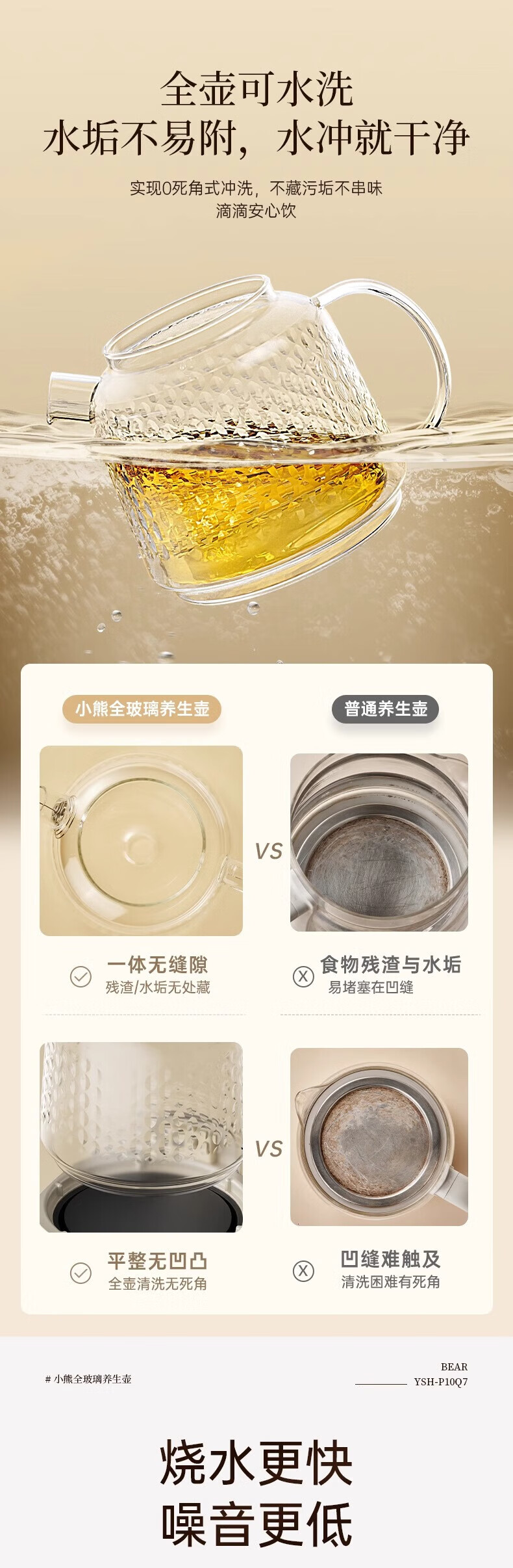 Bear all-glass health pot health cup office multi-function teapot flower teapot 0 metal constant temperature kettle official direct sales YSH-P10Q7 all-glass pot without filter 1L