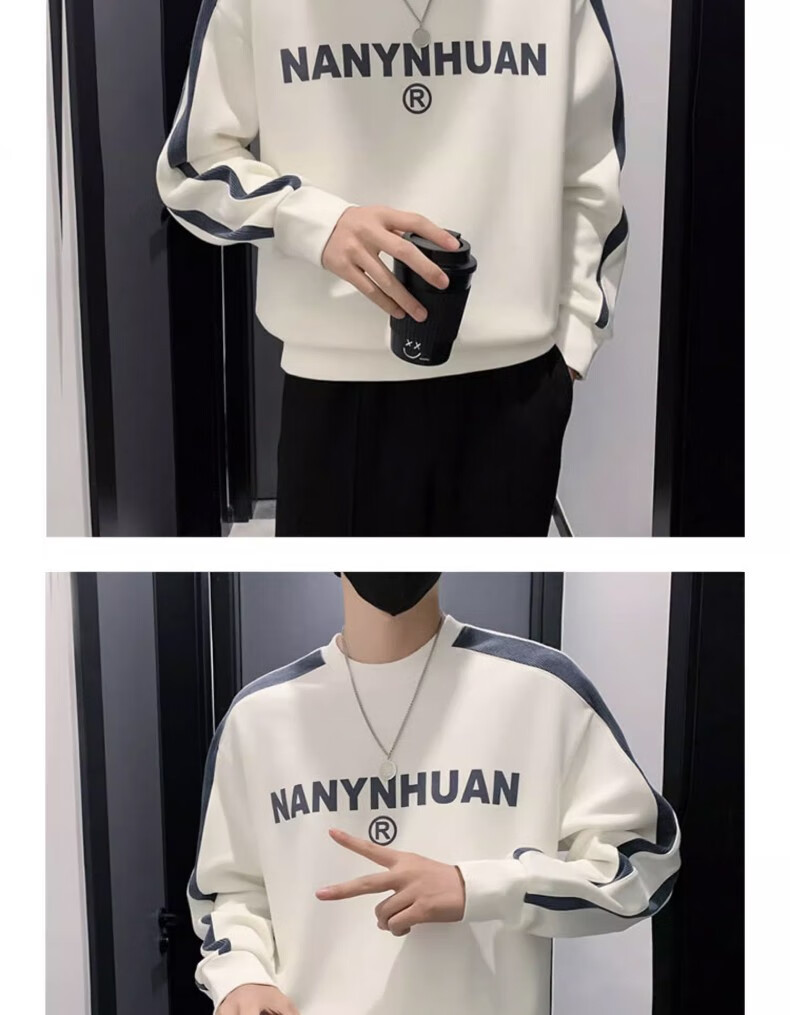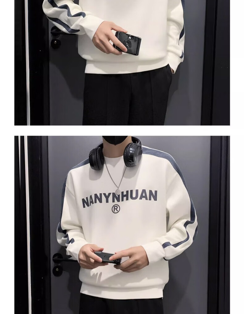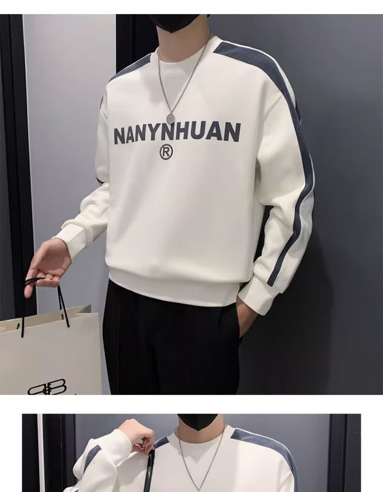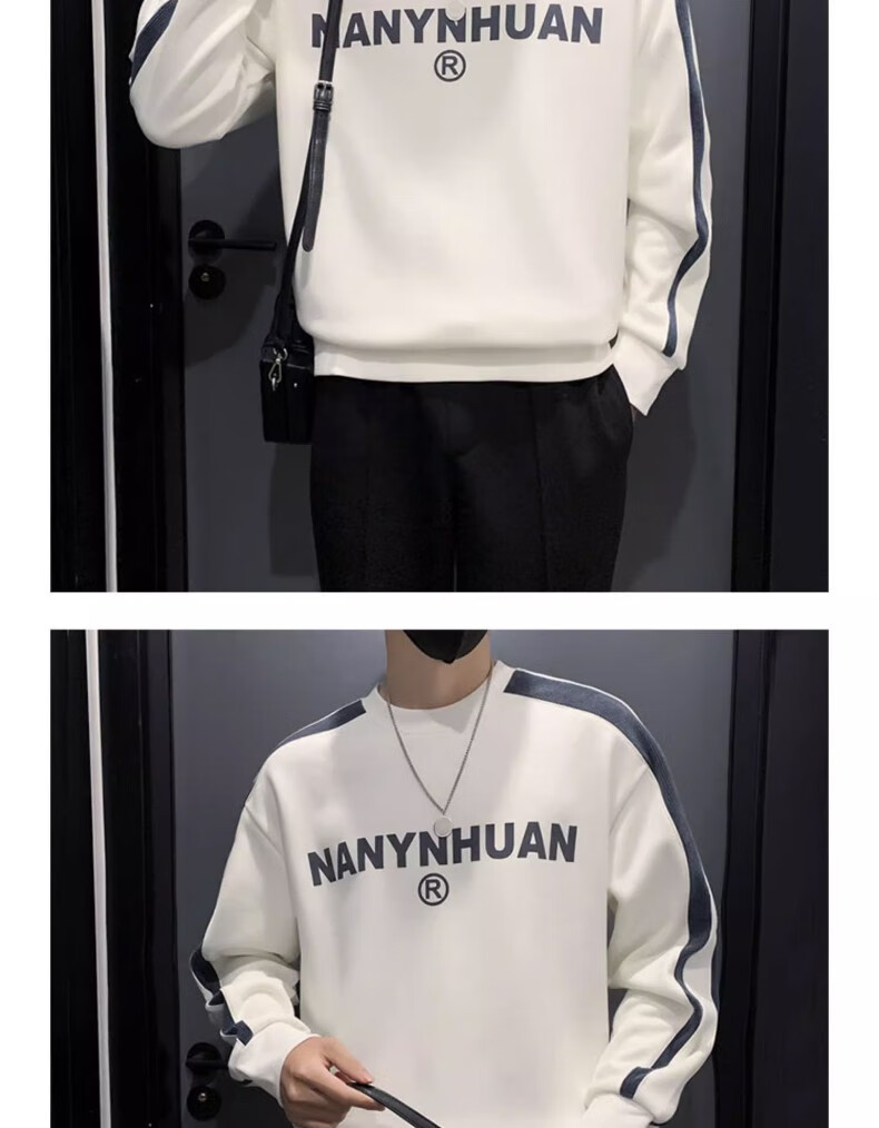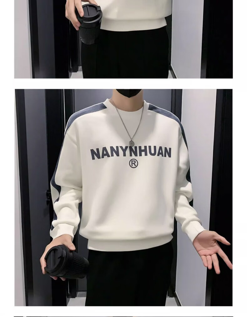 Woodpecker sweatshirt men's 2025 spring and autumn new versatile trendy printed long-sleeved T-shirt men's slim loose bottoming shirt men's white plus velvet XL 120-145Jin Jin equals 0.5 kg