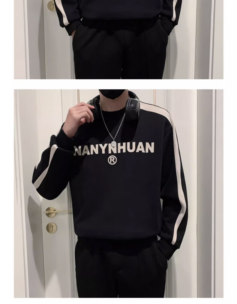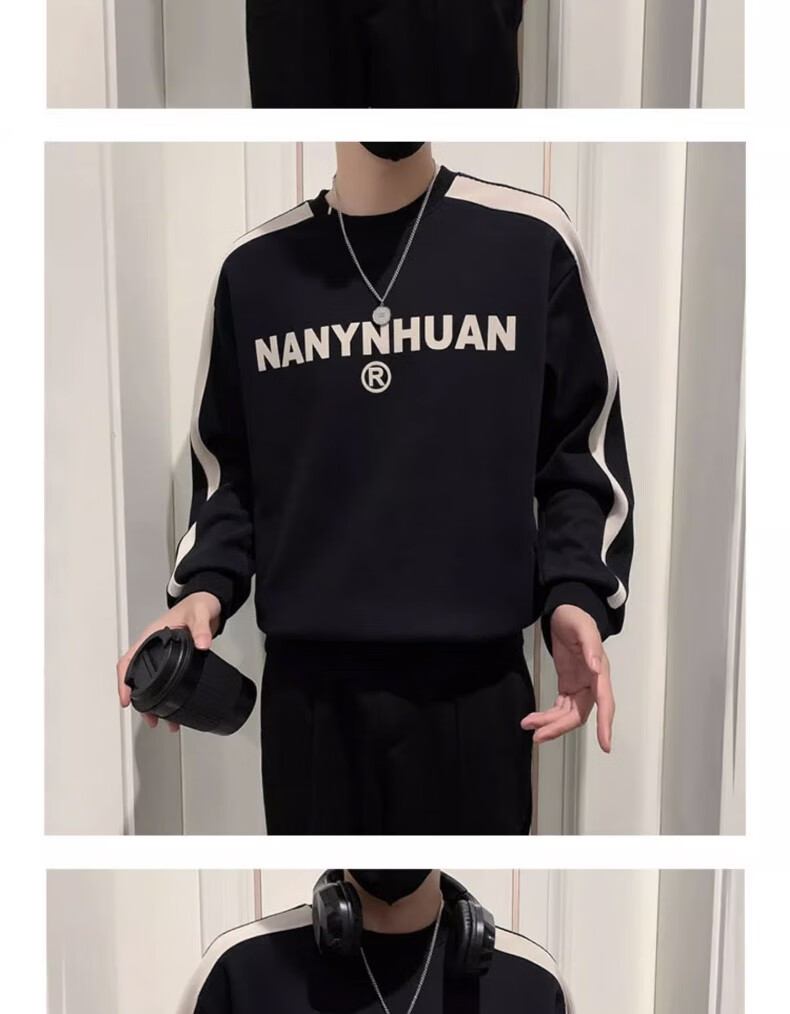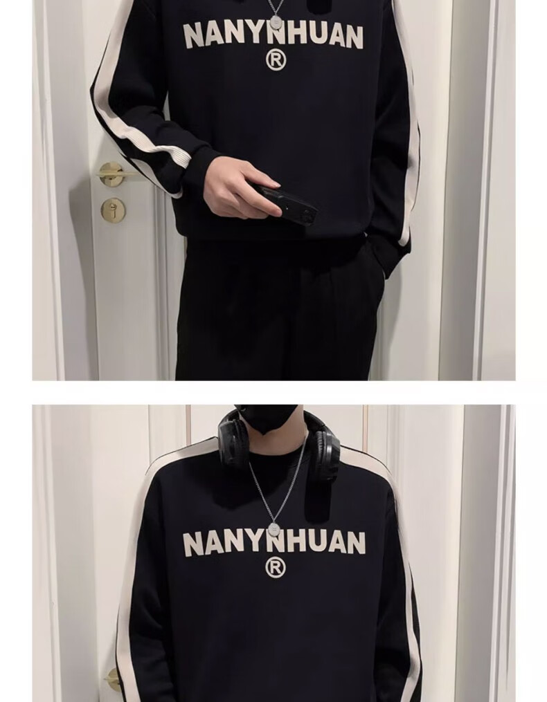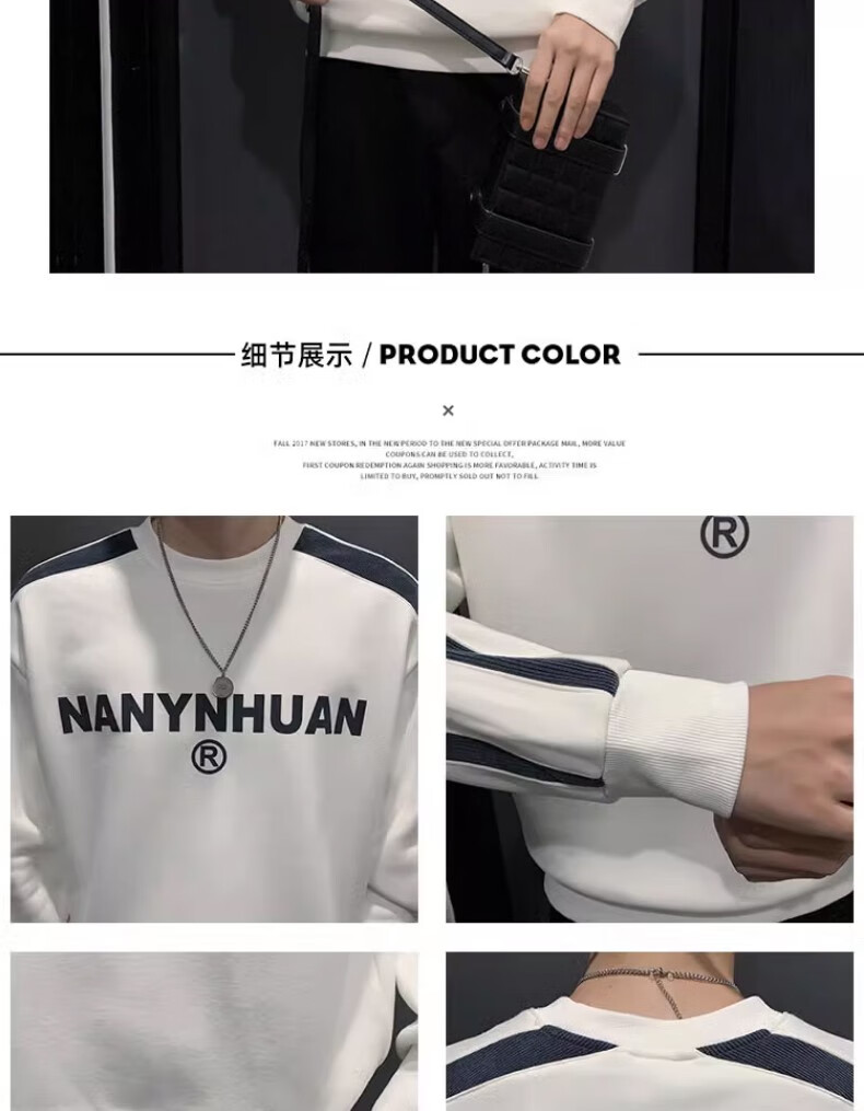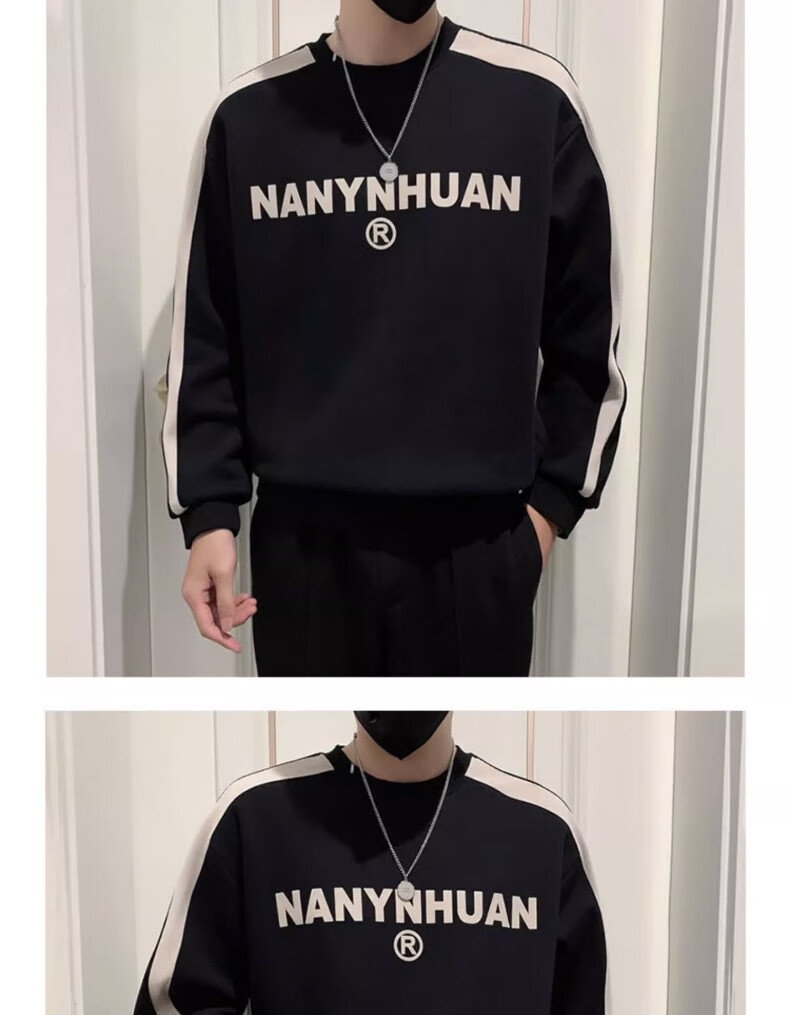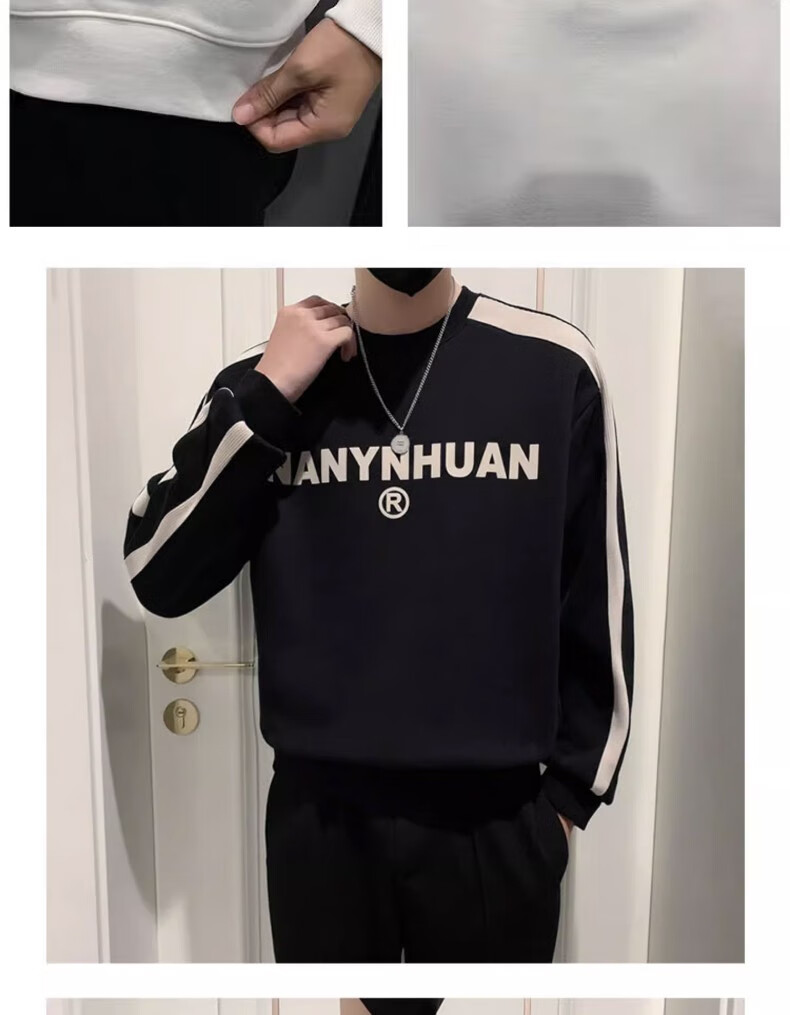 Woodpecker sweatshirt men's 2025 spring and autumn new versatile trendy printed long-sleeved T-shirt men's slim loose bottoming shirt men's white plus velvet XL 120-145Jin Jin equals 0.5 kg