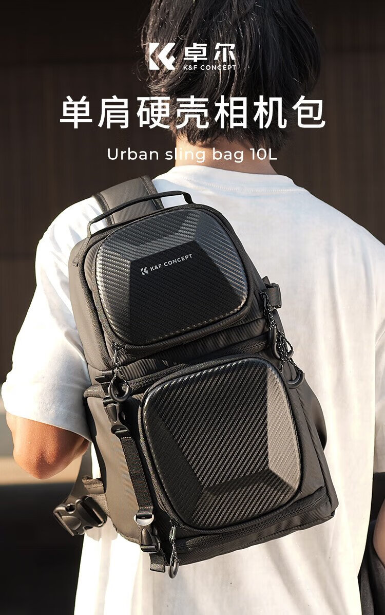 Zhuoer Hard Shell丨New Product Camera Bag Shoulder Crossbody Bag Micro SLR Photography Bag One Machine and Two Lenses Professional Portable Large Capacity Crossbody Photography Shoulder Bag Knight Black
