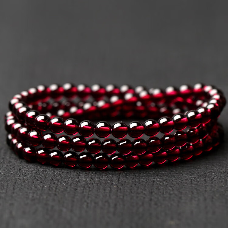 Guran Burgundy Garnet Bracelet Women's Three Circle Collection-Level Loose Bead Bracelet Multiple Circles 56mm Crystal Personalized Versatile 8A Collection Near Vitreous Body (3.5mm Three Circles)