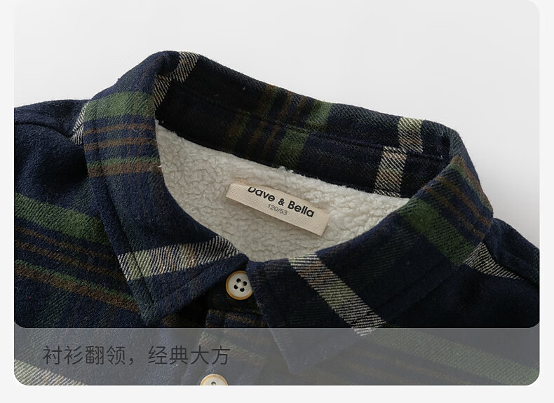 DAVE&BELLA boys' shirts for older children, new winter tops, velvet children's plaid shirts, children's clothes, older children's tops, navy plaid, in stock, 150 cm (recommended height 140-150cm)
