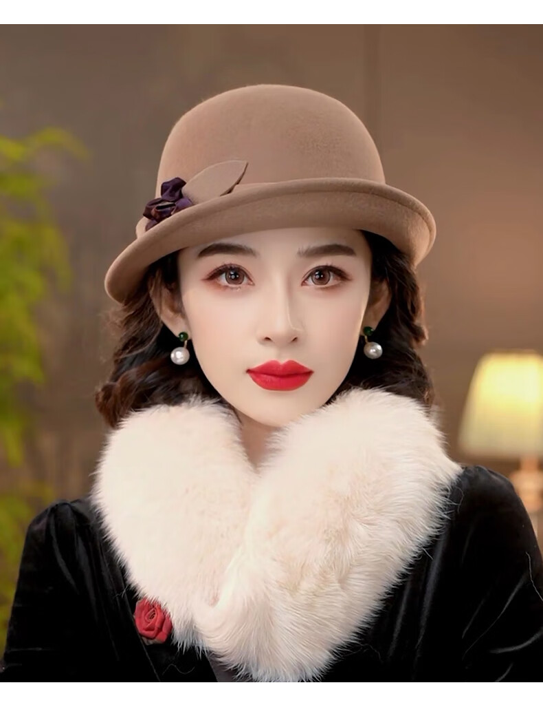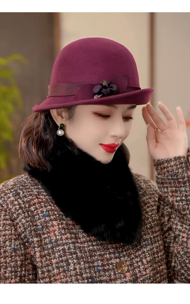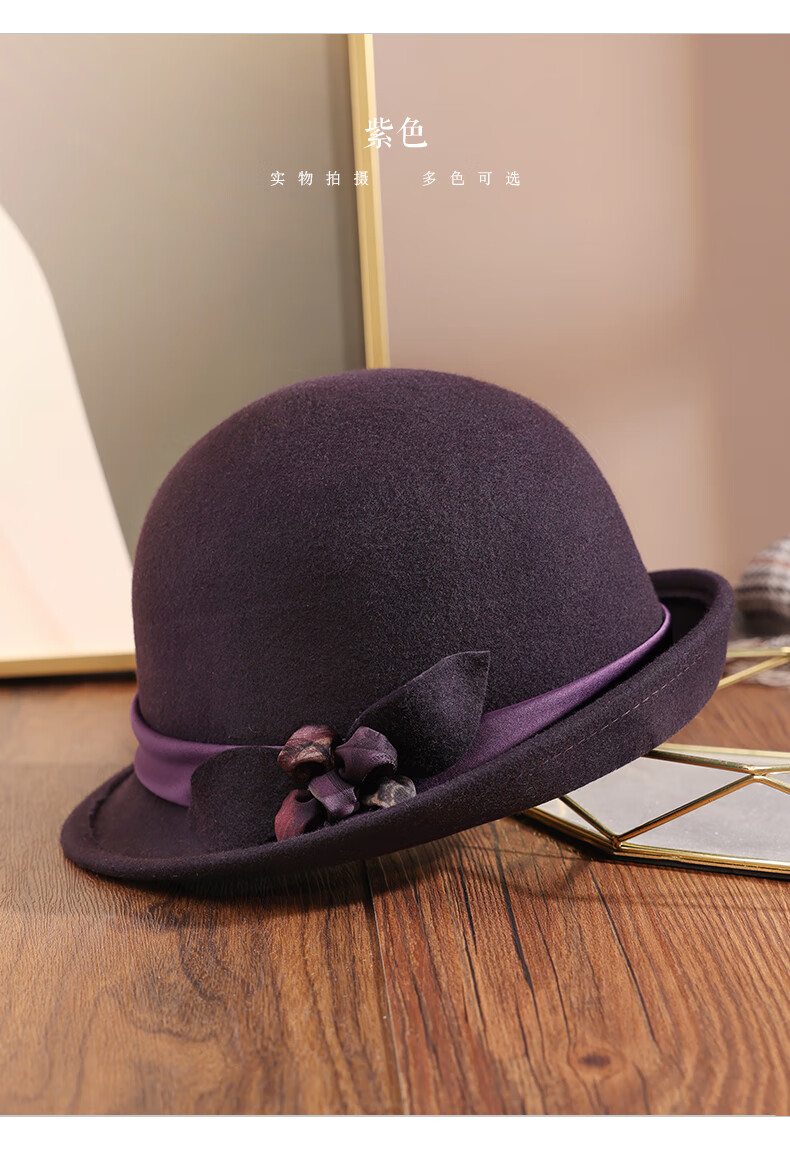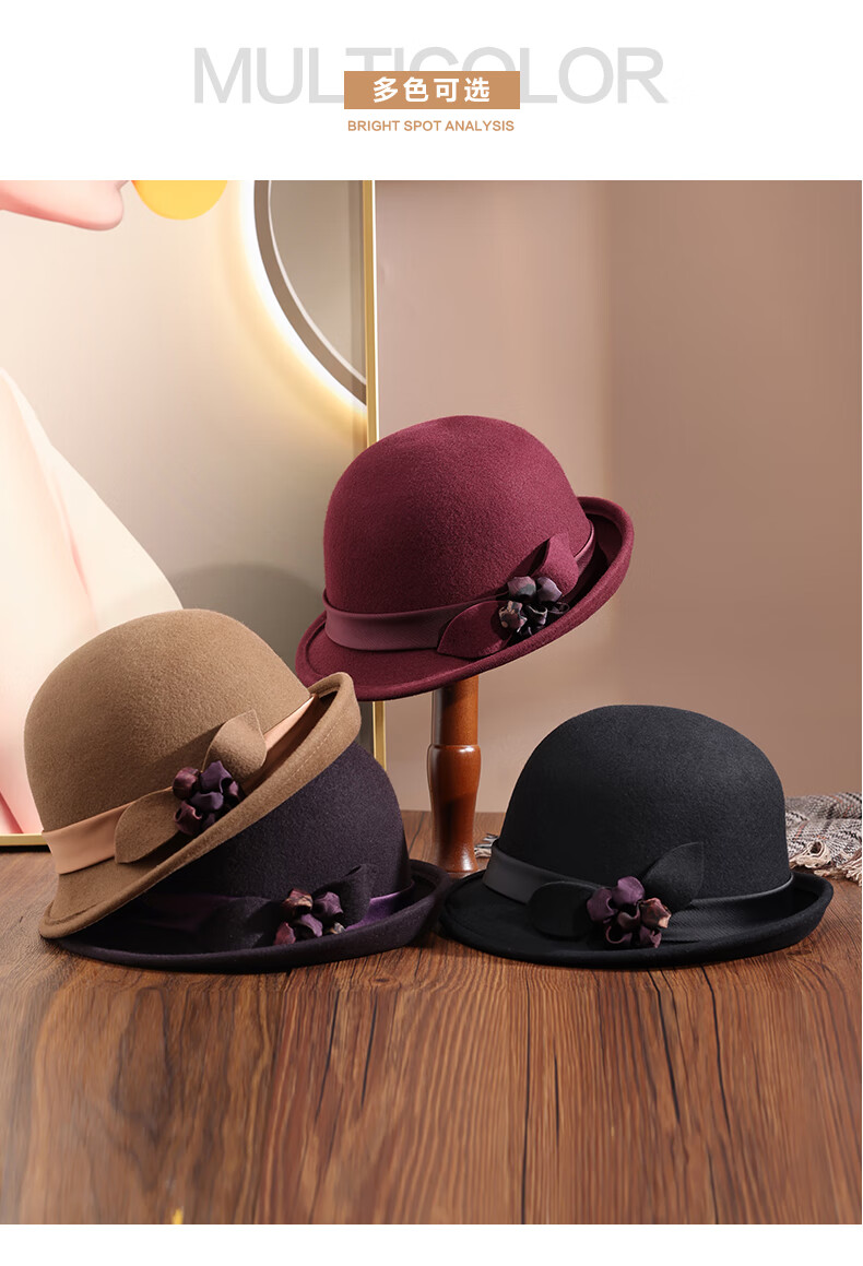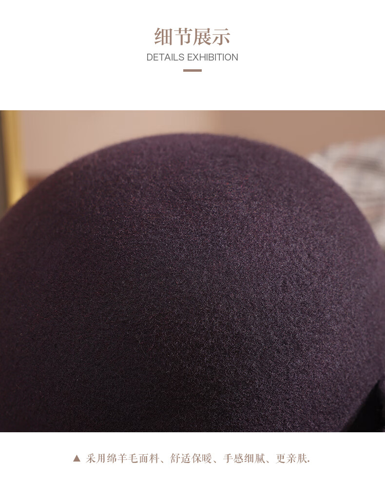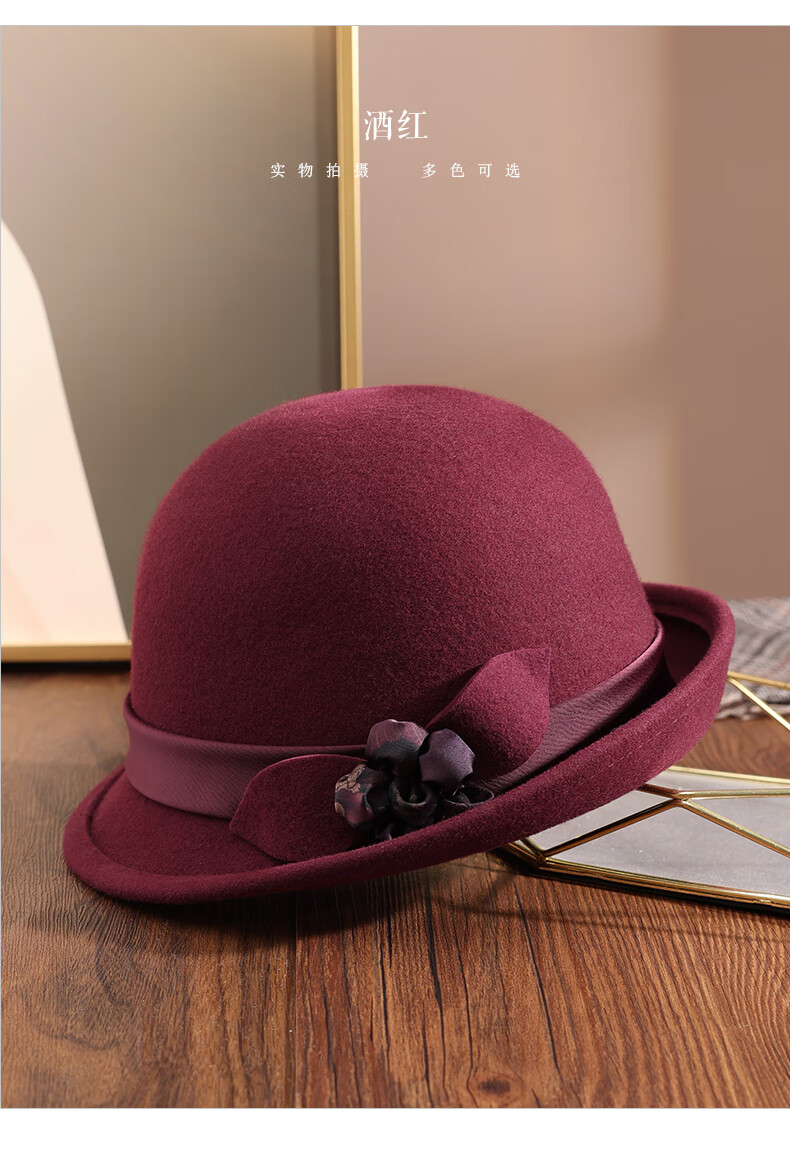 Buta 2024 autumn and winter new style dome shaped top hat woolen rolled edge retro warm fashion beret hat burgundy