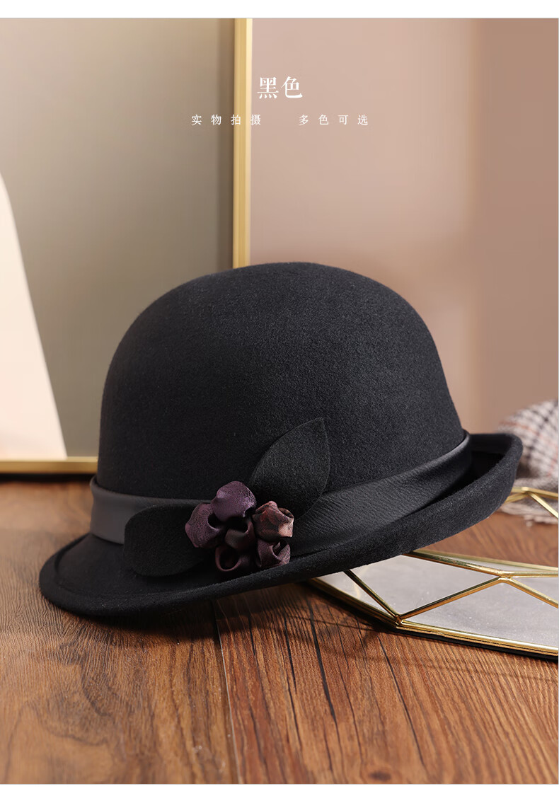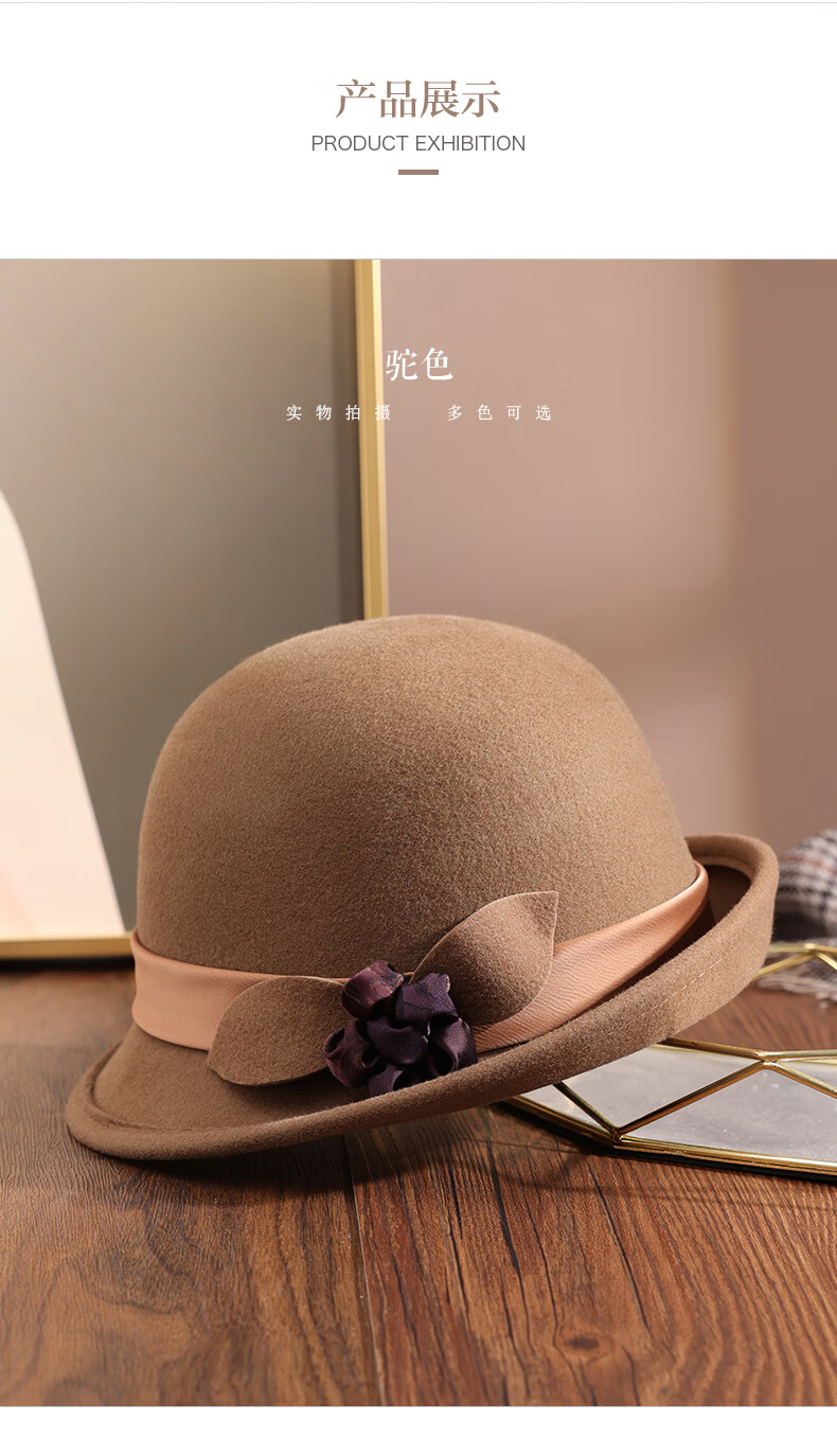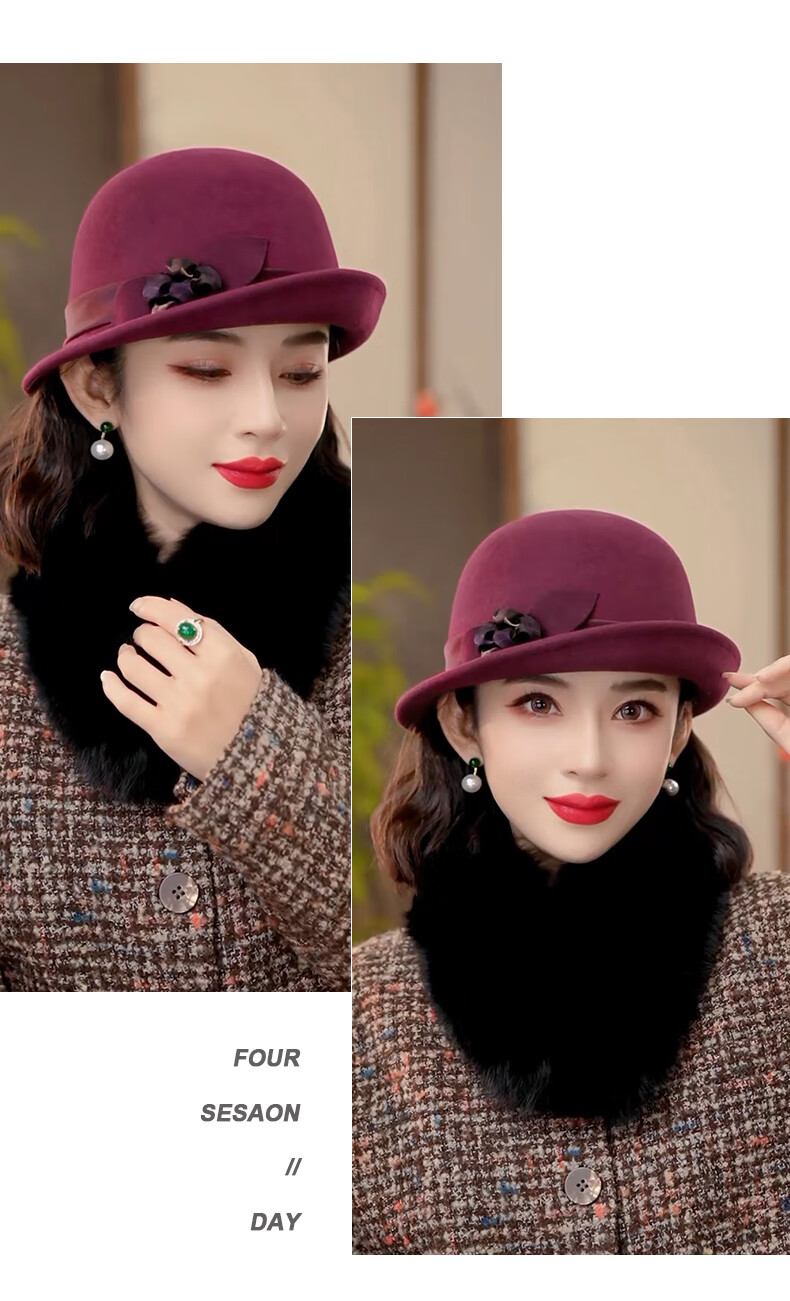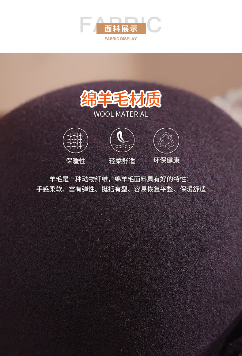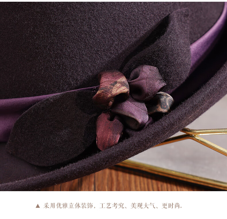 Buta 2024 autumn and winter new style dome shaped top hat woolen rolled edge retro warm fashion beret hat burgundy