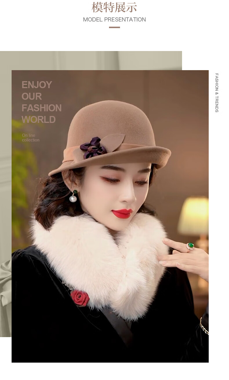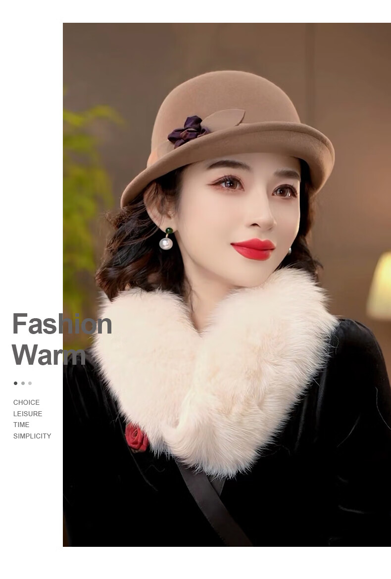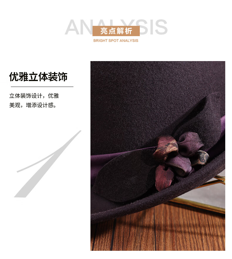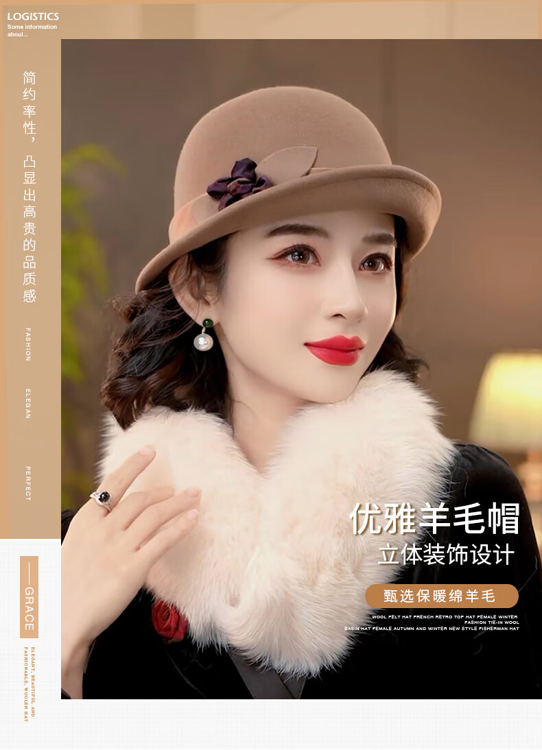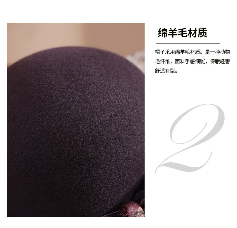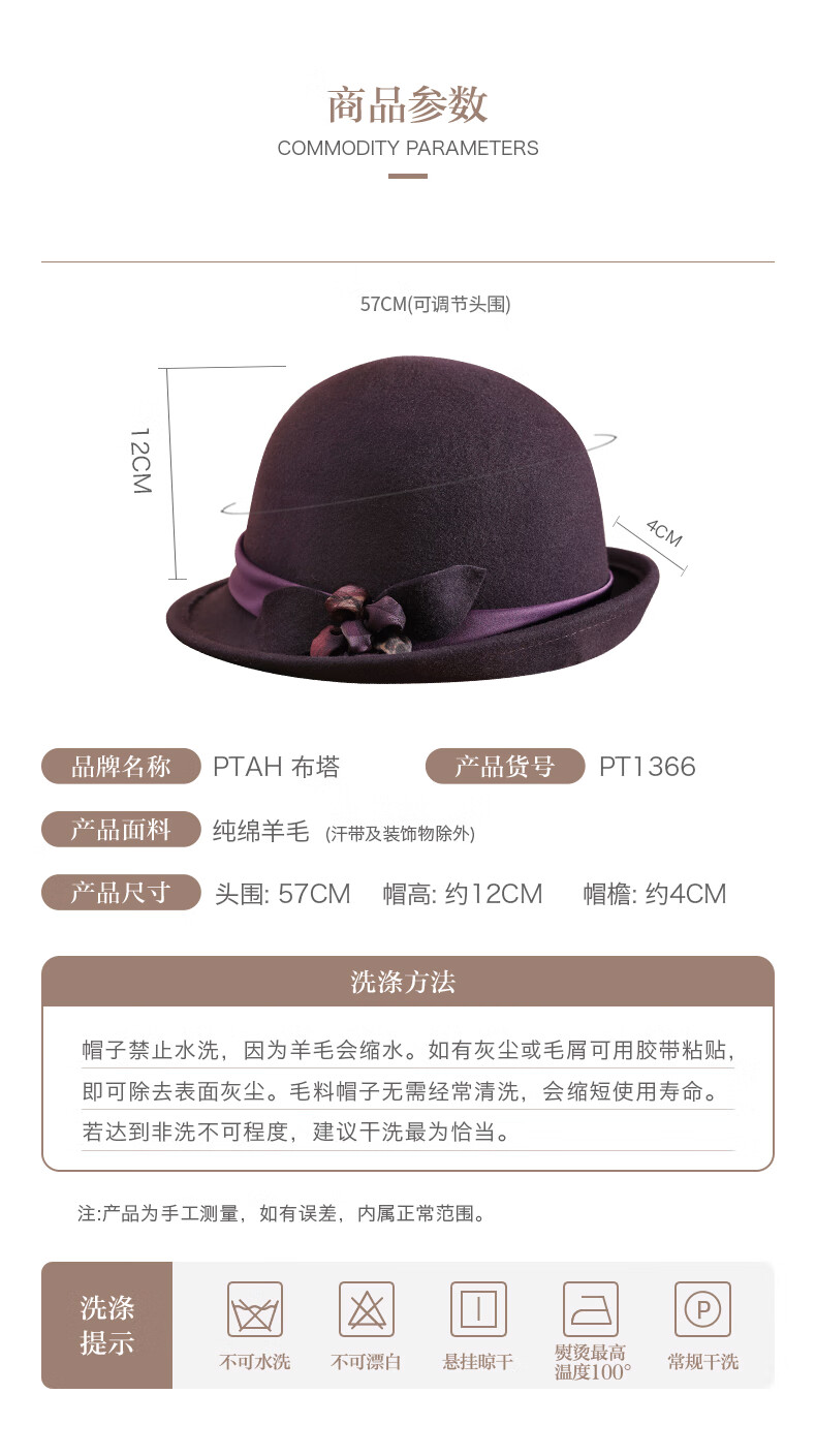 Buta 2024 autumn and winter new style dome shaped top hat woolen rolled edge retro warm fashion beret hat burgundy