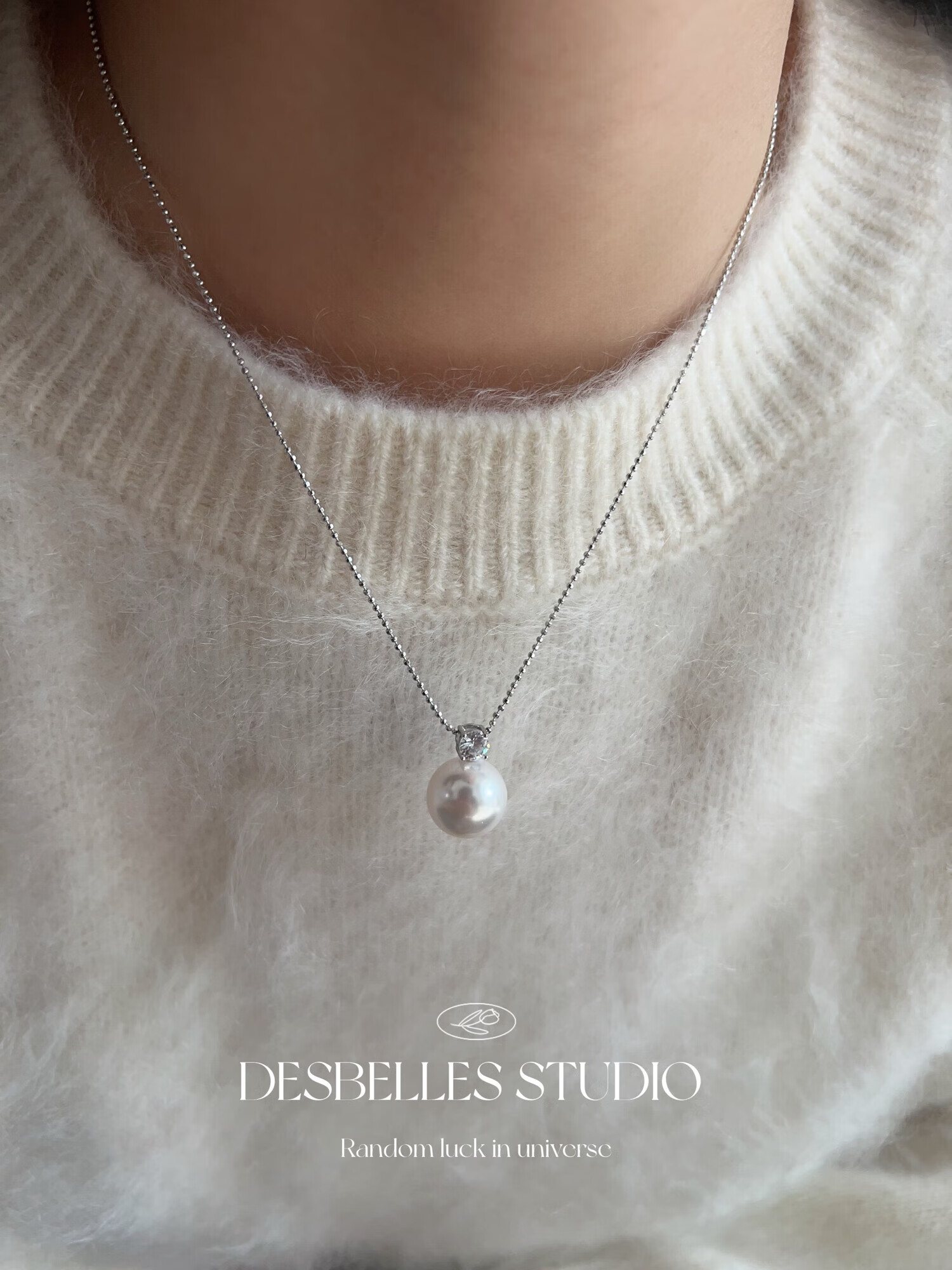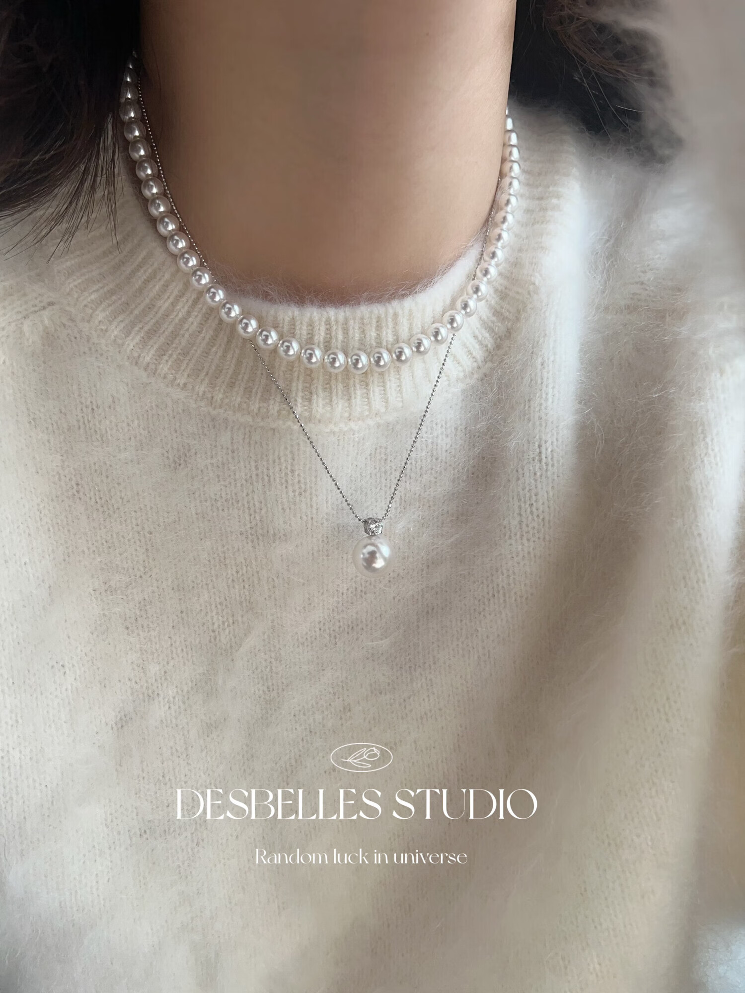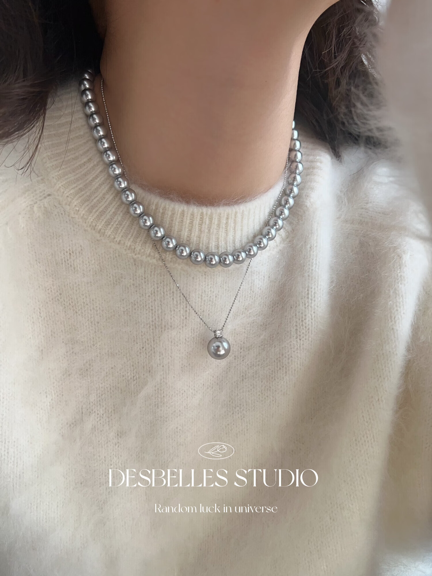 Guran Australian white pearl pendant necklace, classic stacked S925 silver chain, round strong light, French light luxury, exquisite and versatile, Australian white, about 40+5cm long