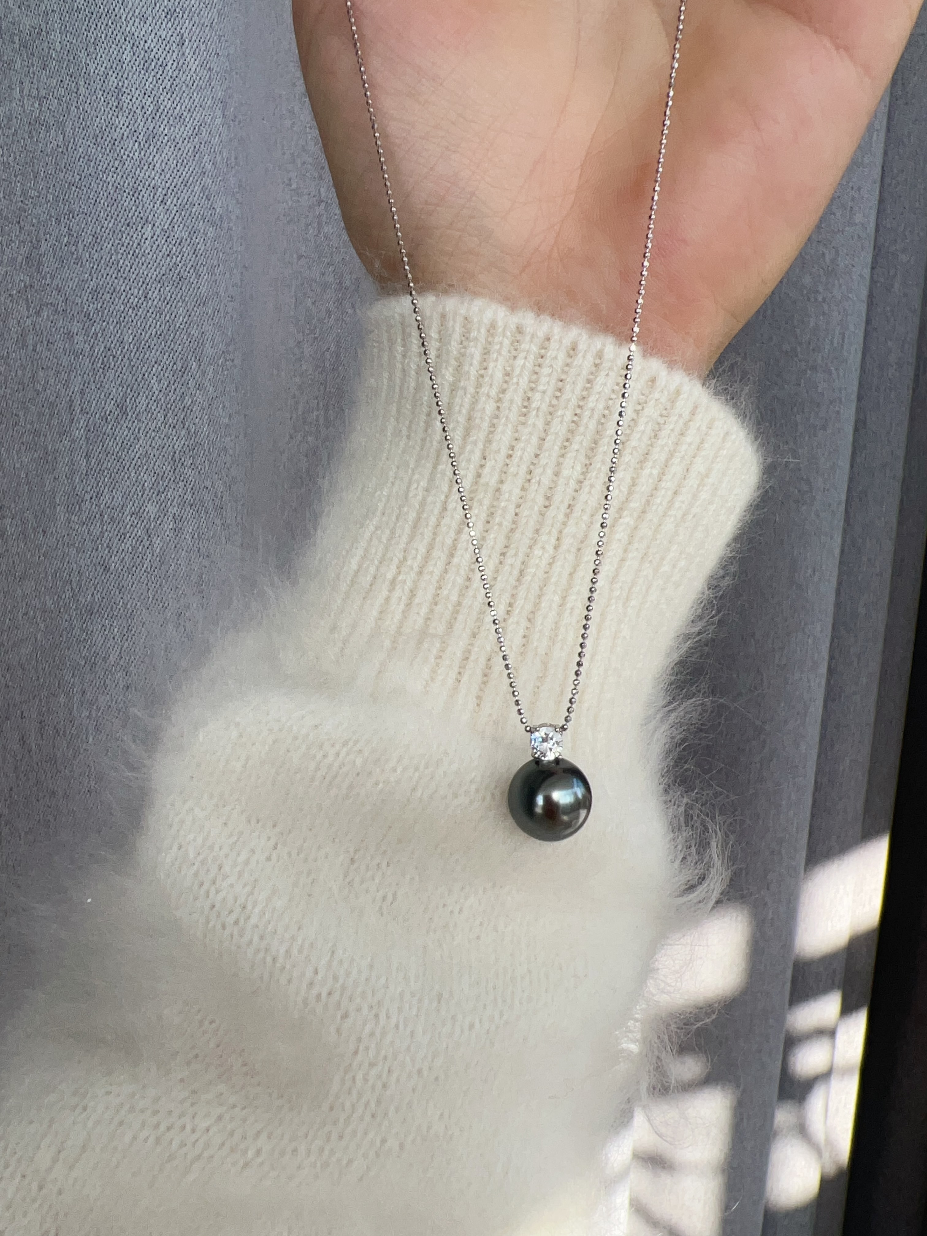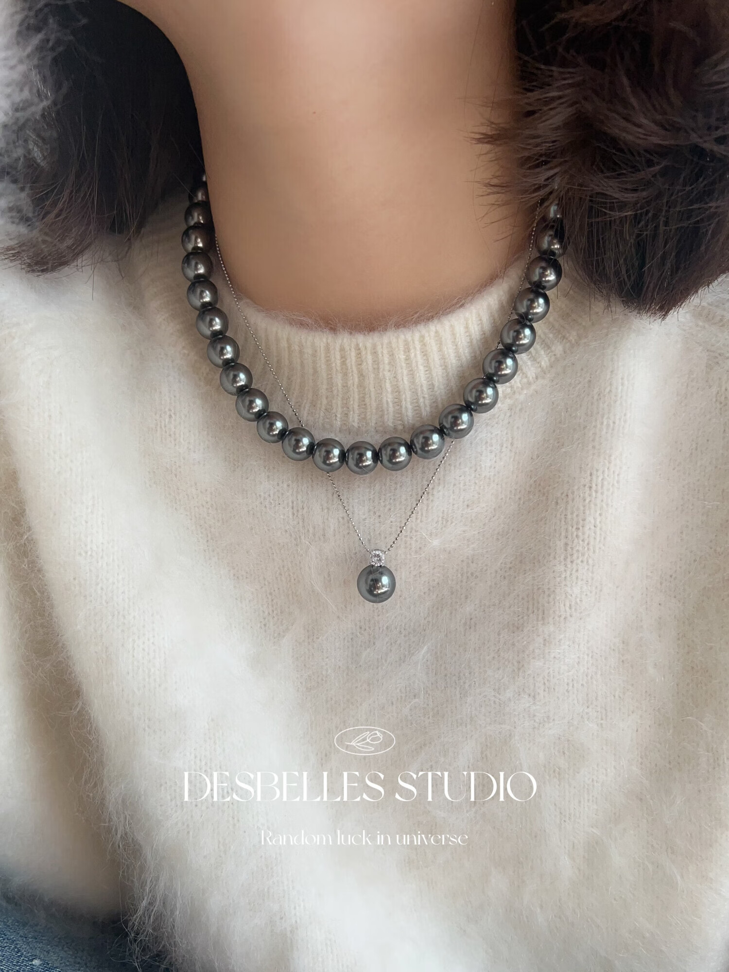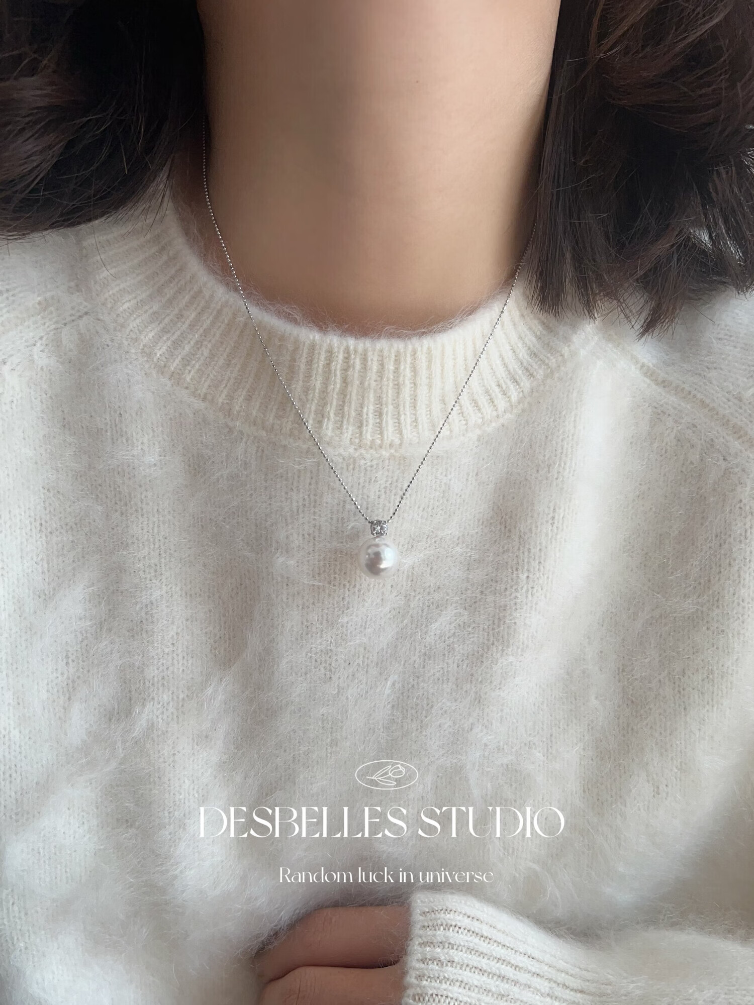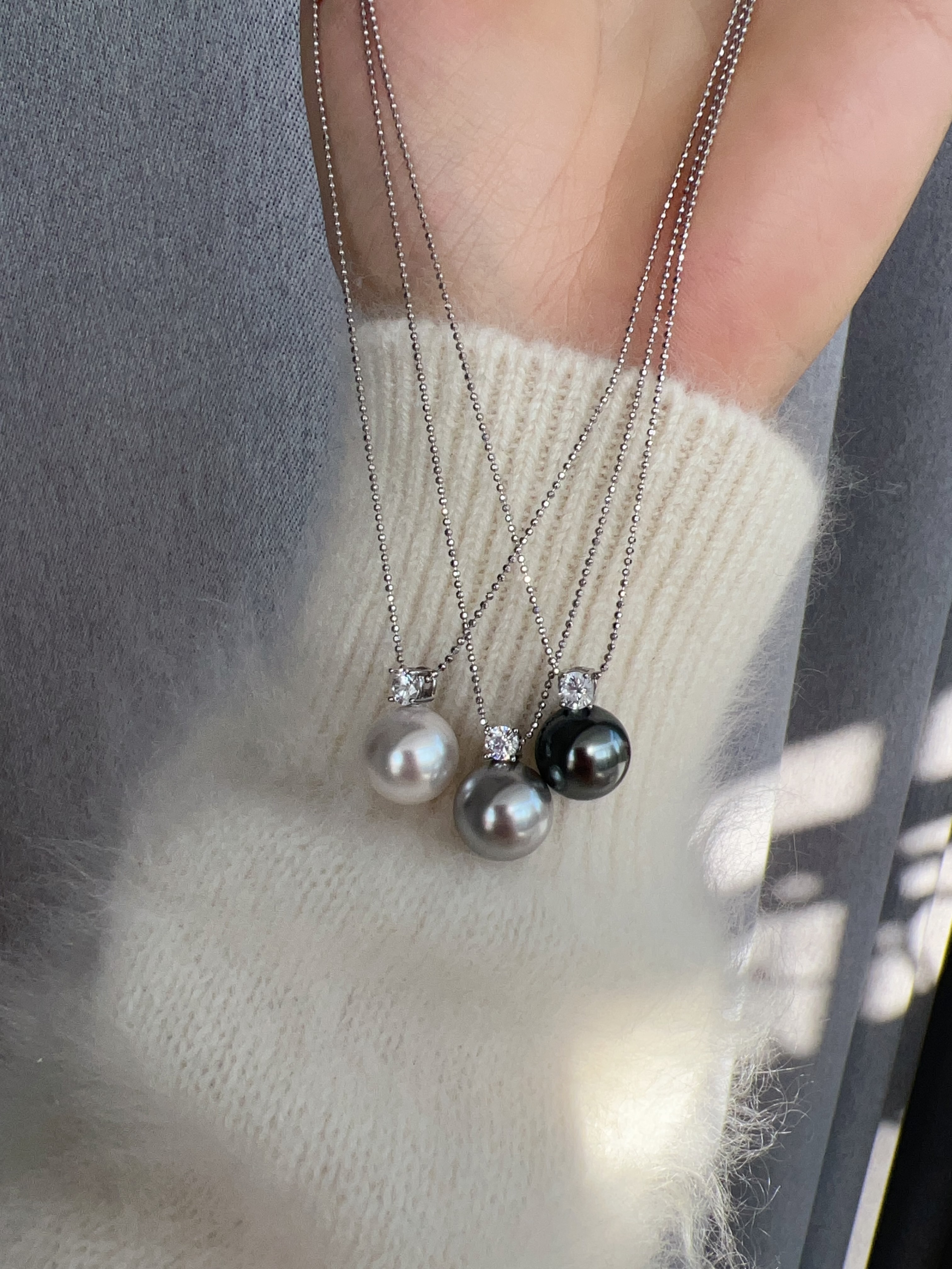 Guran Australian white pearl pendant necklace, classic stacked S925 silver chain, round strong light, French light luxury, exquisite and versatile, Australian white, about 40+5cm long