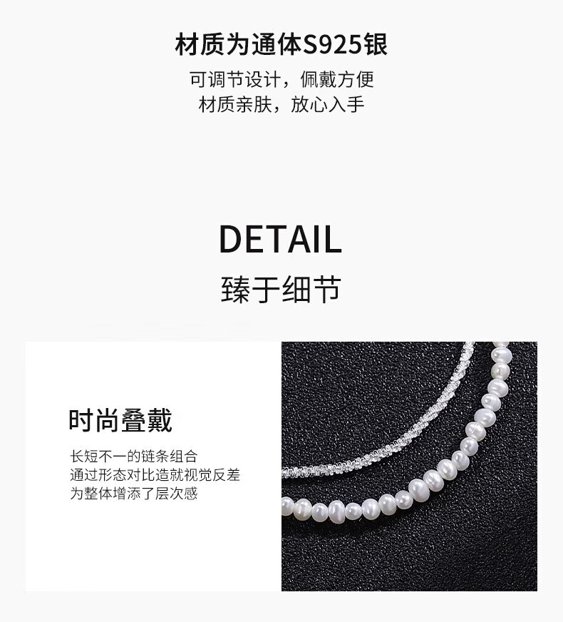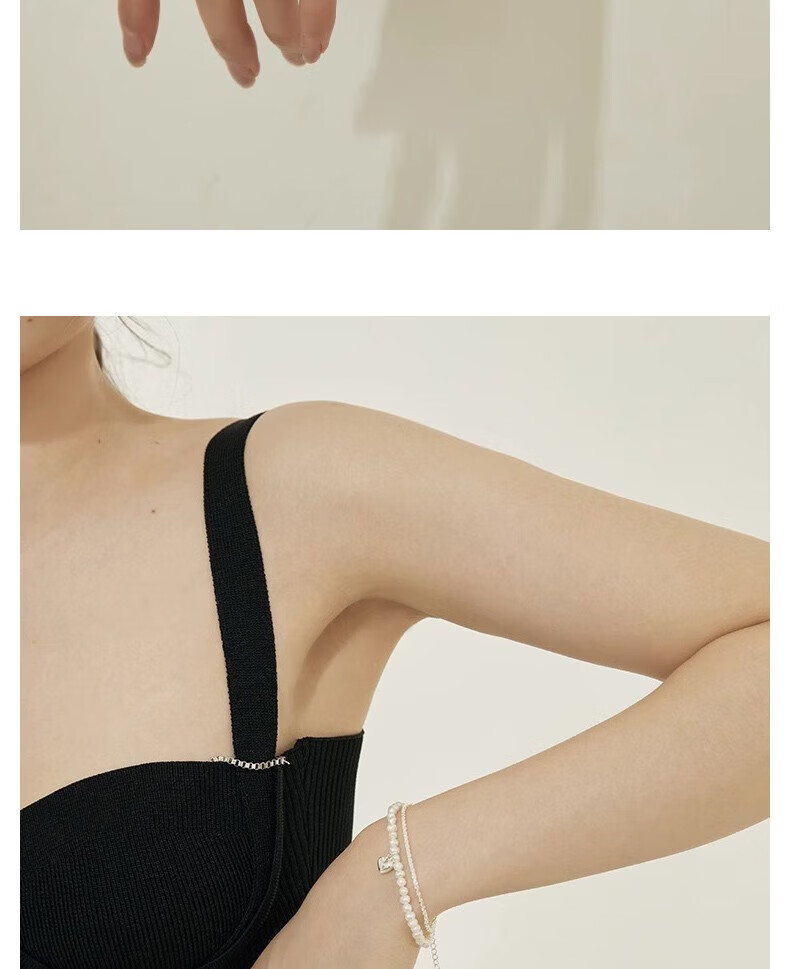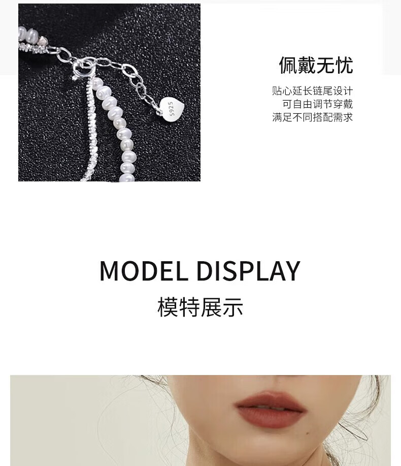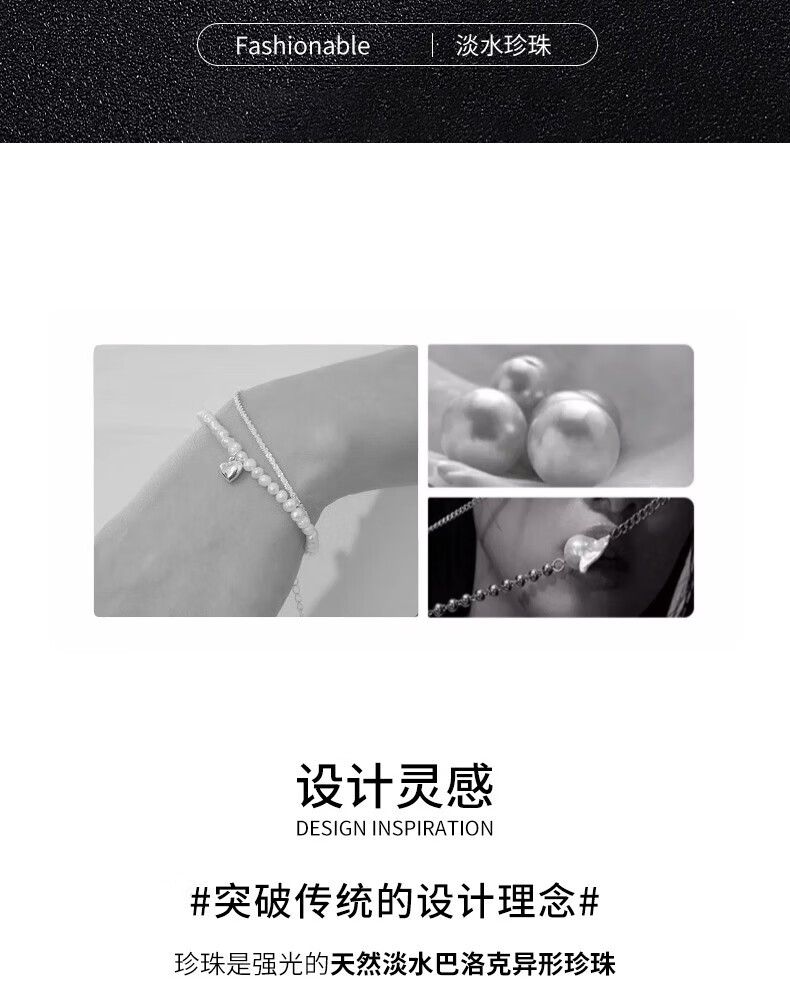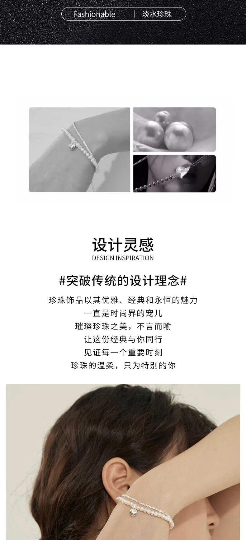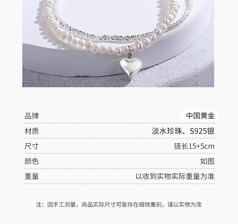 CHINA GOLD Broken Silver Pearl Bracelet Women's Natural Sterling Silver Bracelet Birthday Gift for Girlfriend and Wife Wedding Anniversary Small Heart Double-Layer Bracelet Brand Gift Box