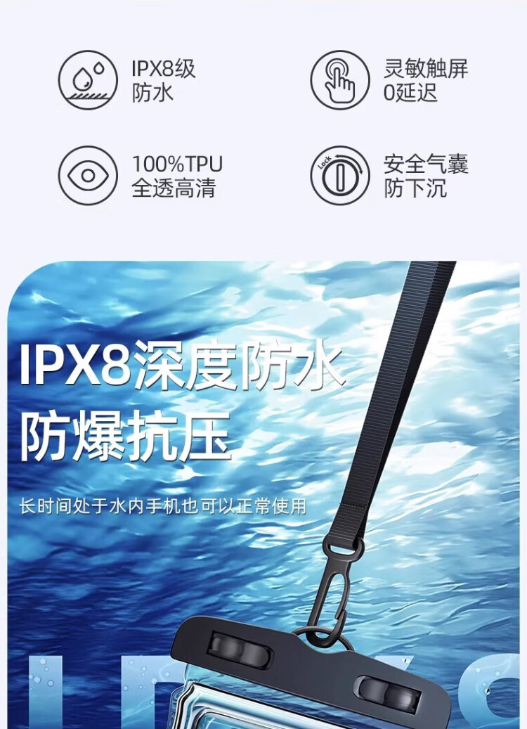 OLPAY mobile phone waterproof bag, touch screen swimming arm strap, diving cover, neck rope, sealed transparent storage bag, water rafting equipment, arm arm cover, rafting, deep diving, touch screen swimming, upgraded black (arm strap with lanyard) IP8X waterproof - touch control