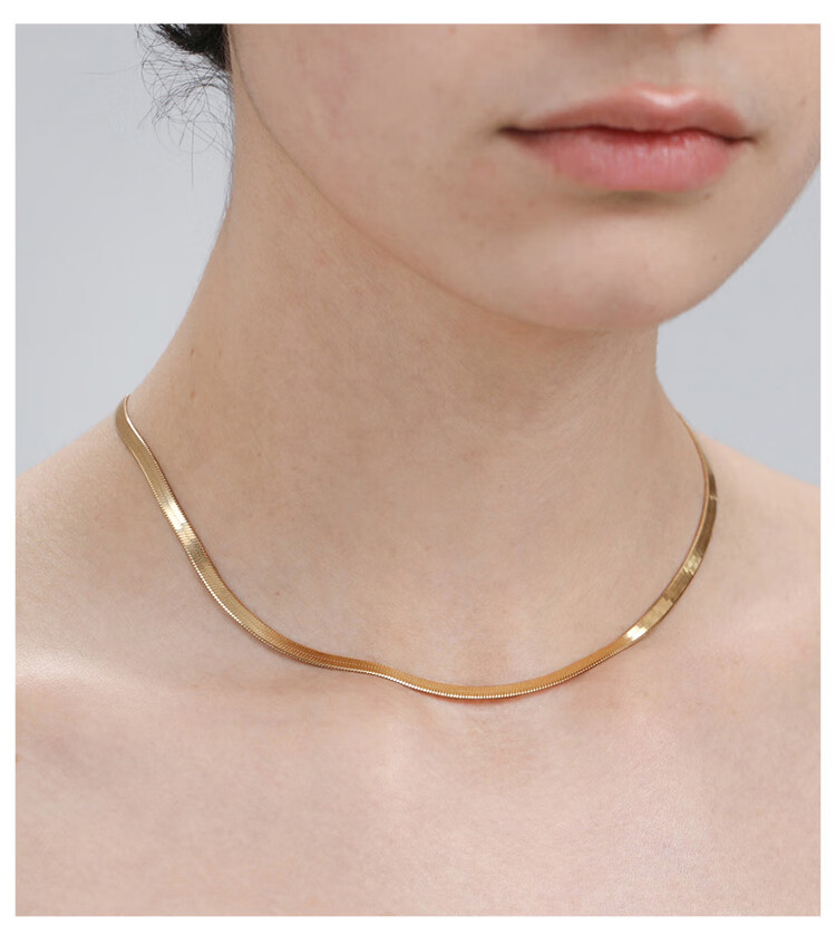 Fat Donglai's same style 18k gold necklace snake bone chain Qin Lan's same style JESHORE Italian blade gold-plated snake bone necklace gold blade snake bone chain length 35+10cm