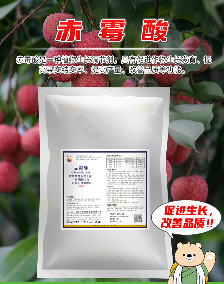 Qianjiang 40% gibberellic acid citrus fruit tree, loquat, lychee and longan tree to improve seed setting rate and quality growth regulator 1000g