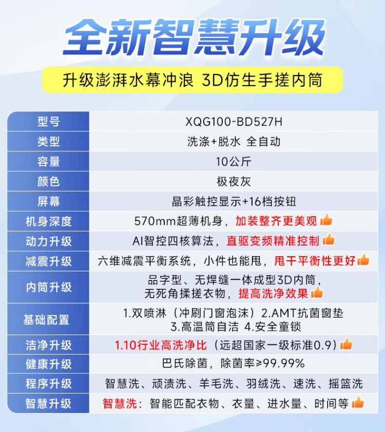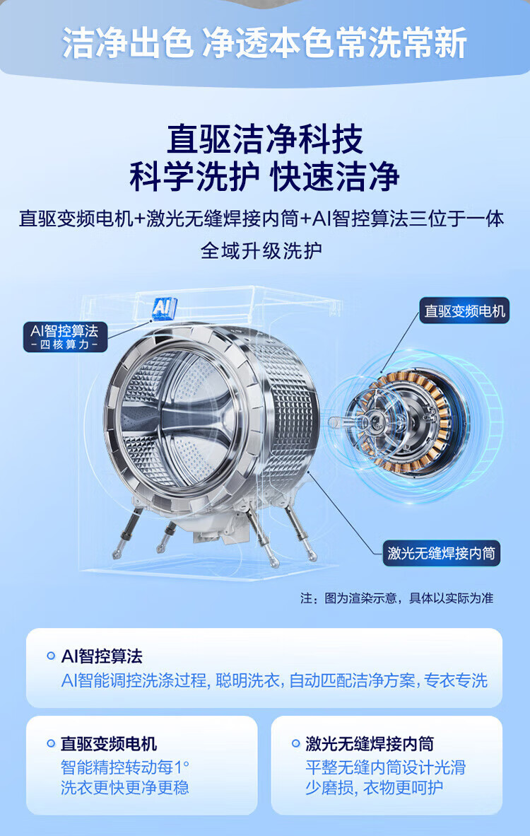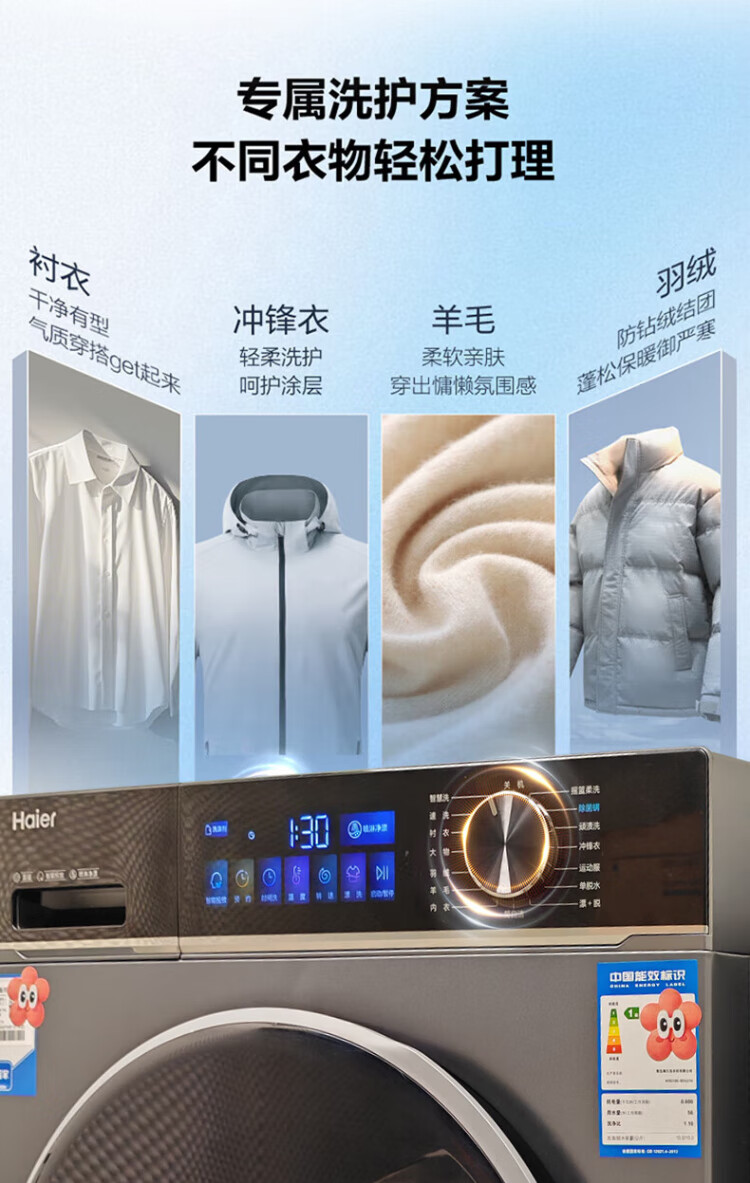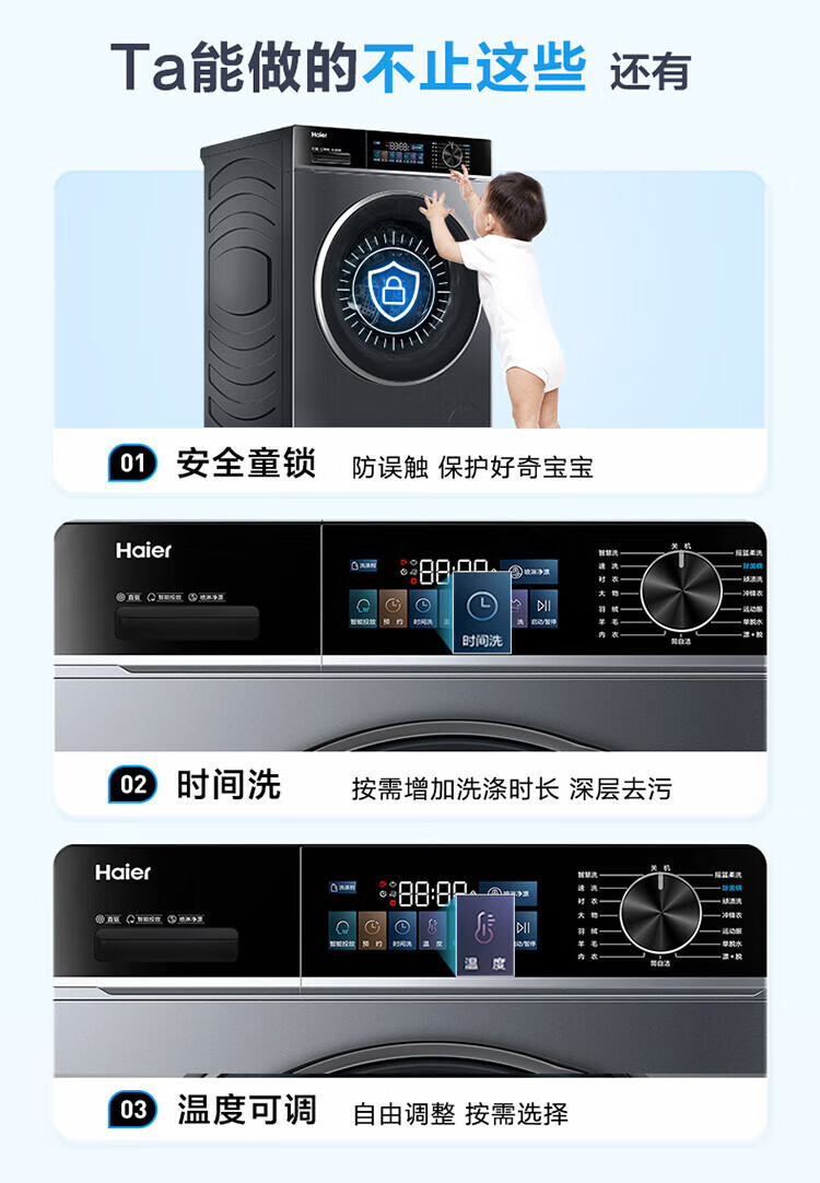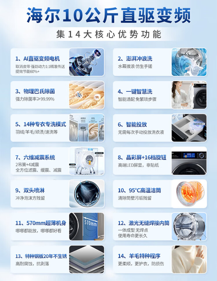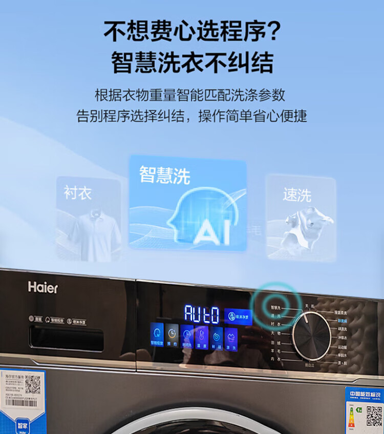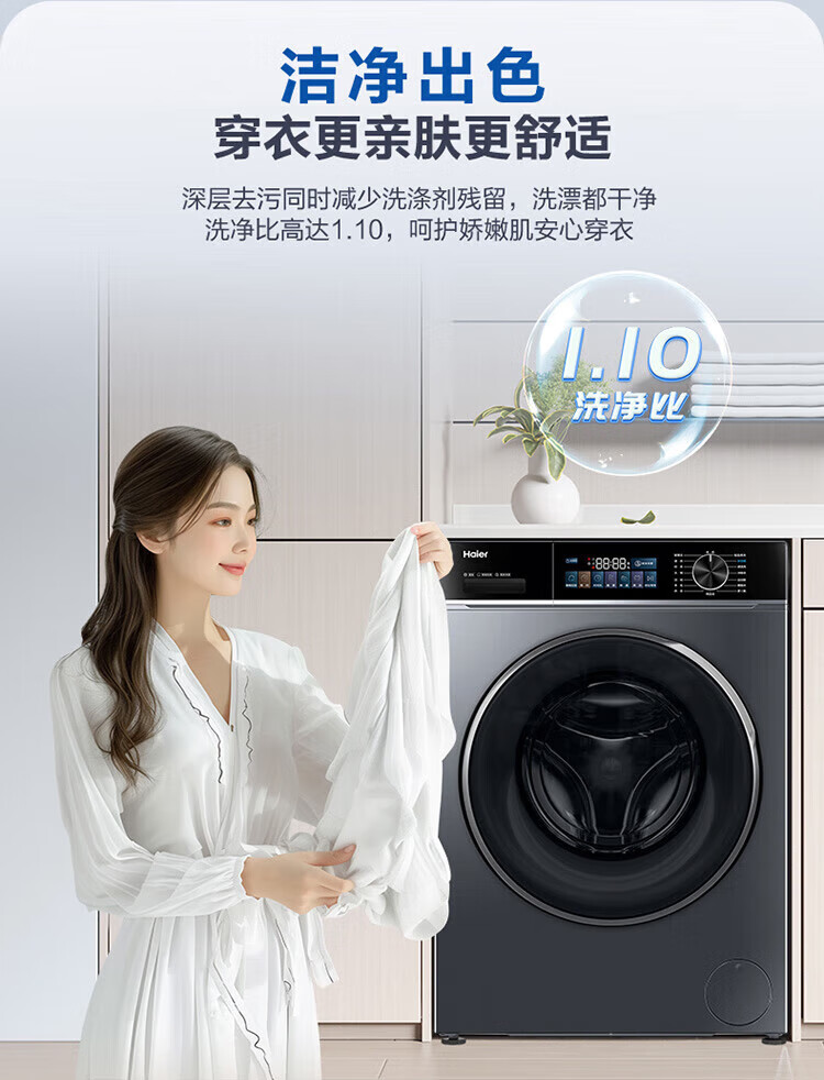 Haier 2025 direct drive variable frequency 10kg fully automatic smart drum washing machine for home ultra-thin embedded underwear baby first-level energy consumption flagship store trade-in state subsidy 10kg direct drive + AI smart washing + Surfing + sterilization + smart investment