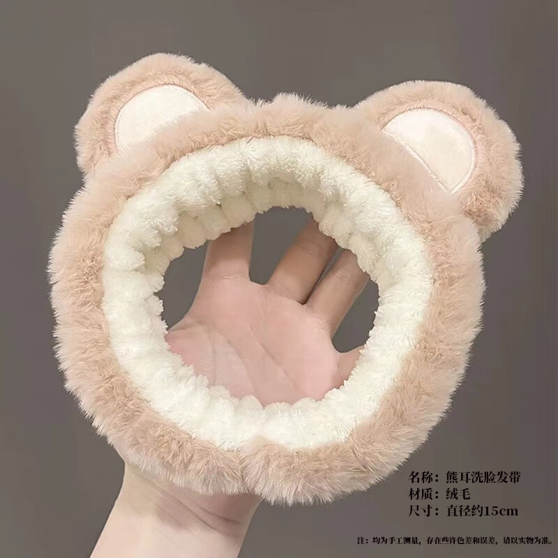 Peiliang Bear Ear Face Wash Headband Headband Women's Mask Special Headband 2025 New Headwear Winter Cute Headband Bear Ear Headband Coffee Color