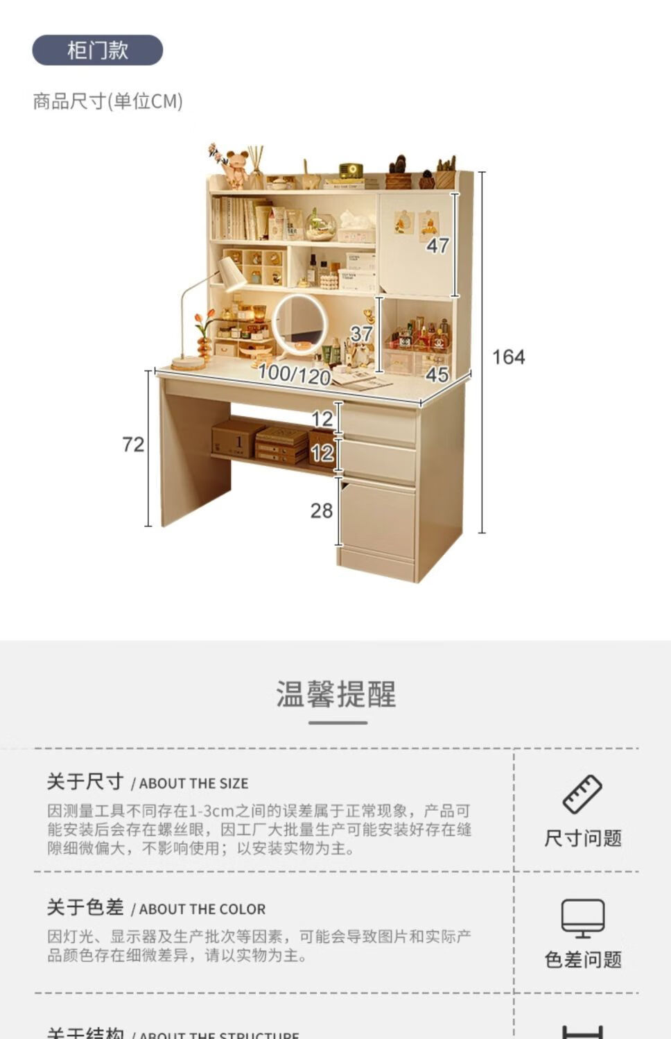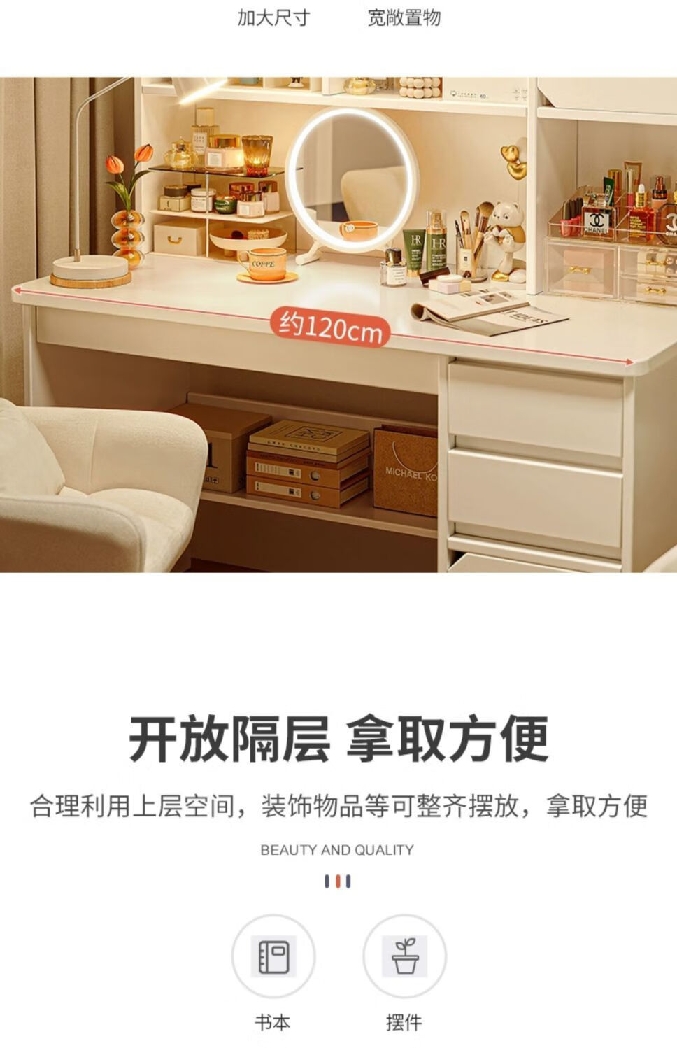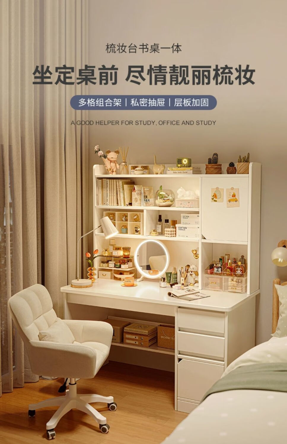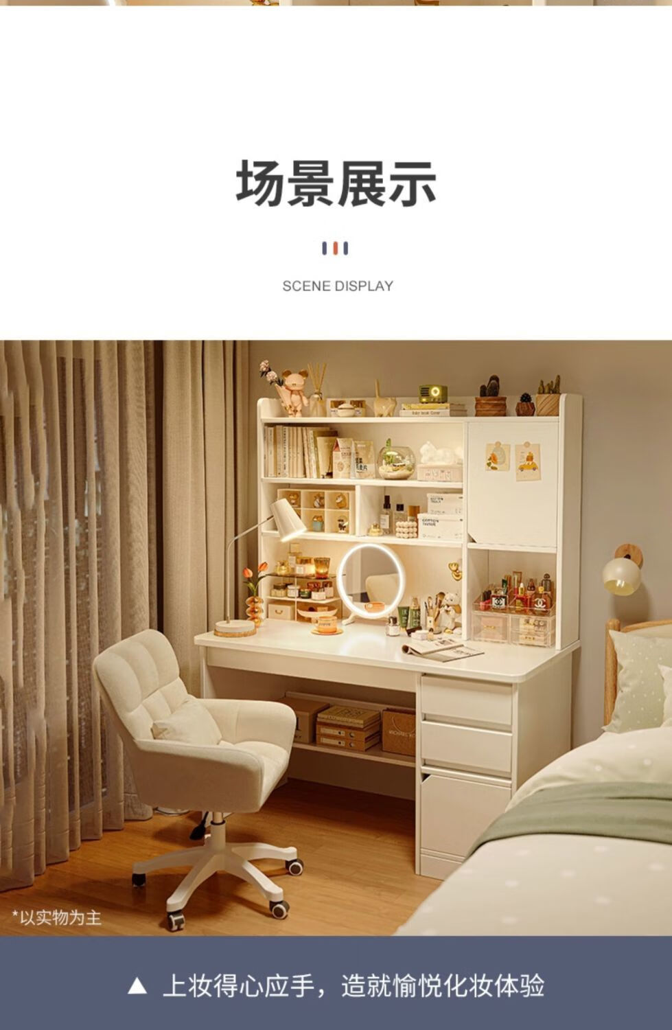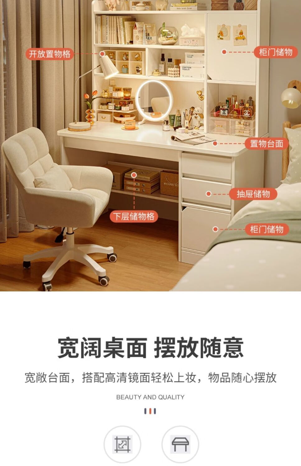 Bedici Computer Desk Dressing Table Integrated Bedroom Simple Modern Desk Dressing Table Two-in-One Dressing Cabinet Mirror Bedside New Classic Style White 100cm Wide Desktop Randomly Placed