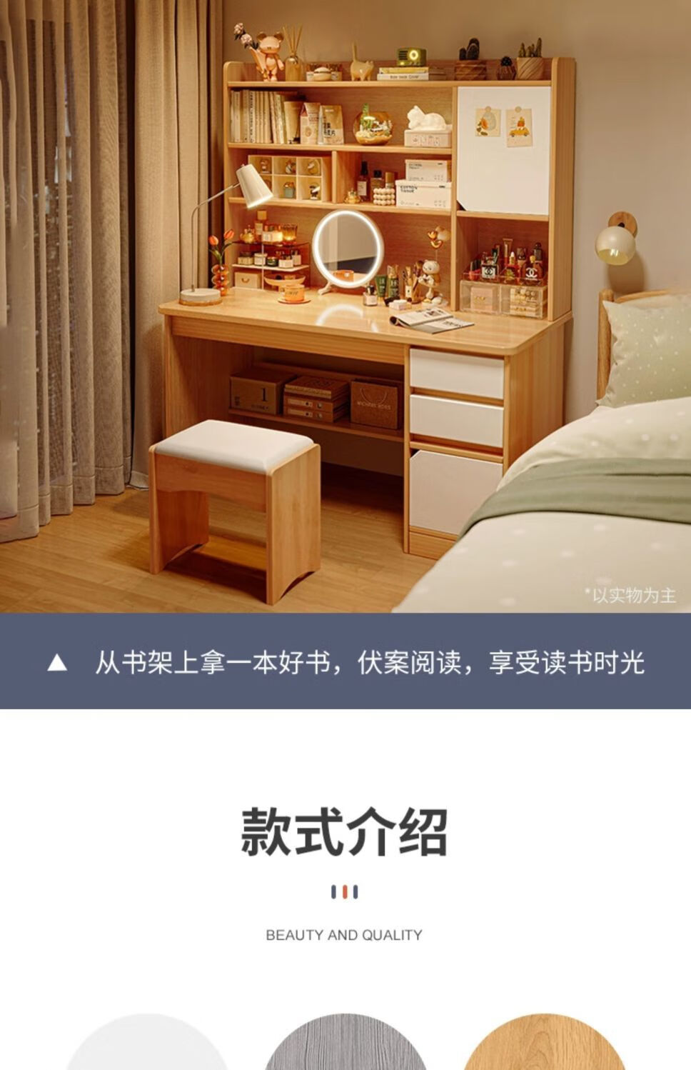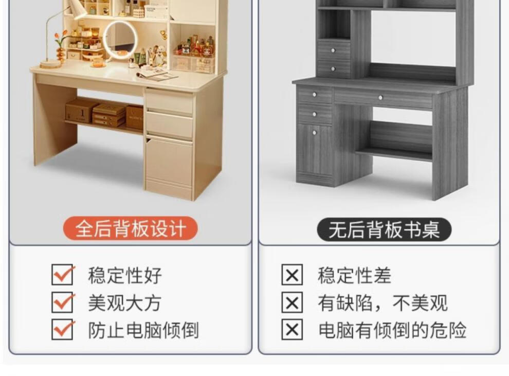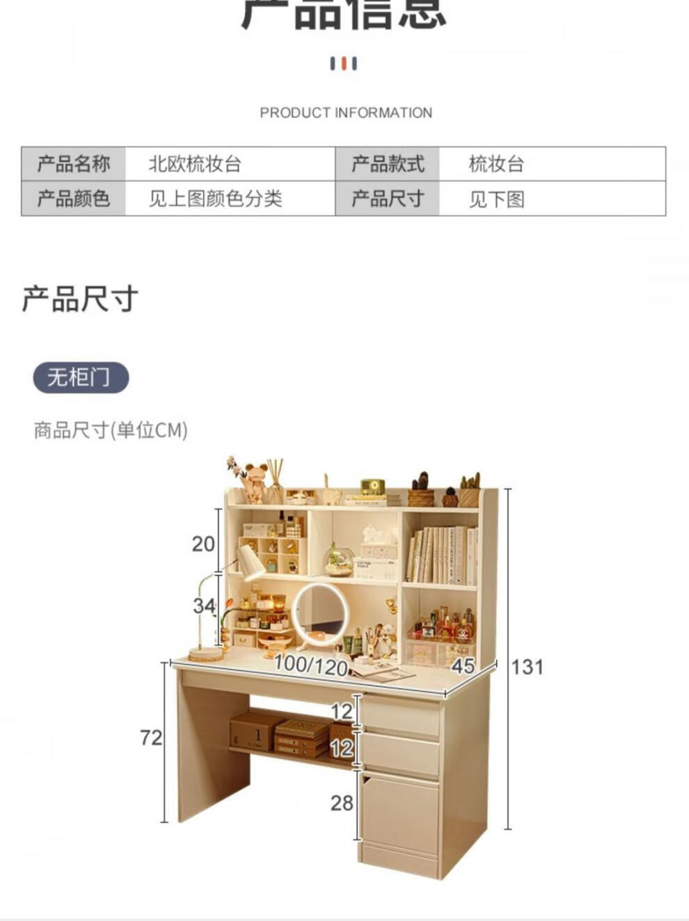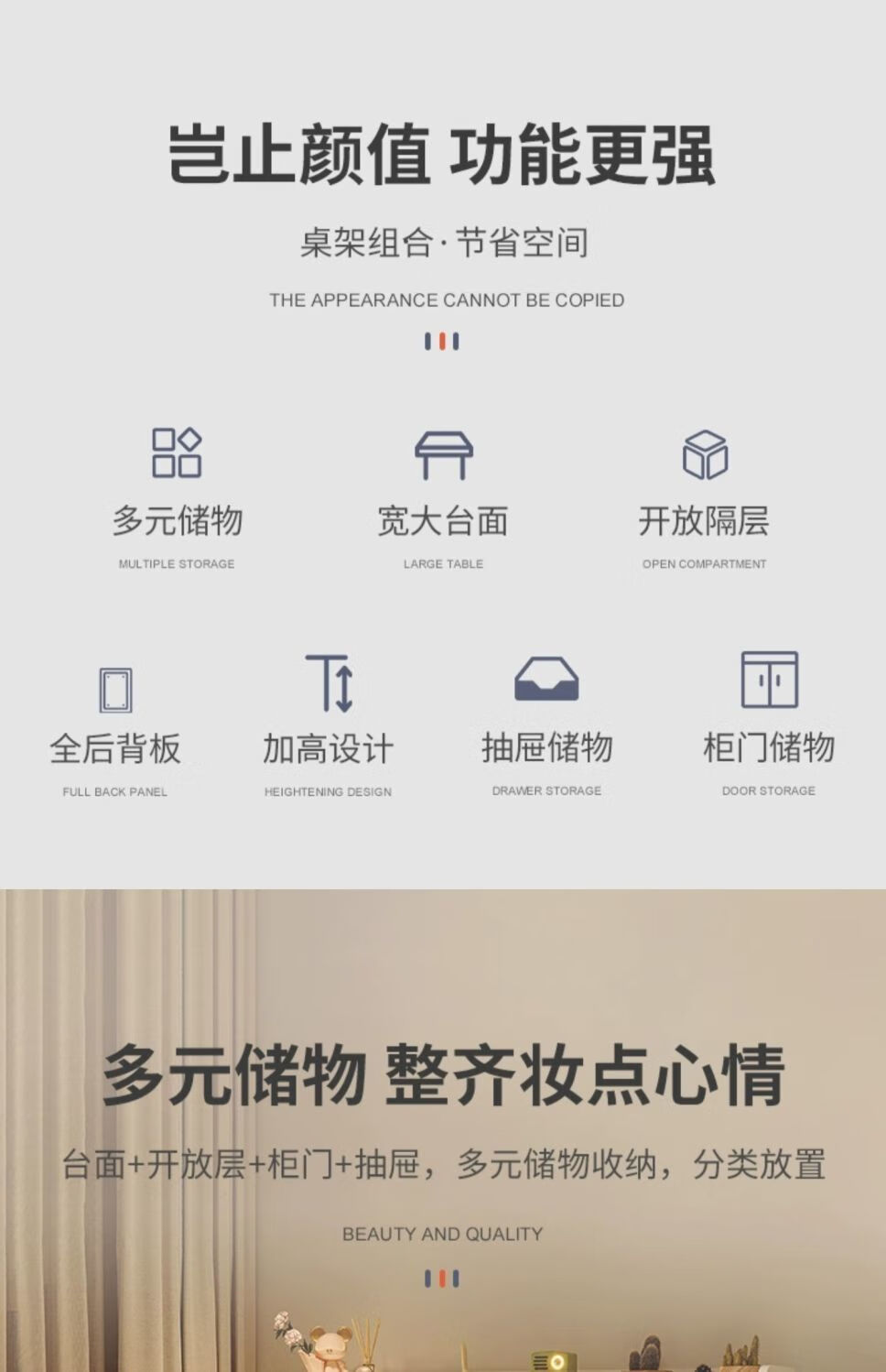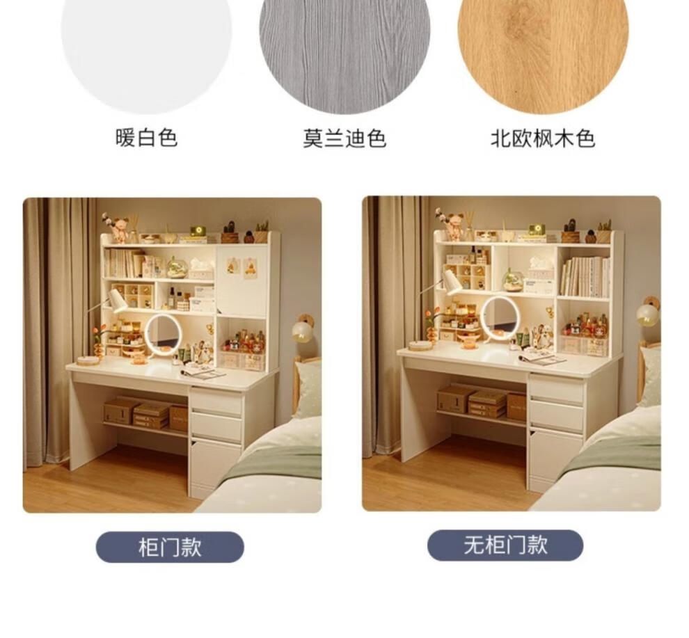 Bedici Computer Desk Dressing Table Integrated Bedroom Simple Modern Desk Dressing Table Two-in-One Dressing Cabinet Mirror Bedside New Classic Style White 100cm Wide Desktop Randomly Placed