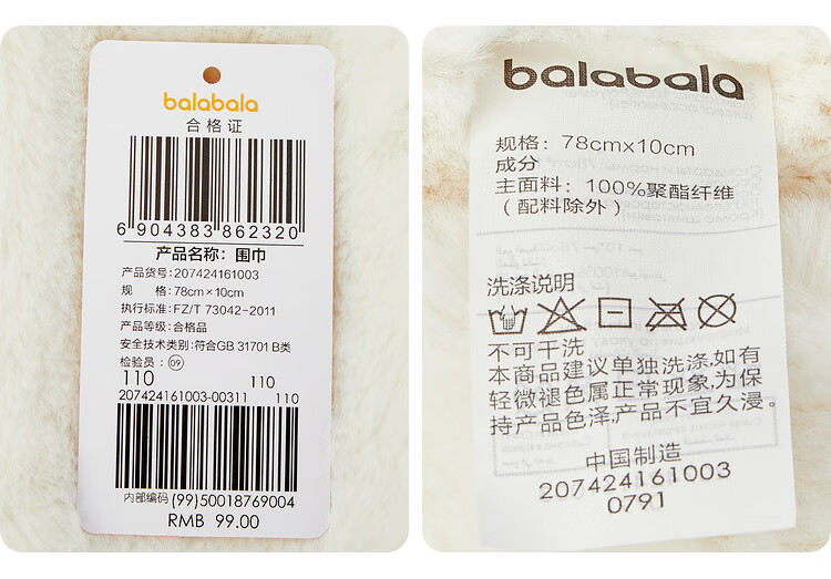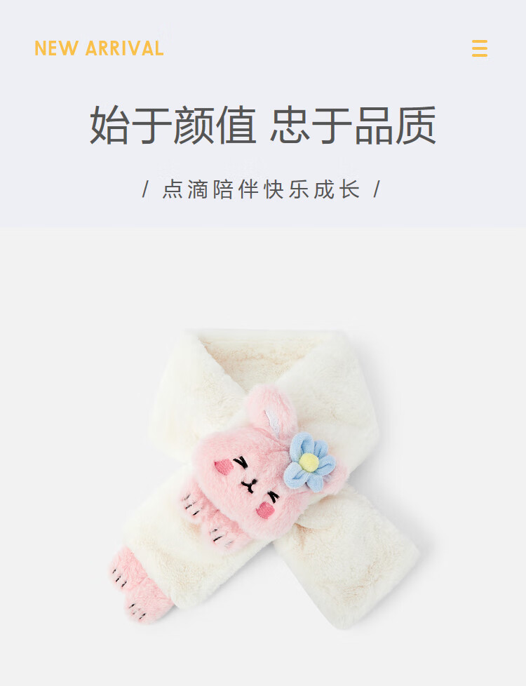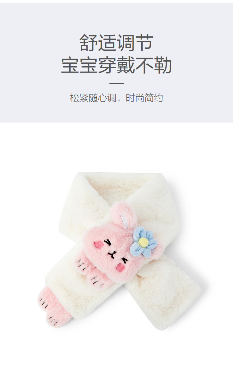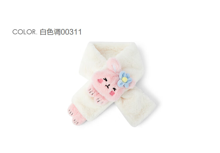 Balabala Children's Scarf Girls Winter Warm Plush Scarf Comfortable Rabbit Doll Style Cute and Cute White Tone 00311 110cm