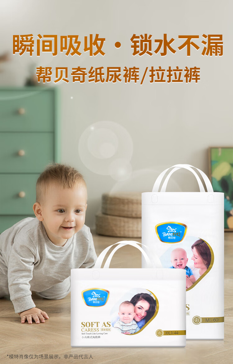 Bangbage Diapers Pull-Up Pants Baby Diapers Dry and Breathable Ultra-Thin Breathable Soft Baby Diapers for Male and Female Babies Bangbage Diapers M Size (1 Pack of 58 Pieces)