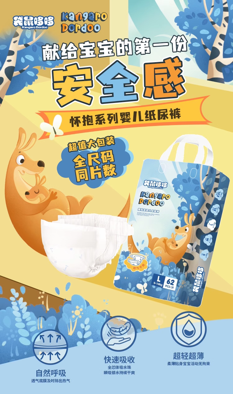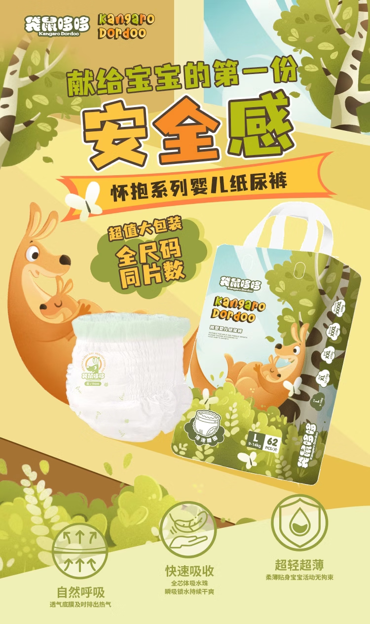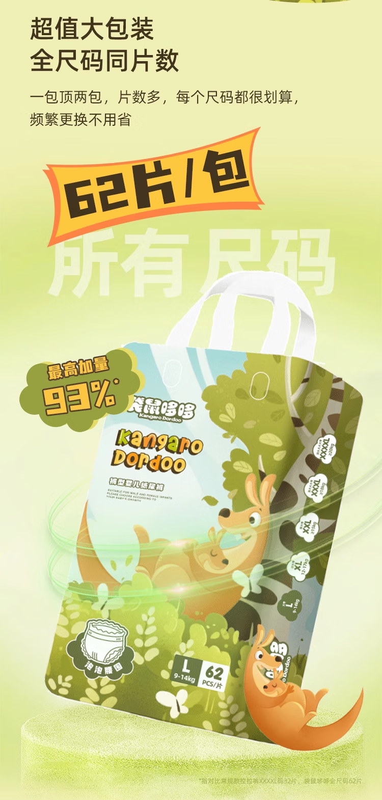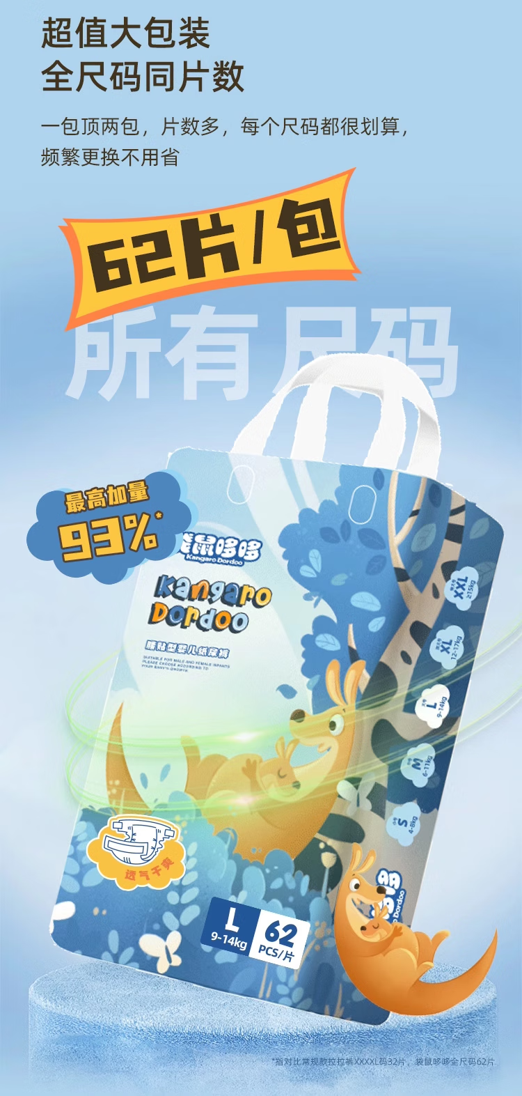 KANGARO DORDOO pull-up pants baby diapers ultra-thin breathable bubble waist toddler pants newborn baby diapers same style pull-up pants XL size 62 pieces underwear type 1 pack