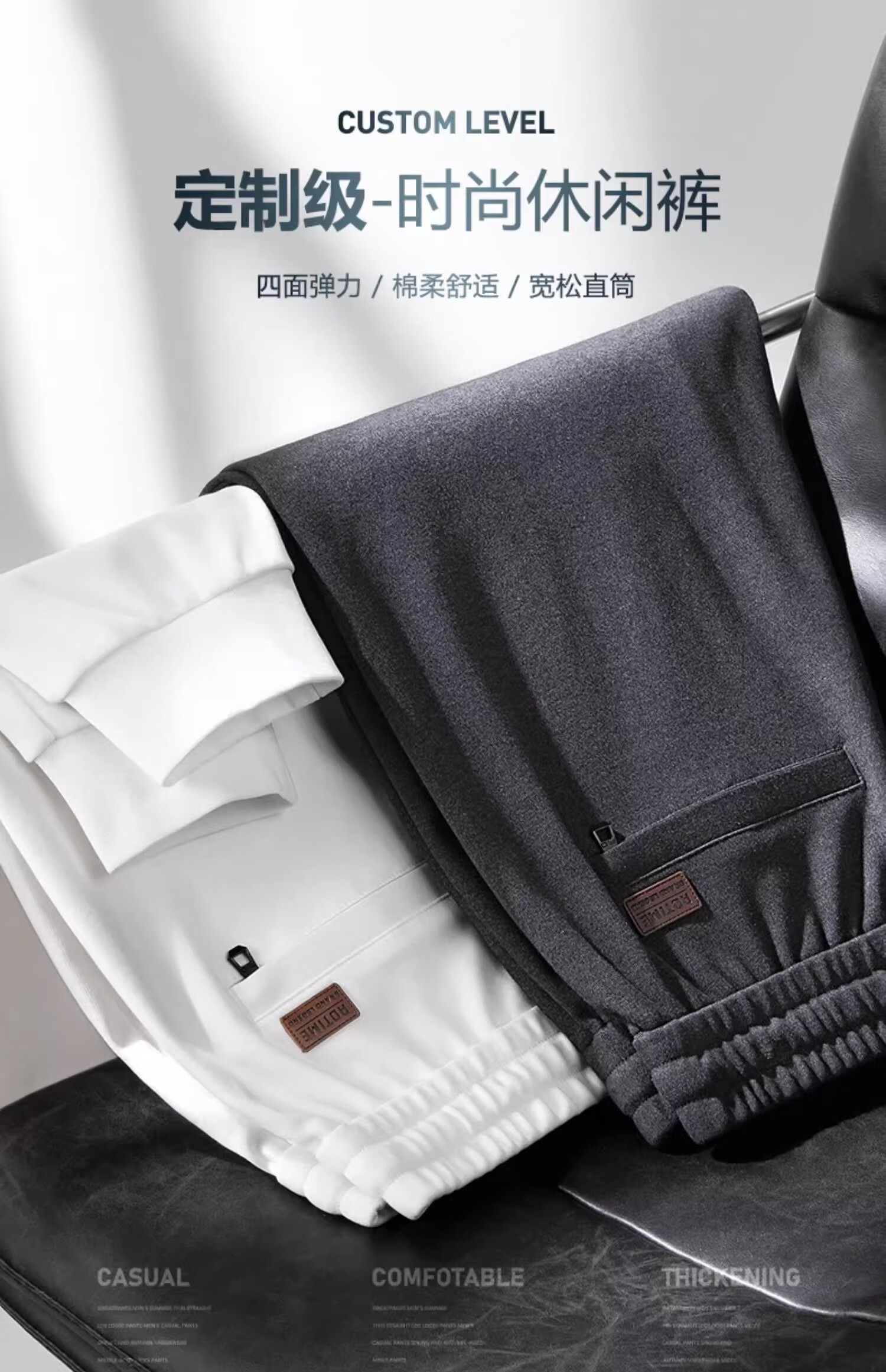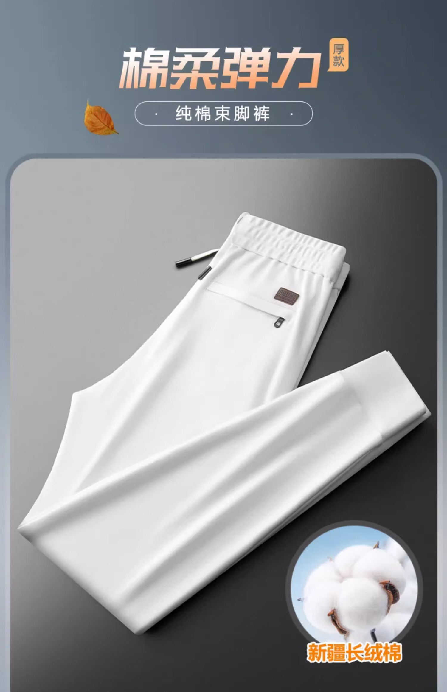 JEEP high-end pure cotton leggings casual pants for men, autumn and winter loose sports pants, men's velvet thickened long pants, dark blue, spring and autumn XL recommended 140-155 Jin Jin equals 0.5 kg